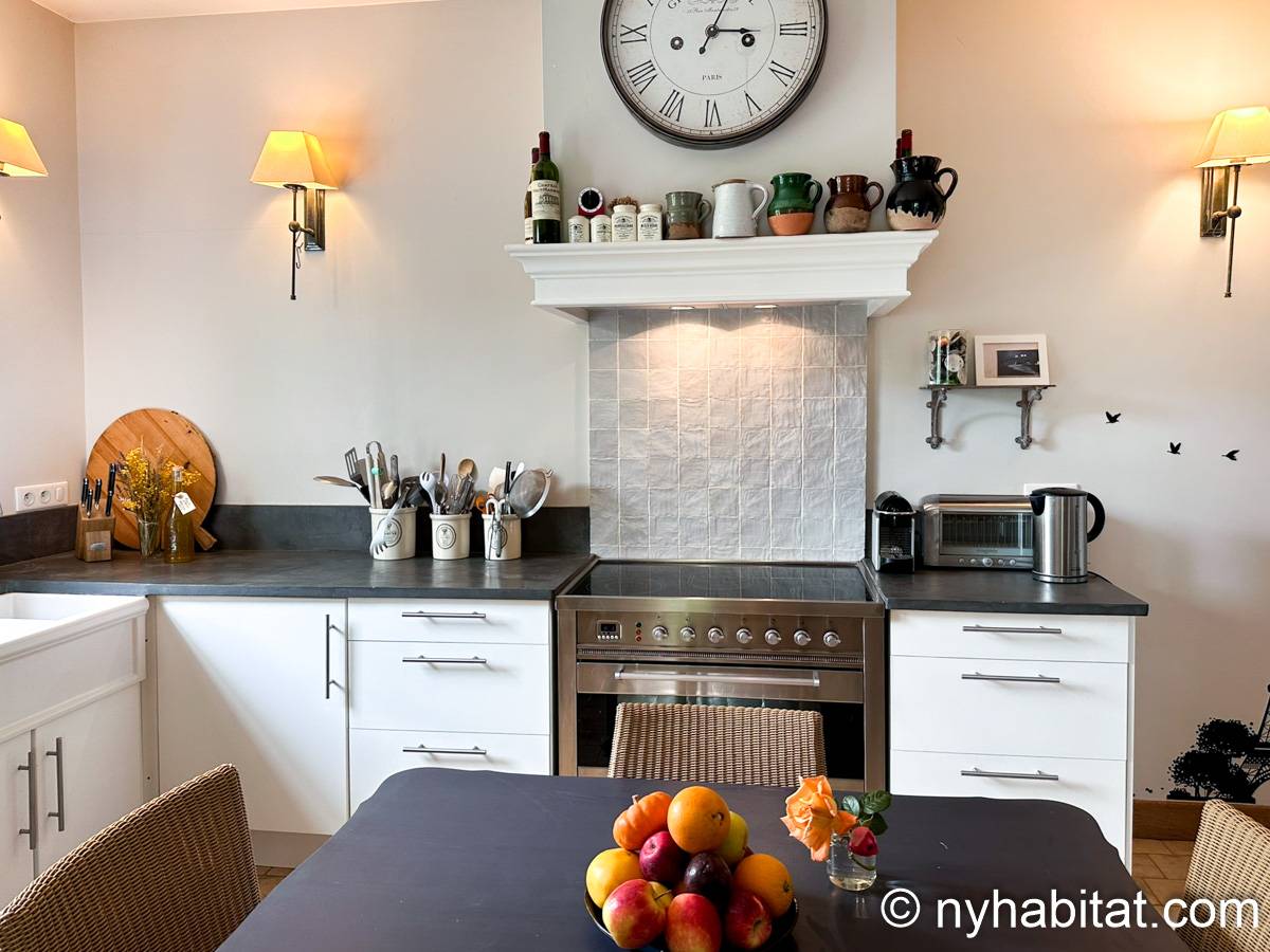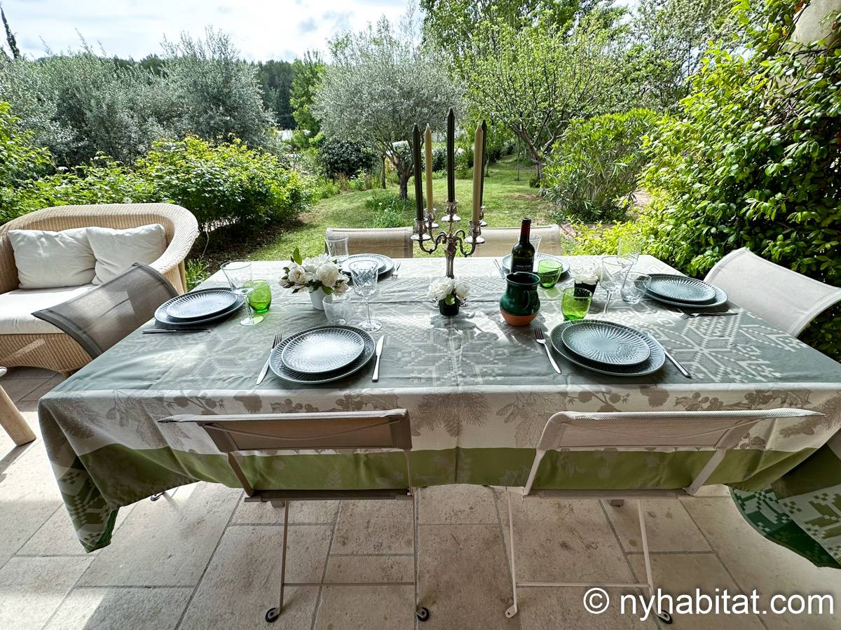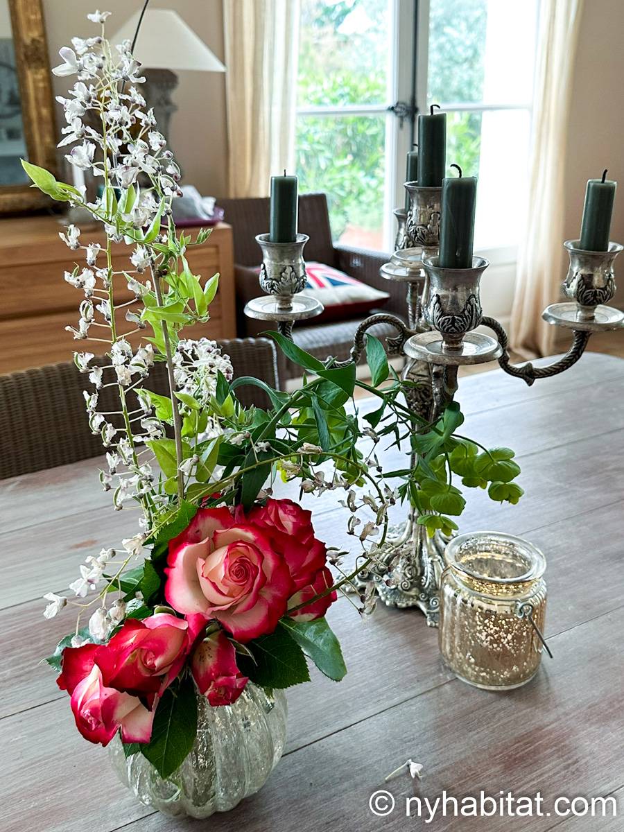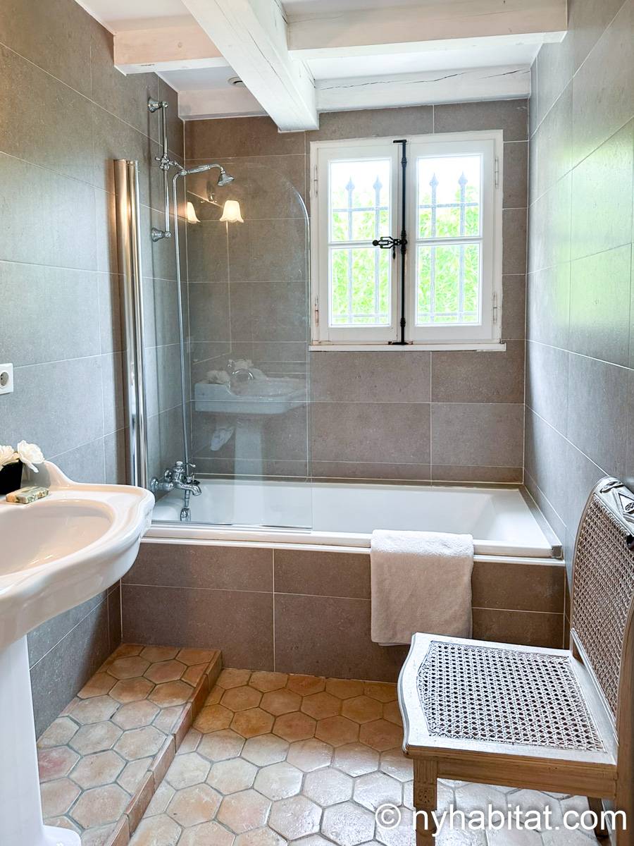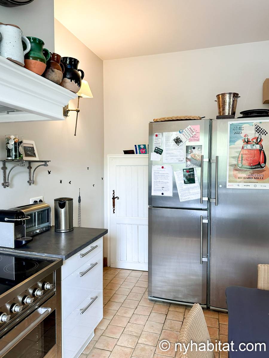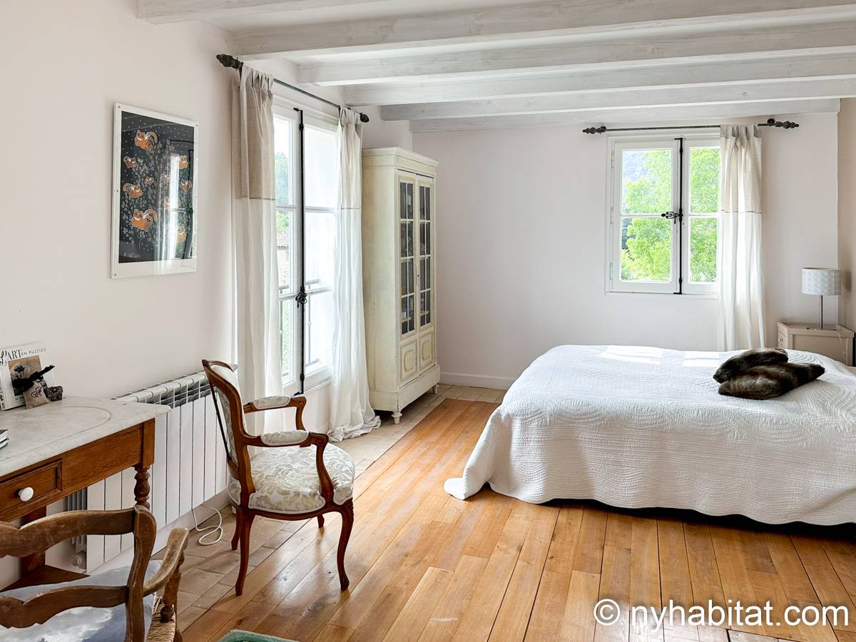 This four bedroom vacation rental offers views with southern and western exposure onto the terrace and garden, typically planted with olive and laurel trees. You will enjoy the two terraces, one of which is shaded, with high quality patio furniture to allow you to enjoy the lovely weather in the South of France. The villa is tastefully decorated (featuring local terracotta tiles and hardwood floors) and occupies three levels. On the garden level of this vacation rental accommodation, there is the large living area with an open kitchen, half bathroom and washing machine. Upstairs you have the 4 double bedrooms and two bathrooms (one with combination bathtub/shower, and one with shower only). On the top floor there is an attic living space to be used as a reading room or playroom, with a half bathroom.