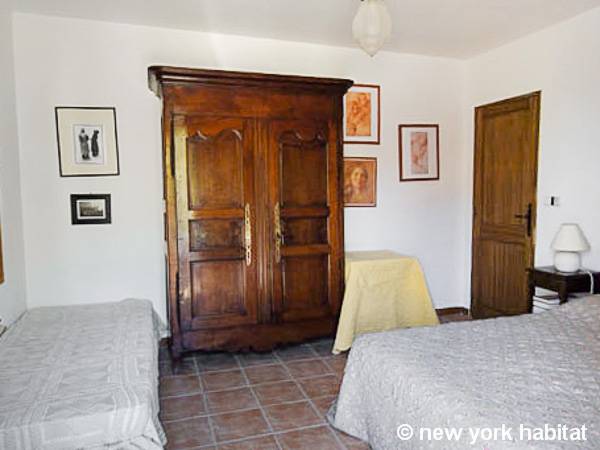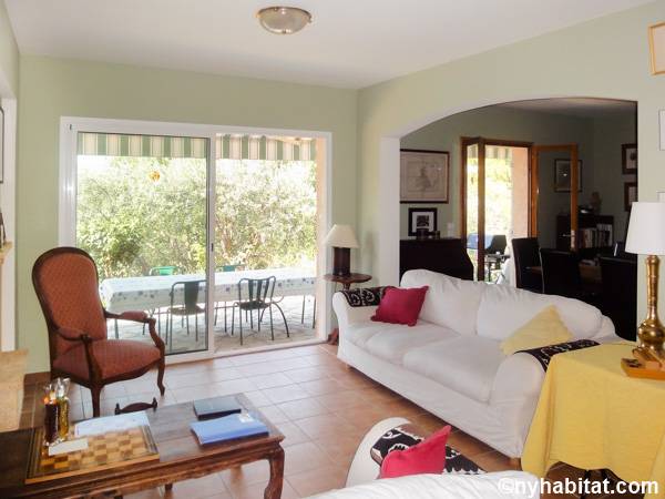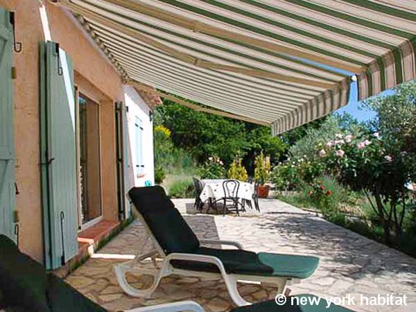 This three bedroom vacation rental is in the commune of Seillans, in the South of France, nearly 46 km (approx. 29 miles) west of Cannes. The villa is located atop a beautiful green hill, just up the road from the owner’s farmhouse. During your stay, you’ll have access to on-site parking space. Bed linens and towels are also provided.