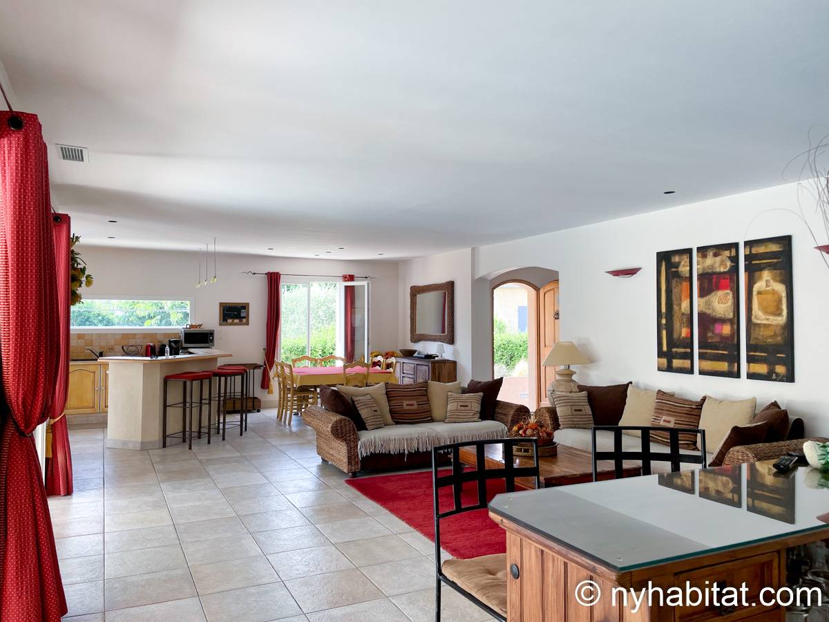 Henry IV once called a man from the South of France “the brave of the brave.” In Murs, the medieval town where Louis des Balbes de Berton de Crillon was born, it is not so difficult to see why a man would put his life on the line to protect his home. There is a hillside three kilometers (around 1.9 miles) west of Murs where you can watch the sun rising over the old town. Here on the hillside sits a 5-bedroom, 5-bathroom, 2-story villa. This vacation rental in the Provence region has a pool, a gym, a garden, a terrace, laundry amenities, and the setup for a game of pétanque or ping-pong. It also comes with a covered garage and a charging station for electric car.