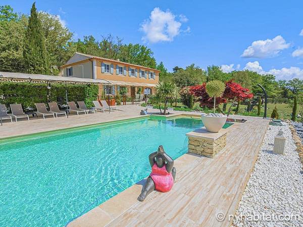 Ideally located, this villa allows you to explore Provence in grand style. 8 kilometers (around 5 miles) away, you could find yourself strolling through paved streets in the nearby Gordes commune, looking out over le Parc de Luberon. Le château and l’église Saint-Firmin are two sites you will not want to miss if you visit. Classified as an historical site, les Caves du Palais Saint-Firmin take you beneath the village and transport you to a focal point in Gordes’s past. You can also explore l’Abbaye Notre-Dame de Sénanque. Located 1.5 kilometers (just shy of a mile) west of Gordes, you could explore le Village des Bories. The city of Avignon is only a 46 kilometer (around 28.6 mile) trip from this villa and is the place to go if you want a little bit of city on your country vacation.