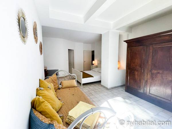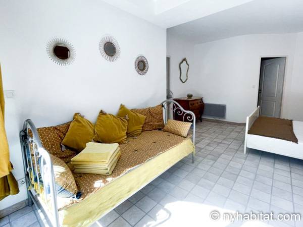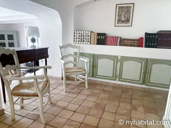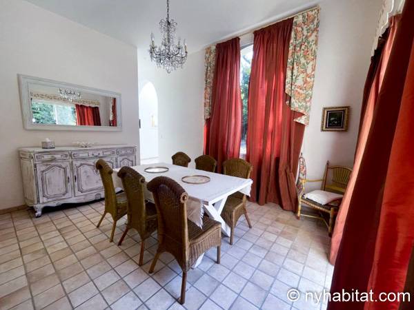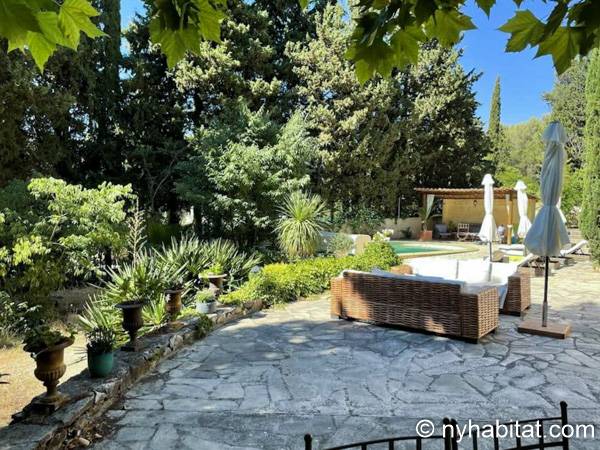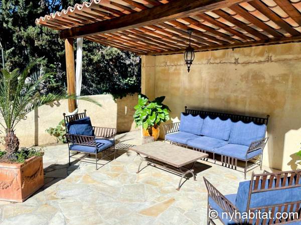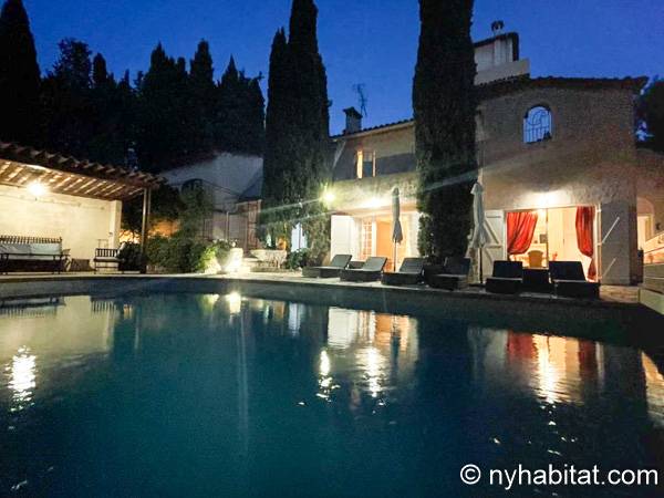 This fully-furnished house located in the Provence region of the South of France is a 3-bedroom, 4.5-bathroom getaway. The pool-side rental has an extensive outside area and many seating options scattered throughout a terrace. It is located near the crossing of Route Pierre Imbert and Chemin de la Douane in Cassis—a small town on the Mediterranean Sea.