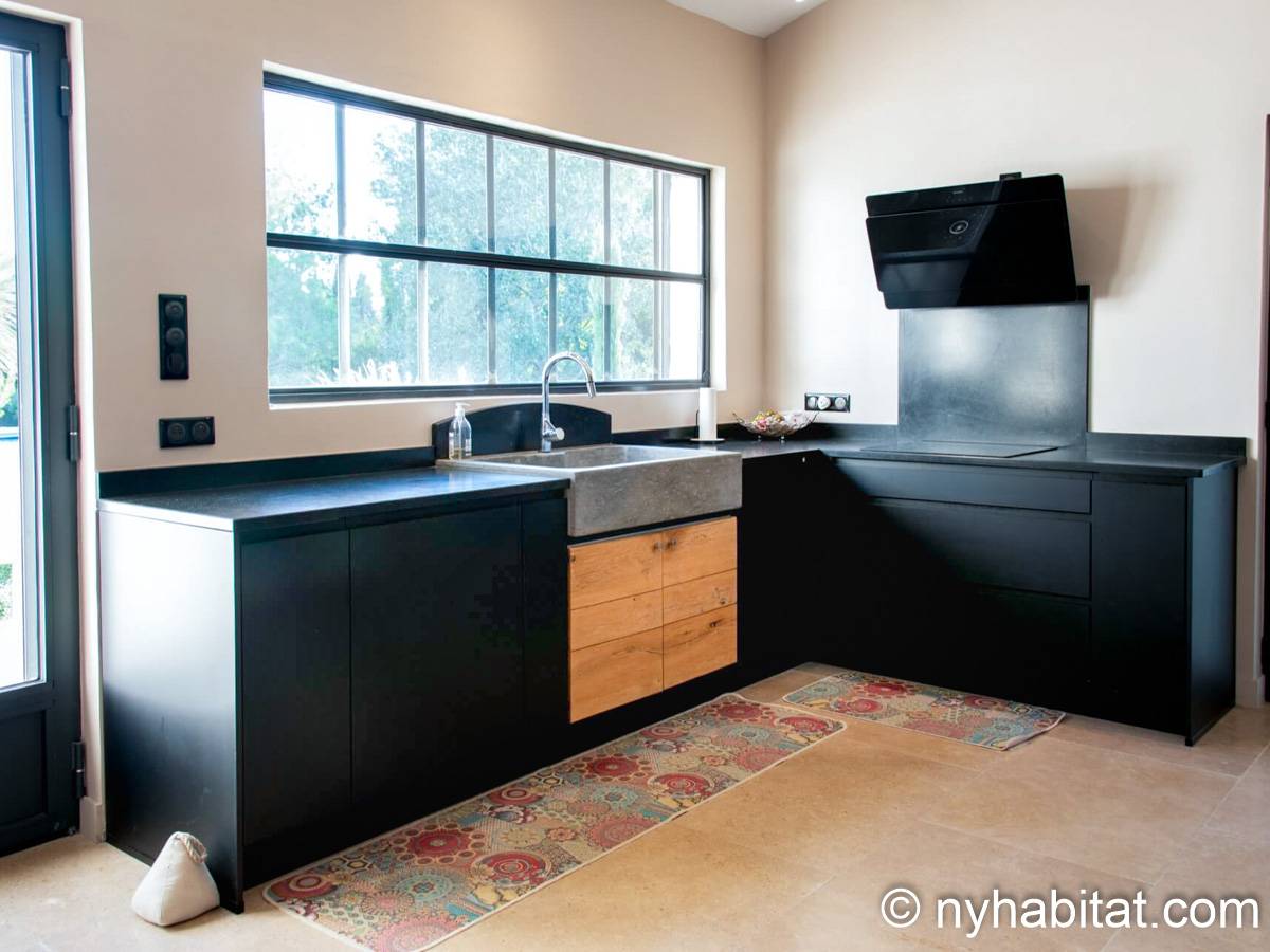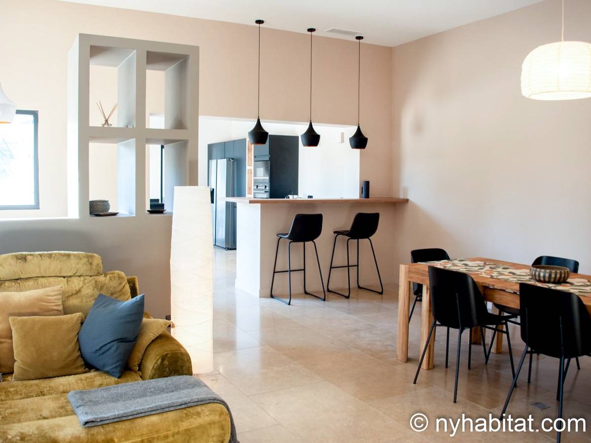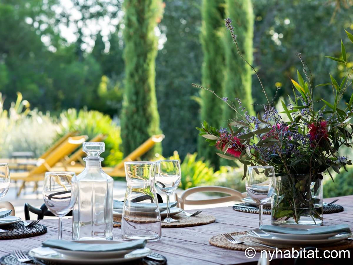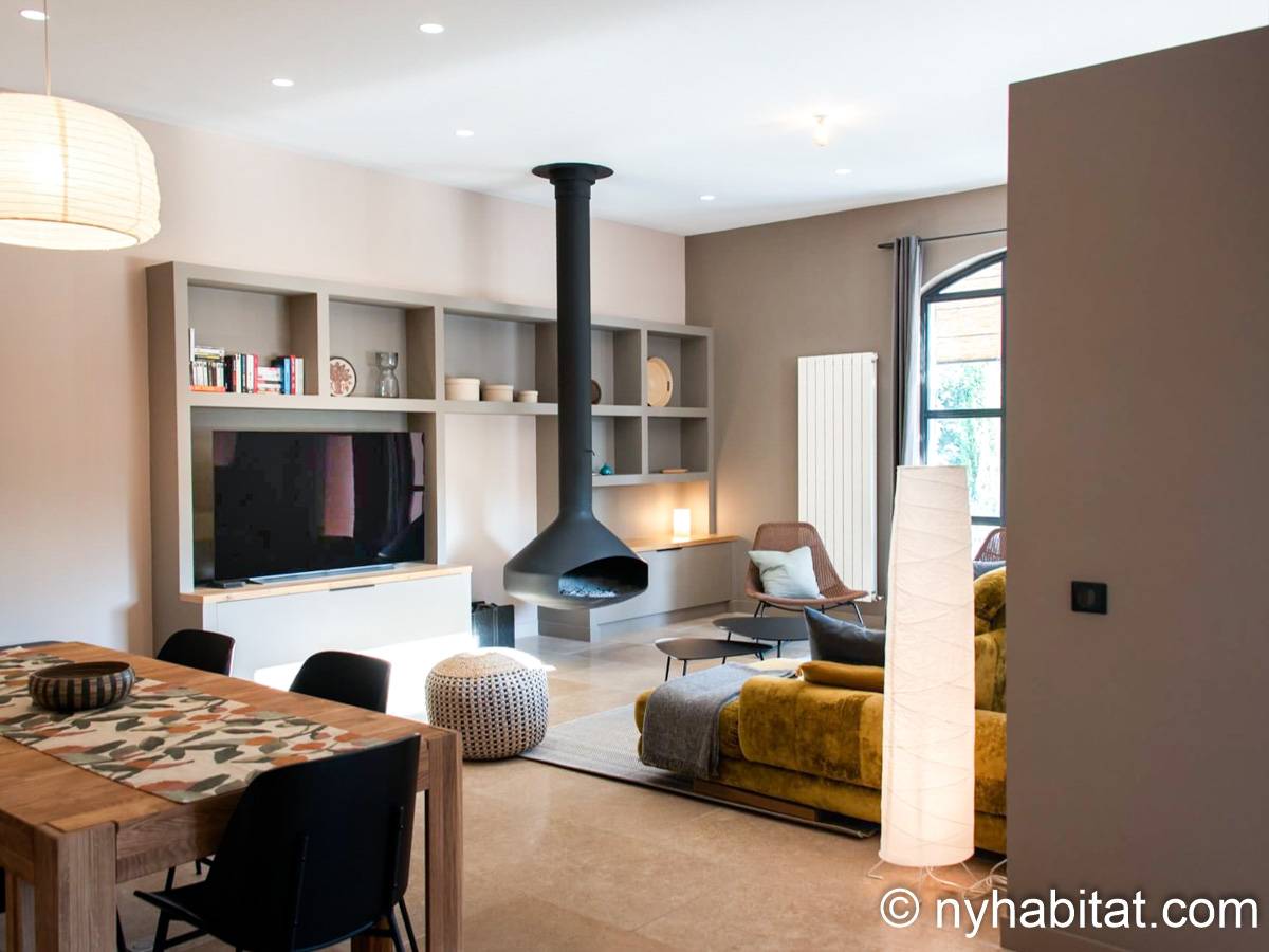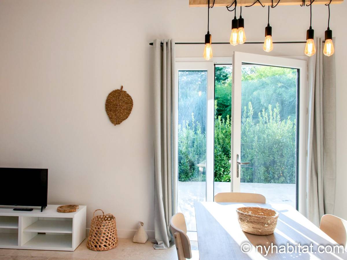 Welcome to this 6-bedroom, 3-bathroom vacation rental in Eyragues, Provence! This furnished vacation rental has a pool, terrace, garden, a washing machine, and a dryer. Located on a narrow road which slices through the countryside, Chemin de Saint Bonnet, this is a 240 m2 (around 2,600 square-foot) Mas.