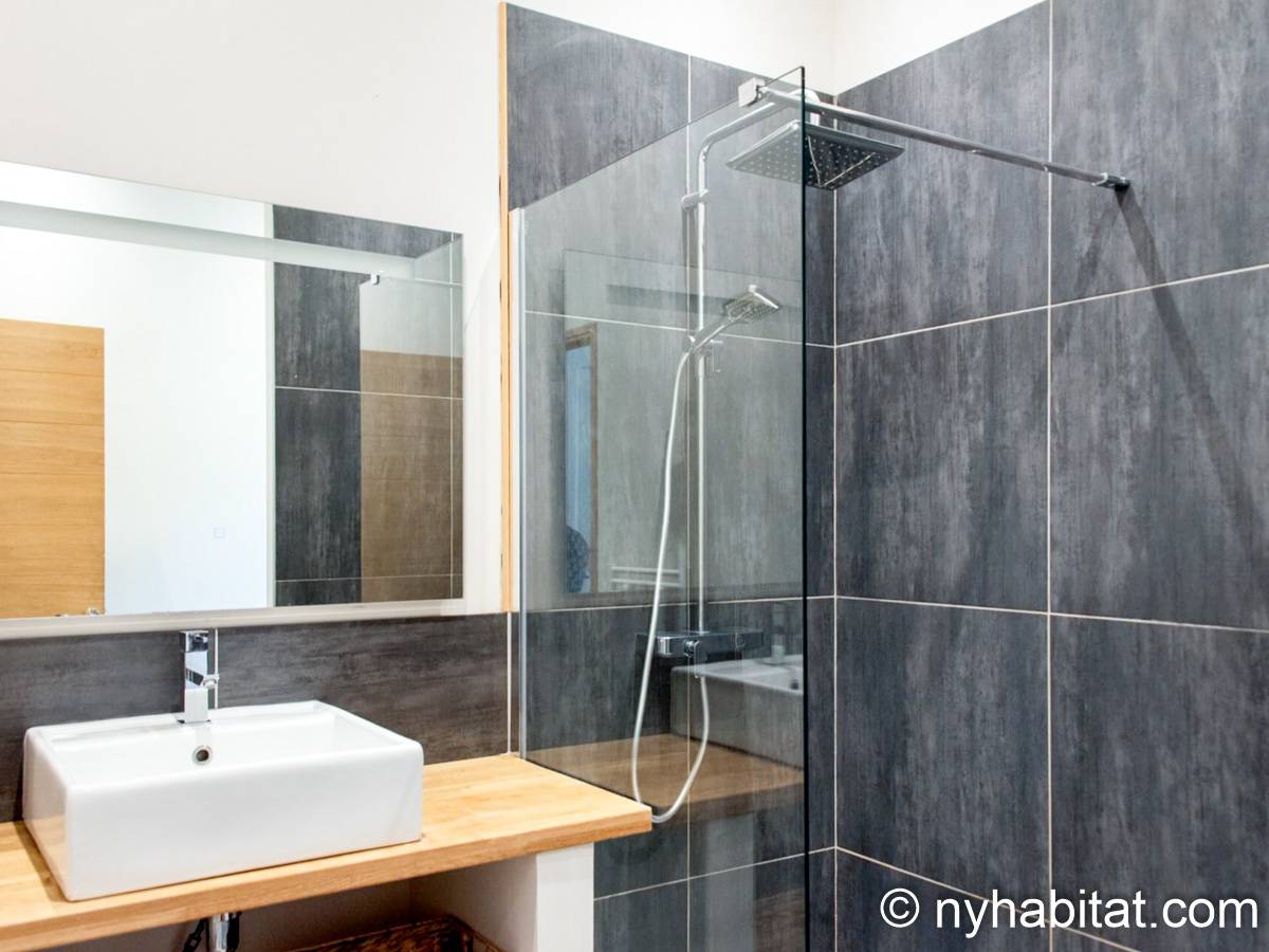 Five of the six bedrooms feature queen-size beds, and one of the bedrooms contains three single-size beds. The first bathroom has a shower with a tub integrated, the other two bathrooms have showers.