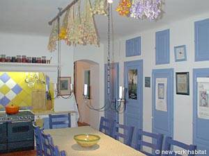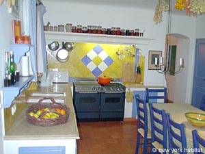 The Mas has a spacious, beautiful kitchen, equipped with a Bocuse stove ( double oven and 5 gas burners) , dishwasher and fridge. A large provençal fireplace creates a cosy atmosphere. The large farm table seats 12 people.