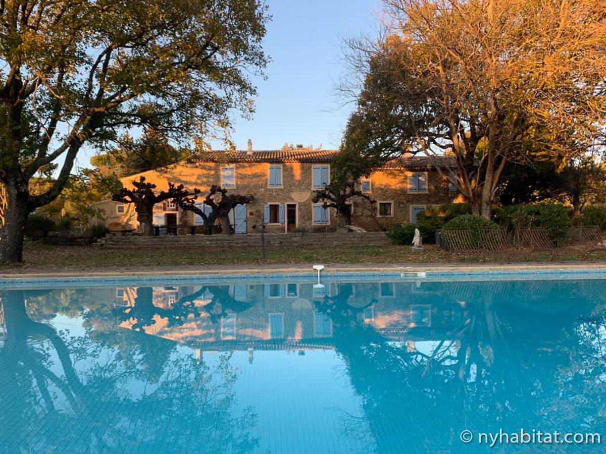 This Mas is a 200 year old farmhouse with more than 500 m2 of living surface surrounded by a garden and a vineyard. A swimming pool and a tennis court is at the disposition of occupants. It can accomodate up to 14 people.