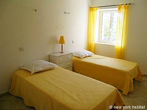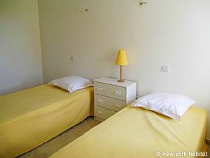 The third bedroom is furnished with two single beds and a small chest of drawer.