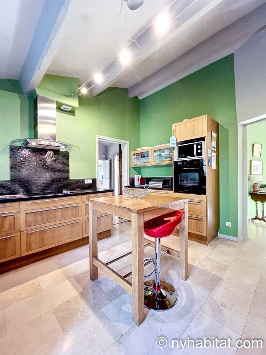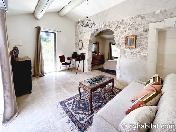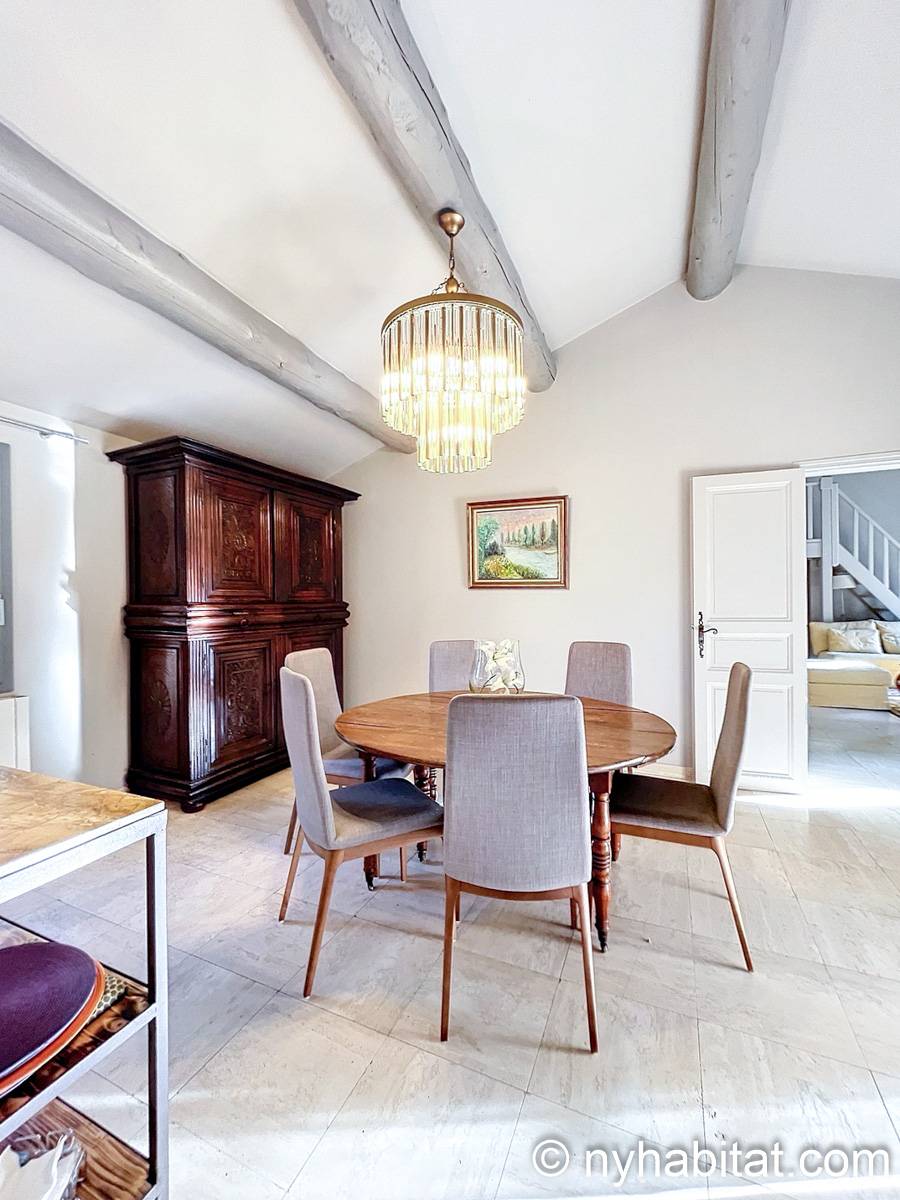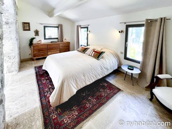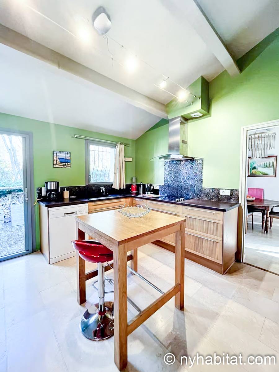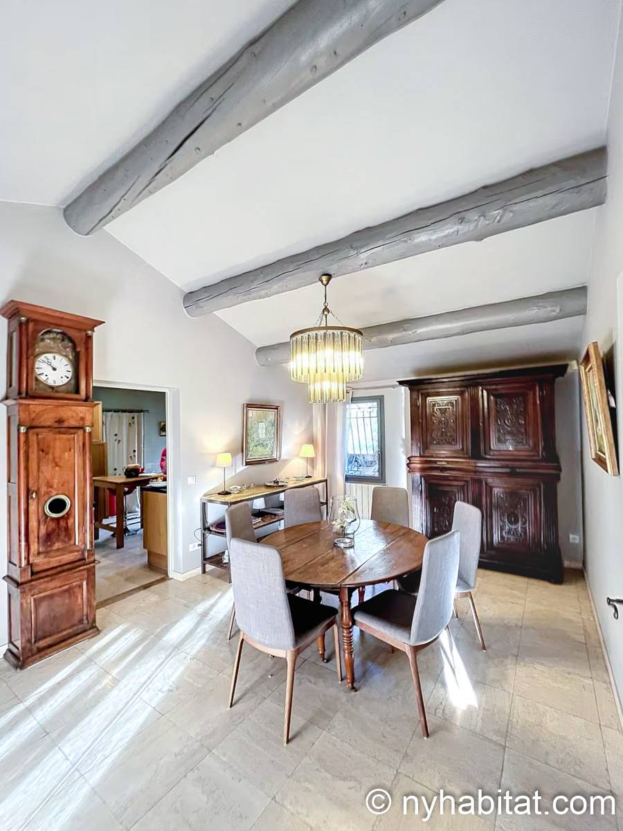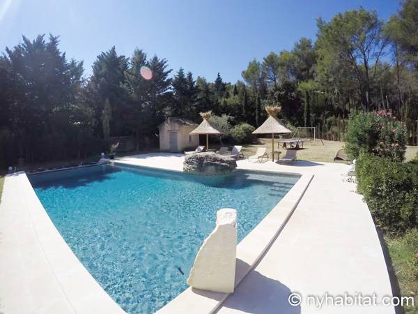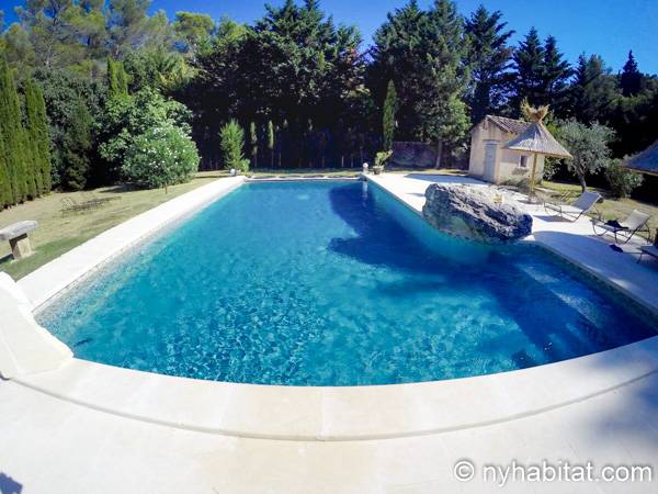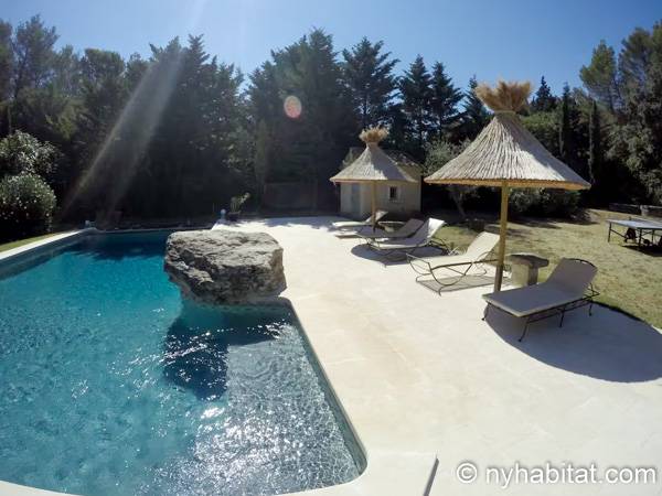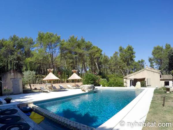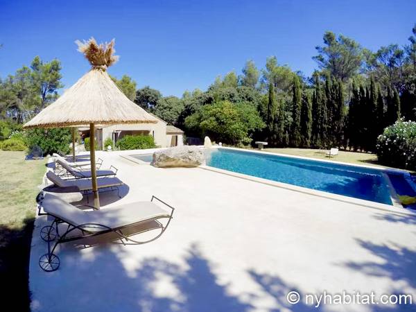 Here is a 4-bedroom, 4.5-bathroom vacation rental in the South of France. This 150 m2 (around 1,615-square-foot) villa is in Saint-Rémy-de-Provence (a provincial town located between Arles and Avignon), and has a pool, garden, terrace, and washing machine. There is parking space.
