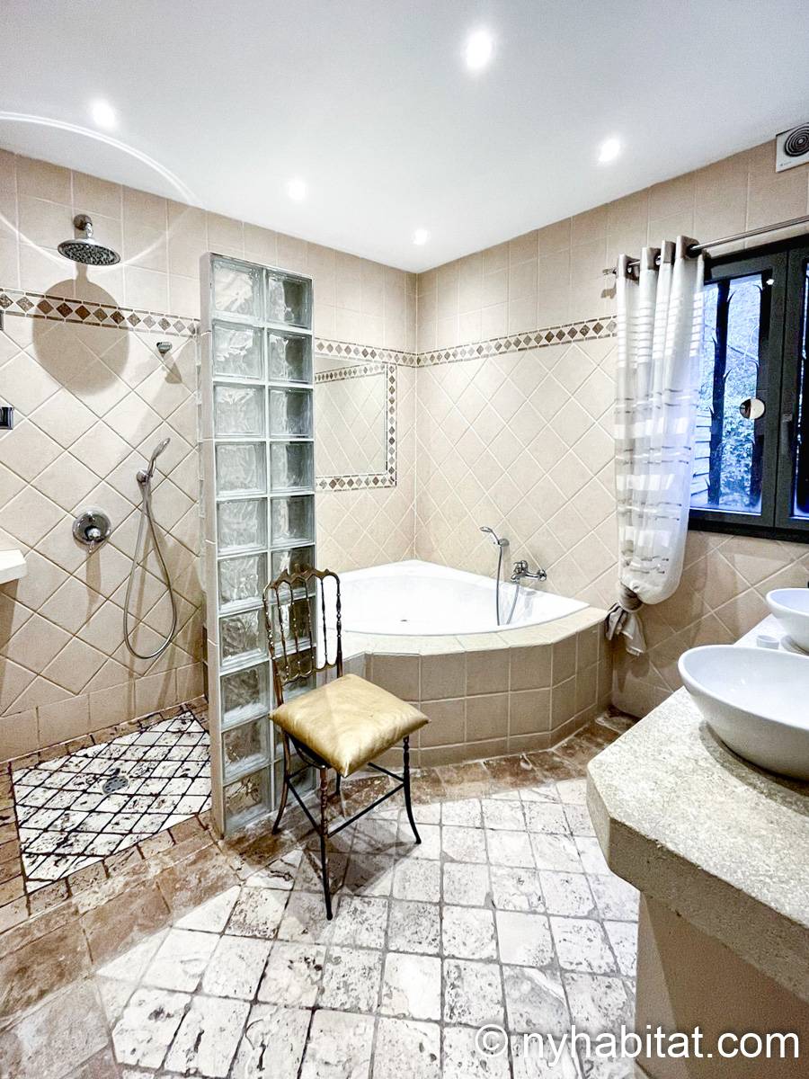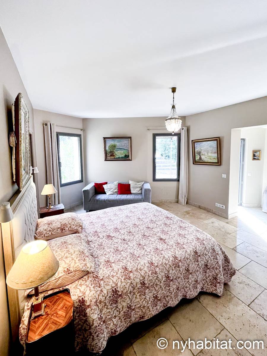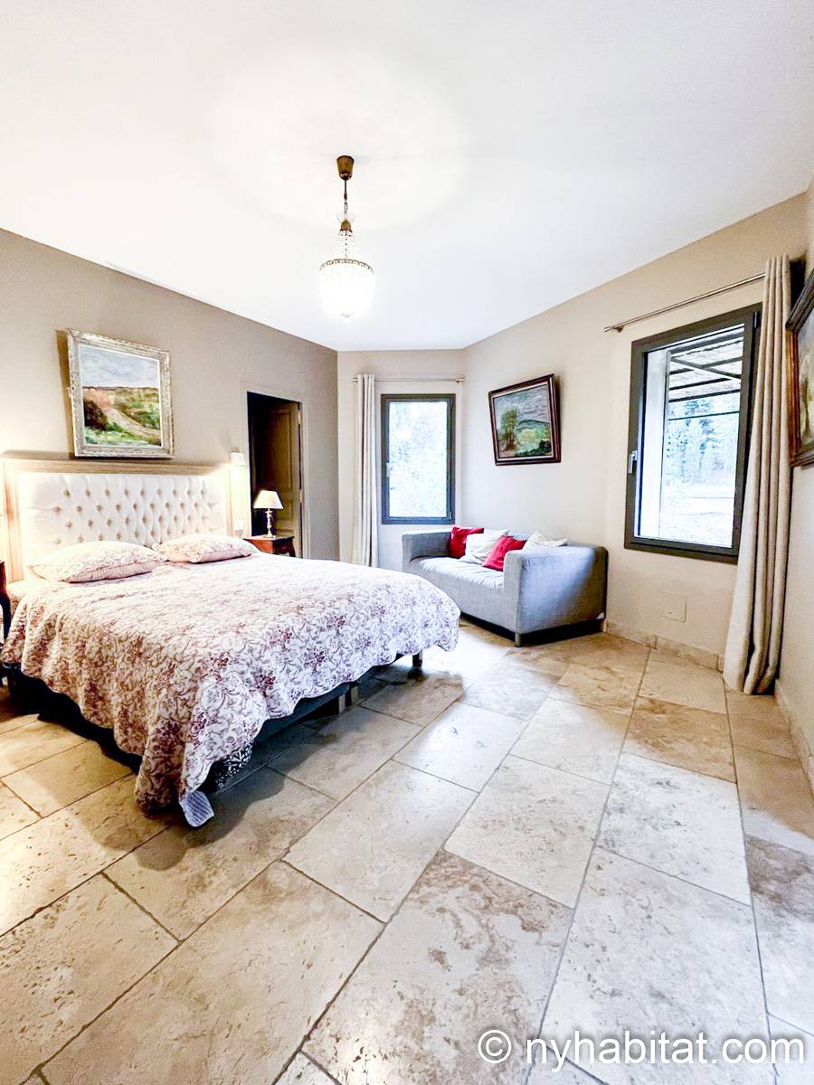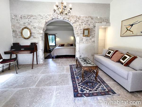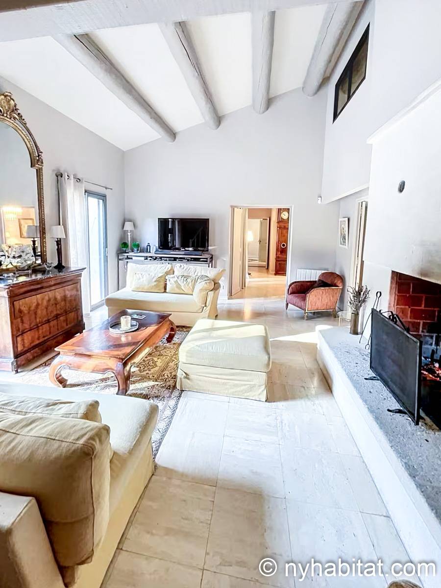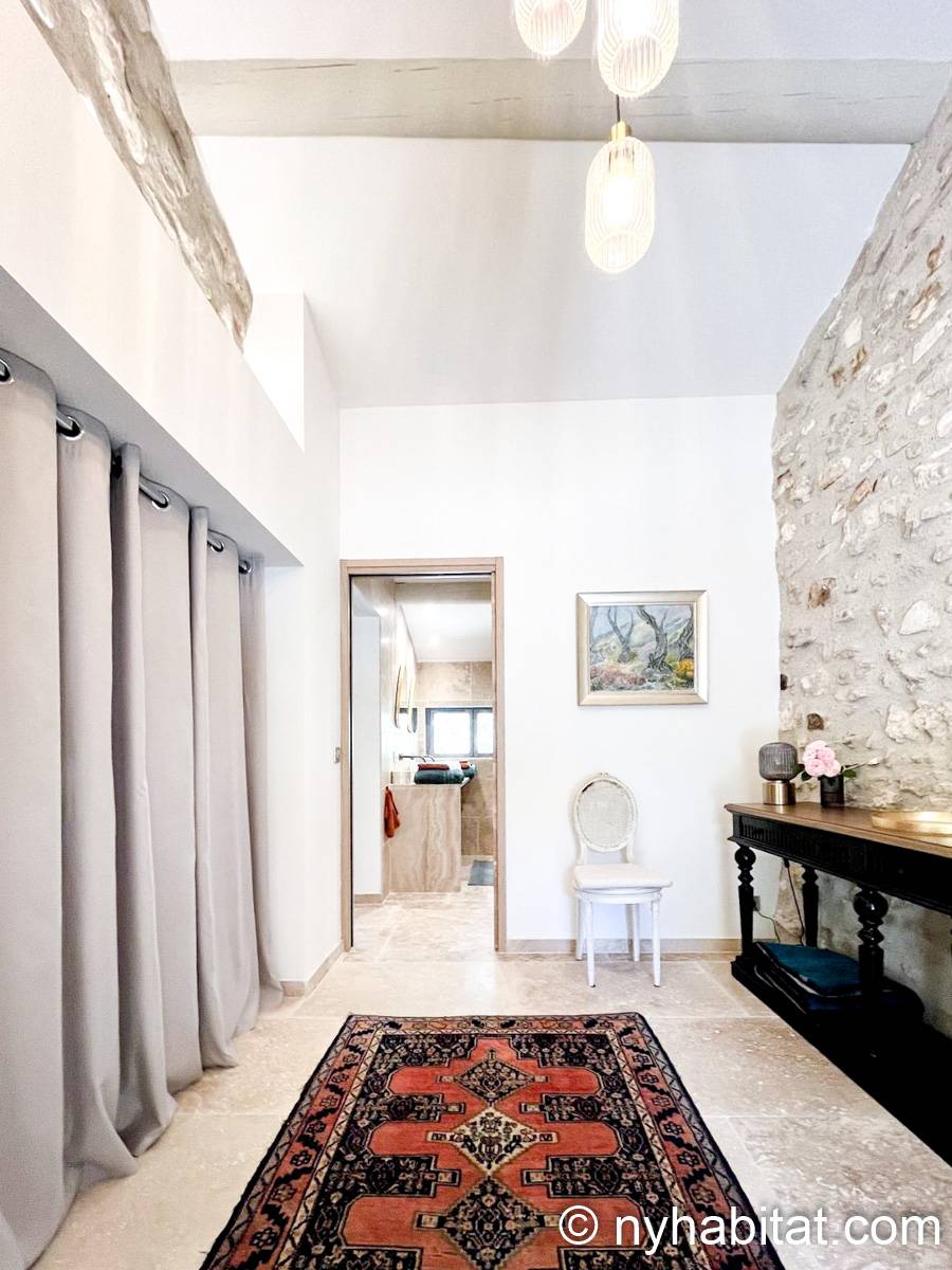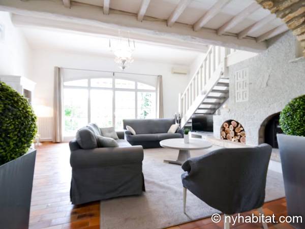 Here is a 4-bedroom, 4.5-bathroom vacation rental in the South of France. This 150 m2 (around 1,615-square-foot) villa is in Saint-Rémy-de-Provence (a provincial town located between Arles and Avignon), and has a pool, garden, terrace, and washing machine. There is parking space.