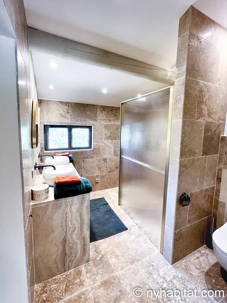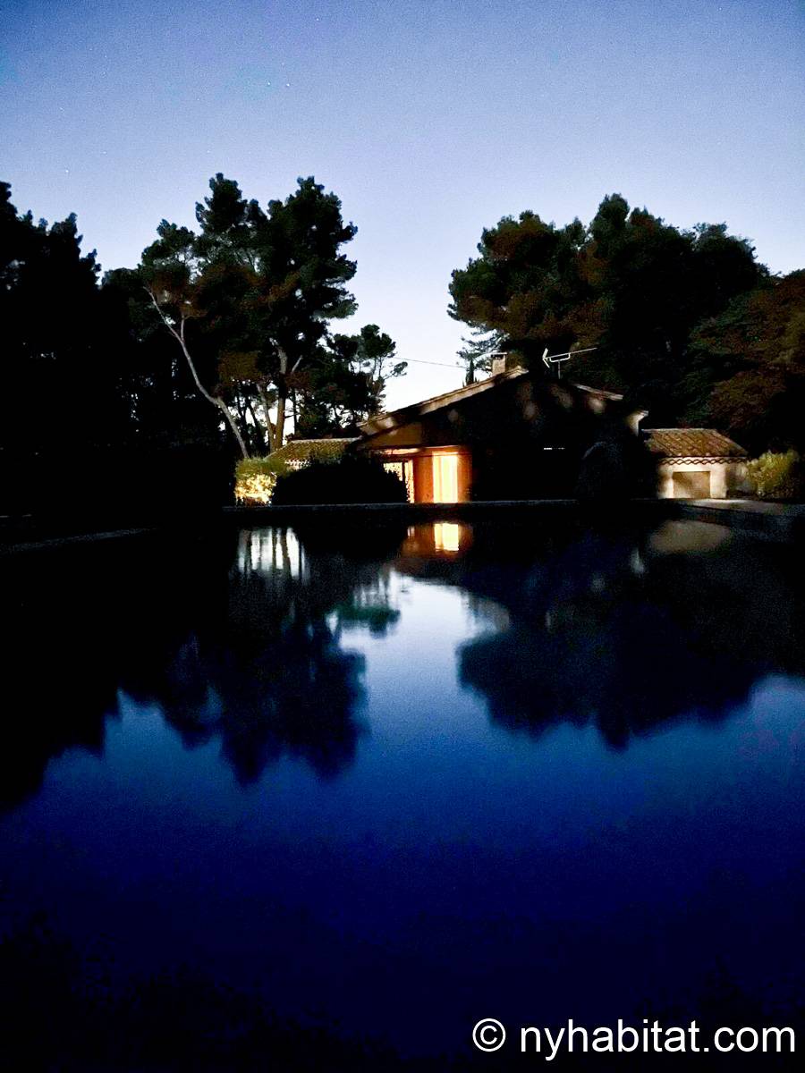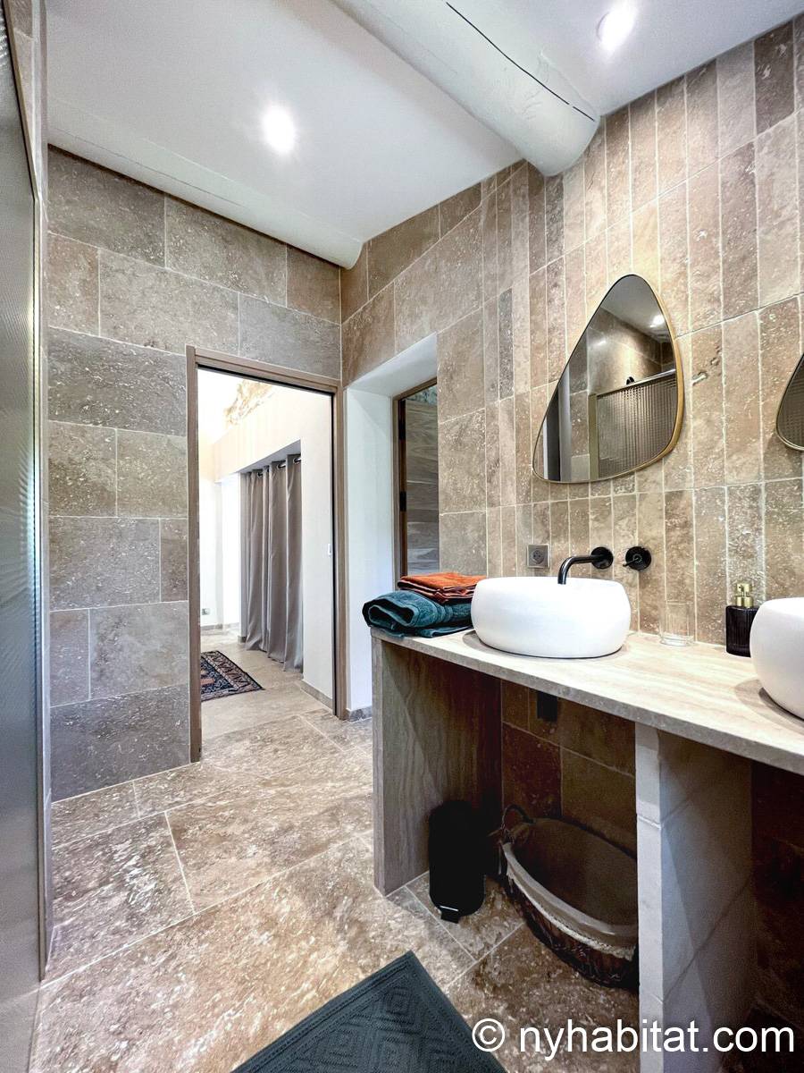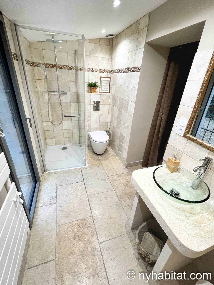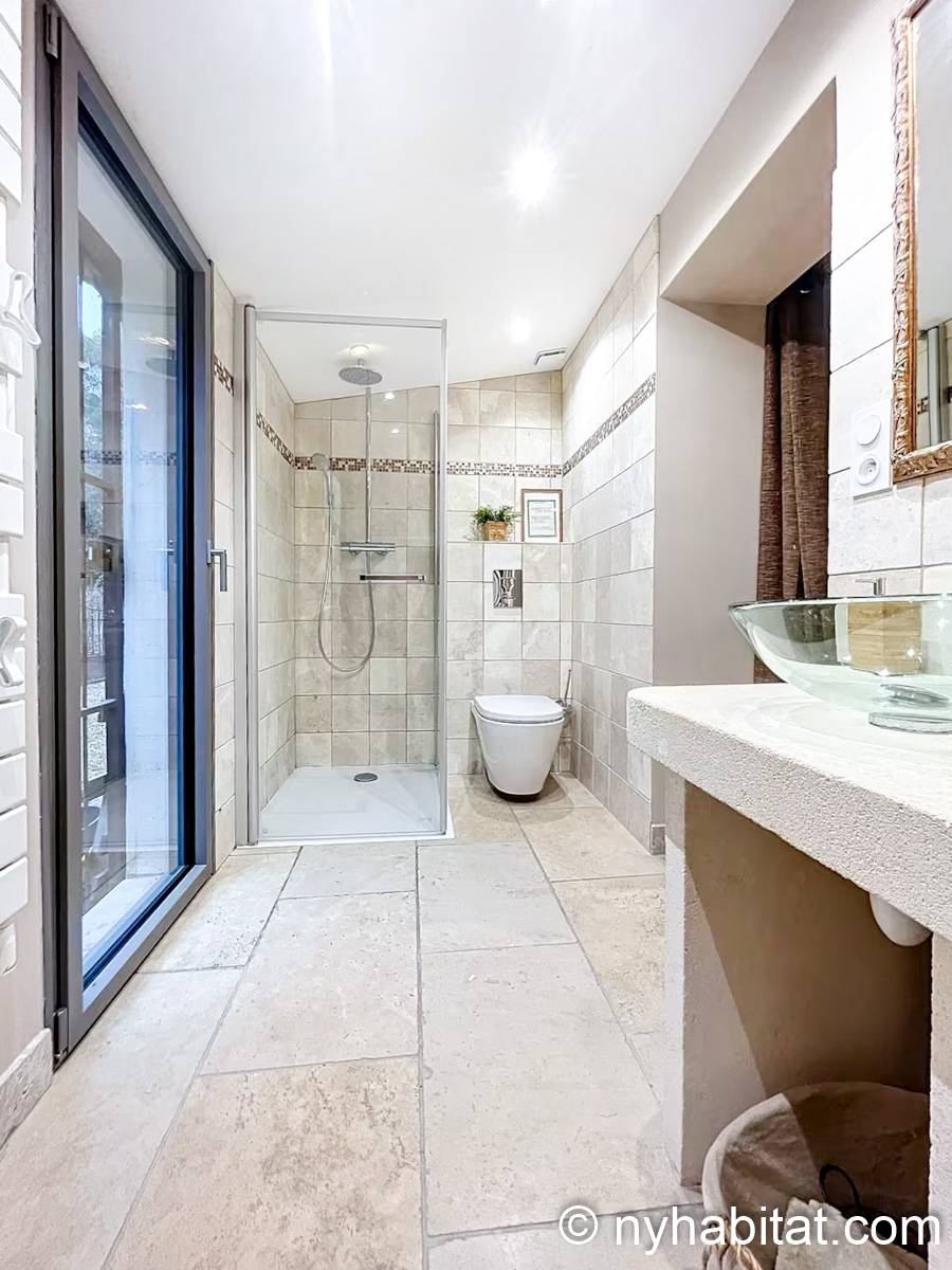 Here is a 4-bedroom, 4.5-bathroom vacation rental in the South of France. This 150 m2 (around 1,615-square-foot) villa is in Saint-Rémy-de-Provence (a provincial town located between Arles and Avignon), and has a pool, garden, terrace, and washing machine. There is parking space.