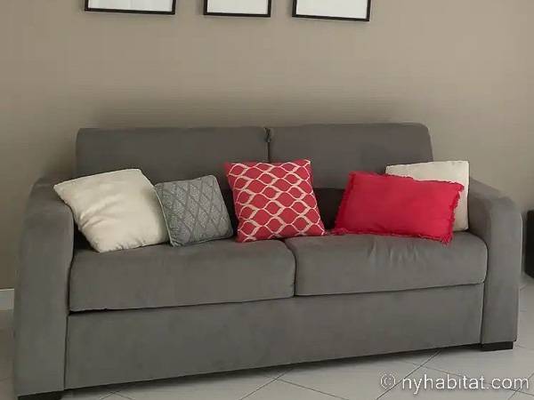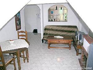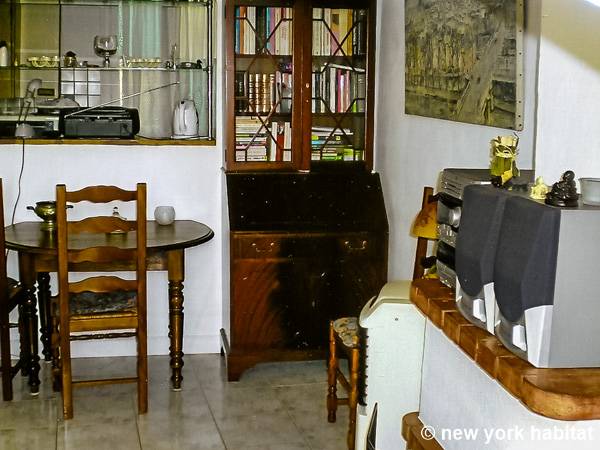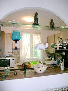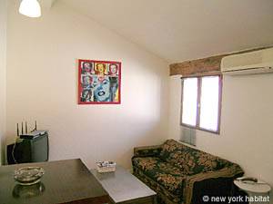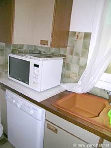 Enjoy the fully furnished South of France accommodation’s tile flooring, which will help keep things cool during the summer months. There is a sofa as well as a dining table in the living room, which also features a functioning fireplace. Head on over to the fully equipped kitchen and you’ll find an oven, fridge and microwave. The bedroom offers a full size bed and plenty of closet space. There is also the convenience of a washing machine in this unit.