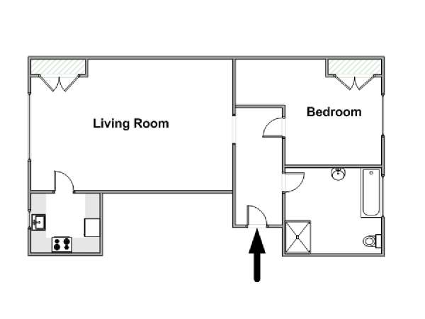 Este apartamento de 1 dormitorio mide 60 m2 y cuenta con: