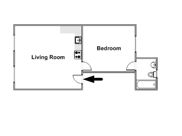El mobiliario es de estilo minimalista, lo que da al alojamiento una gran amplitud; y las grandes ventanas permiten la entrada de luz natural a lo largo del día. En la sala de estar encontrará una televisión de pantalla plana y un sofá que se convierte en una cama de matrimonio, será un lugar estupendo para los invitados. En una esquina de este apartamento de vacaciones se encuentra la cocinilla, ¡con los electrodomésticos de cocina que necesite para preparar sus comidas caseras preferidas y con un lavavajillas para mayor comodidad! A la hora de dormir, le encantará descansar y soñar en la cama de matrimonio del dormitorio. Otro de los accesorios más destacados es la lavadora/secadora y la cama extra, una cama plegable individual.