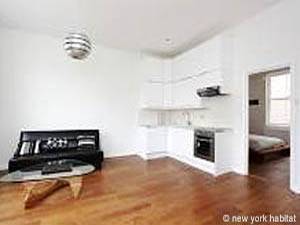 Este apartamento de un dormitorio ocupa el segundo piso de un edificio de tres plantas sin ascensor que se encuentra en la esquina de Ladroke Grove con Lancaster Road. El amplio apartamento de vacaciones abarca un total de 60m2. Las características más importantes de este alojamiento son los suelos de madera maciza y los techos altos, además cuenta con instalaciones modernas.