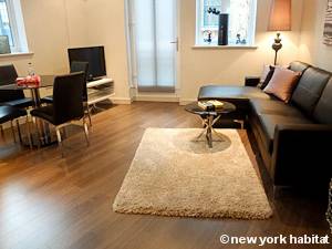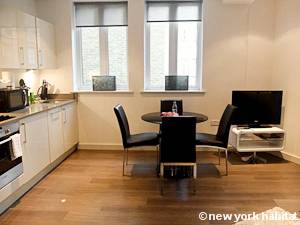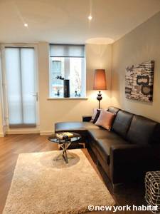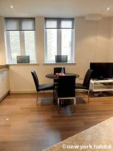 Este apartamento de 1 dormitorio amueblado con una distribución abierta tiene una cocina completamente equipada con electrodomésticos de gama alta, además de un espléndido salón que tiene varias opciones para sentarse, como un sofá y una mesa de comedor en la que caben cuatro personas. El cuarto de baño tiene una bañera profunda para relajarse, y hay una televisión plana en el salón y otra en el dormitorio. Puedes asomarte por el falso balcón si quieres tomar el aire. Este alojamiento con servicio también ofrece muy buen precio en el abono a un gimnasio cercano además de en talleres de automóviles.