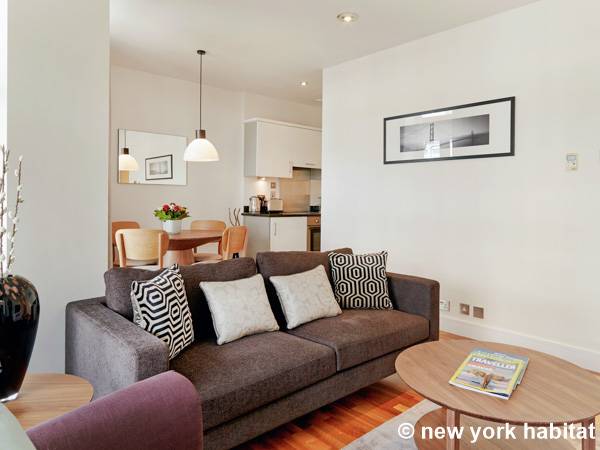 Este lugar es perfecto para estancias tanto largas como cortas en Londres, gracias a su combinación de las comodidades de un hotel de lujo y el confort de un apartamento amueblado. El salón incluye un sofá, televisión con servicio por cable y una mesa de comedor para disfrutar las comidas preparadas en su cocina abierta totalmente equipada. El dormitorio tiene una cama de tamaño queen para que pueda sentirse como la realeza, así como otra televisión con servicio de cable y un armario para almacenamiento.