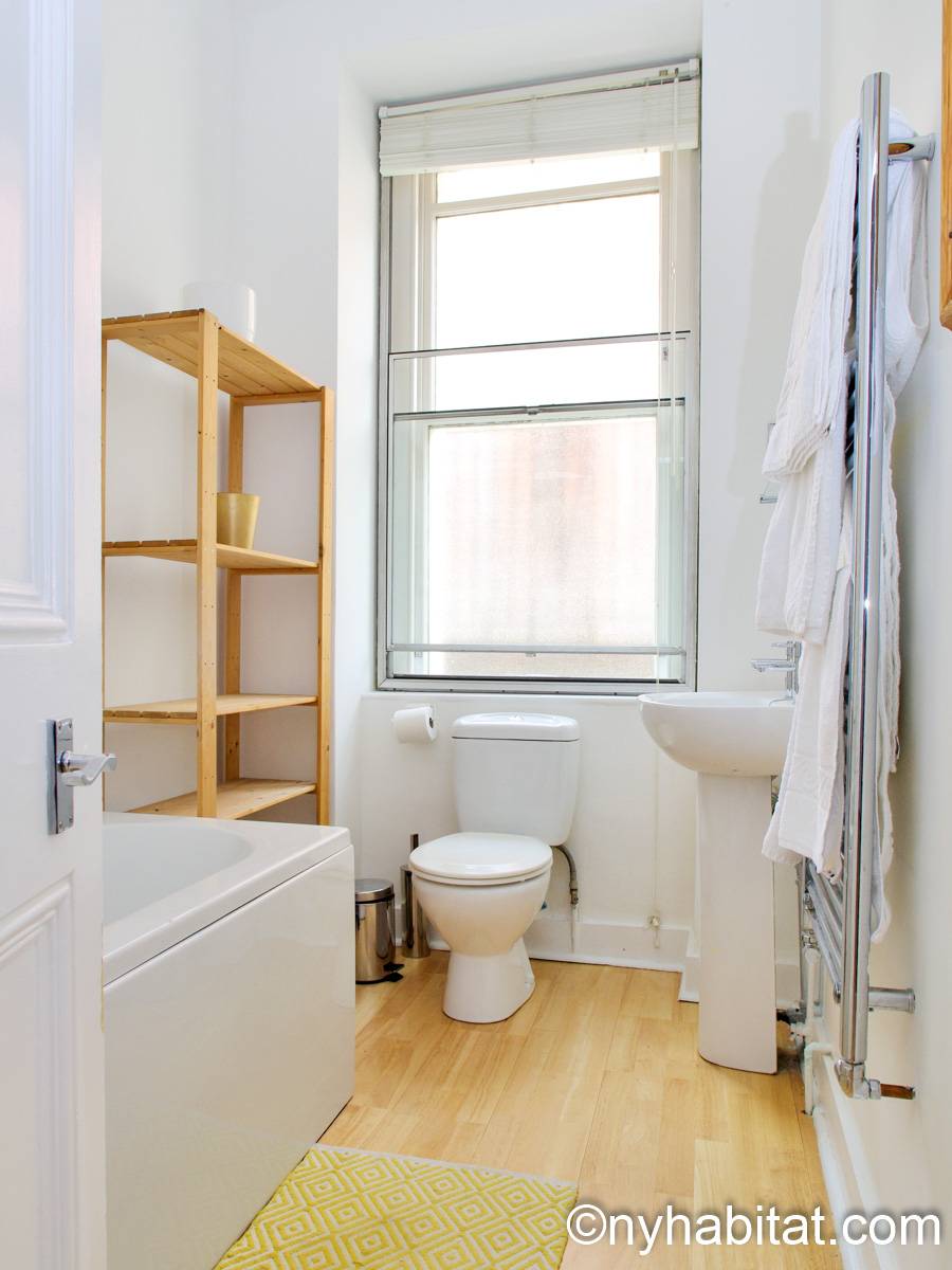 Elimine el estrés relajándose en la bañera y disfrute de la luz natural que entra por la ventana del cuarto de baño.