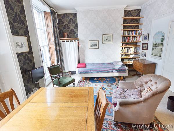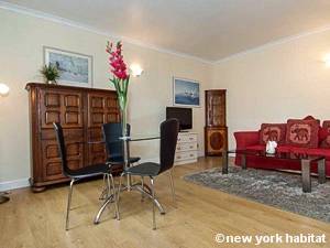 Es un apartamento estudio verdaderamente espacioso, que incluye una cama doble (140 cm), además de un sofá cama, una mesa de comedor con cuatro sillas y una cocina completamente equipada, con lavavajillas, horno y una ventana. Hay bastantes instalaciones para su comodidad, como portero automático, televisión y servicio de internet. La decoración es eclética y, a la vez, moderna; mezclando madera y materiales artificiales y reflejando la agitación de la ciudad.