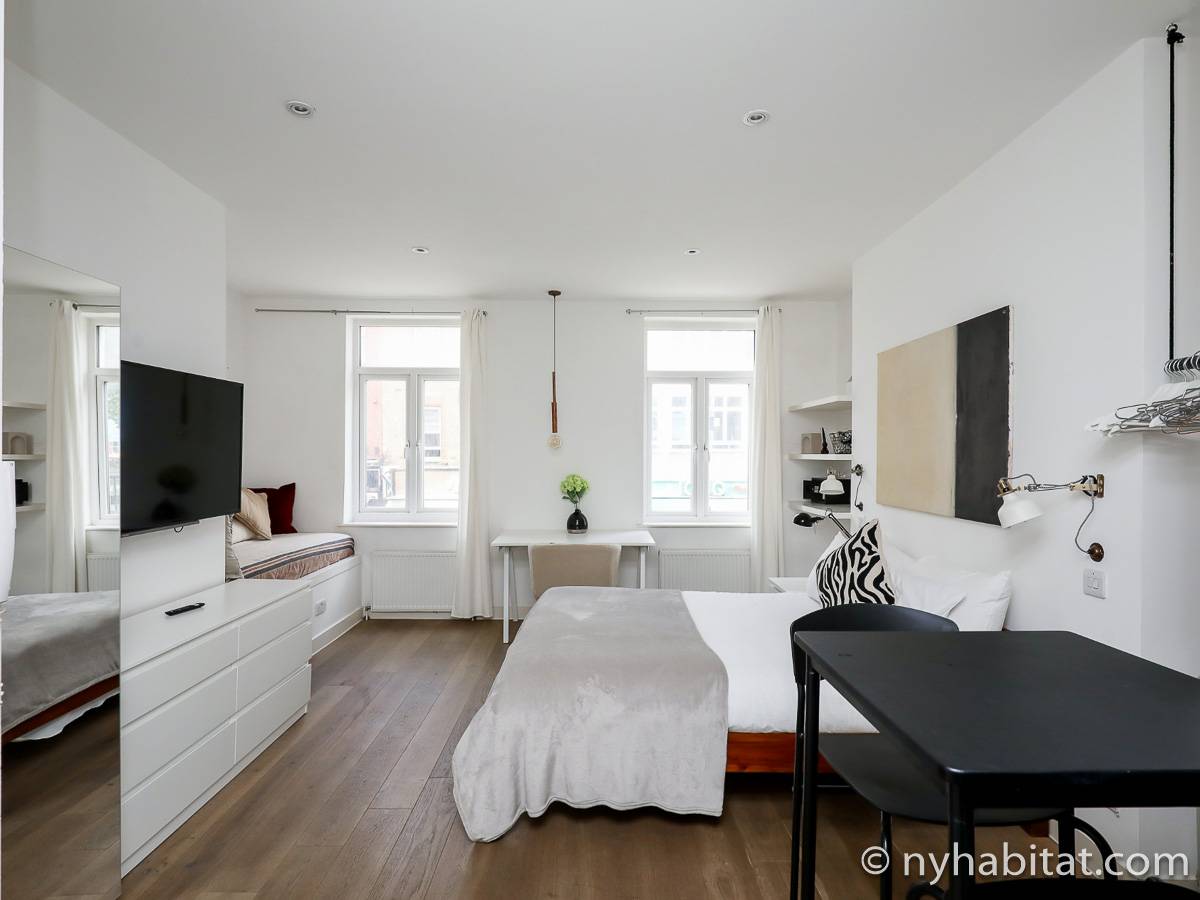 Si está buscando alojamiento en un estudio completamente amueblado en el corazón de Mayfair-Soho, Londres, le encantará encontrar este apartamento estudio. Situado en un edificio moderno justo en Soho Square entre Oxford Street y Shaftesbury Avenue, el apartamento de vacaciones está orientado tanto al Este como al Oeste, además de tener acceso a la azotea con vistas a la plaza. Este edificio no solo está equipado de un ascensor y una lavadora, sino que además es un apartotel.