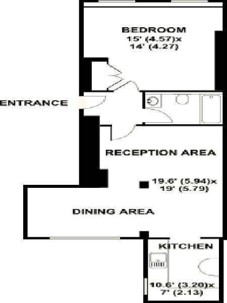 Este apartamento de 1 dormitorio en Londres ocupa 40 metros cuadrados, que abarcan un dormitorio, un salón, un comedor, una cocina y un cuarto de baño. Cuando entre en el apartamento se encontrará el dormitorio justo a su izquierda, totalmente amueblado con una cama tamaño king. Justamente enfrente de la puerta de entrada hay un cuarto de baño completo, con ducha y bañera. A su derecha está el salón, que da al comedor; hay un sofá y un televisor con emisión por cable. La cocina da al comedor y está muy bien equipada con todo lo que pueda necesitar para preparar sus propios platos, incluido un frigorífico/congelador, un horno, un microondas y otros electrodomésticos.