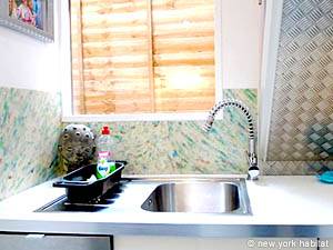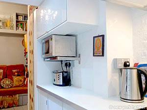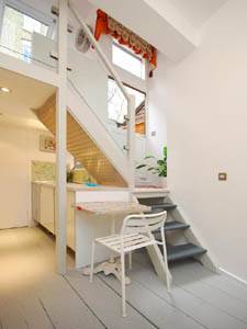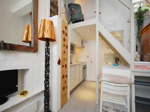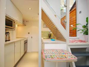 Este apartamento estudio dúplex de Londres mide 20 m2 y se encuentra en la planta baja del edificio. Tiene dos plantas: la planta baja que es una planta abierta, con salón a mano izquierda. Cuenta con sofá, mesa de comedor y televisión por cable. También hay una cocina abierta a la derecha, perfecta para preparar comidas sencillas. Tiene microondas, horno y tostadora. El baño con ducha está situado al pasar la cocina. Hay unas escaleras que le llevarán a la alcoba, donde se sitúa la zona de descanso con una cama doble. Desde aquí podrá acceder a la terraza para disfrutar del aire fresco.