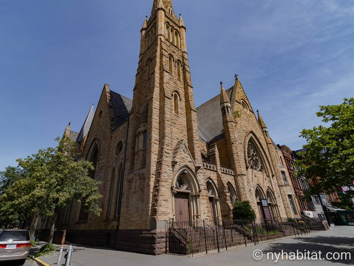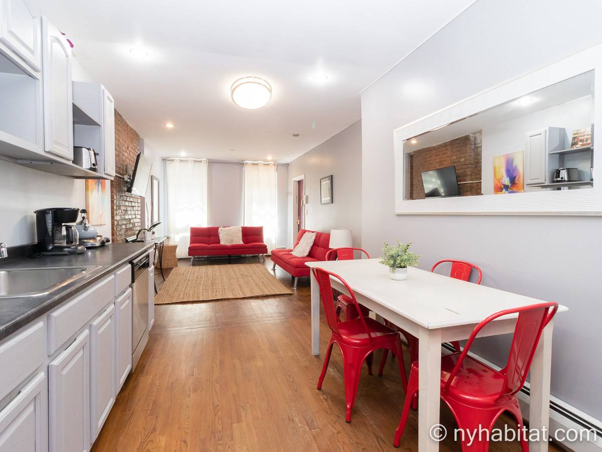 Harlem es un barrio muy animado, rico en cultura y tradición y se está convirtiendo en uno de los barrios residenciales más populares de Nueva York. Tanto la cocina como la arquitectura de la zona son magníficas. Uno de los restaurantes más recomendables del Uptown es el restaurante de comida soul Sylvia’s, a pocas calles del apartamento. Para las compras, la 125th Street ofrece opciones muy diversas, desde tiendas de ultramarinos y lavanderías hasta tiendas de ropa como H&M. Muy cerca del piso está el parque Marcus Garvey Park, un lugar frondoso y montañoso conocido por el Harlem Fire Watchover, un monumento histórico de hace 150 años que se usaba para apagar fuegos cuando se construyeron en Nueva York los primeros edificios de madera. .