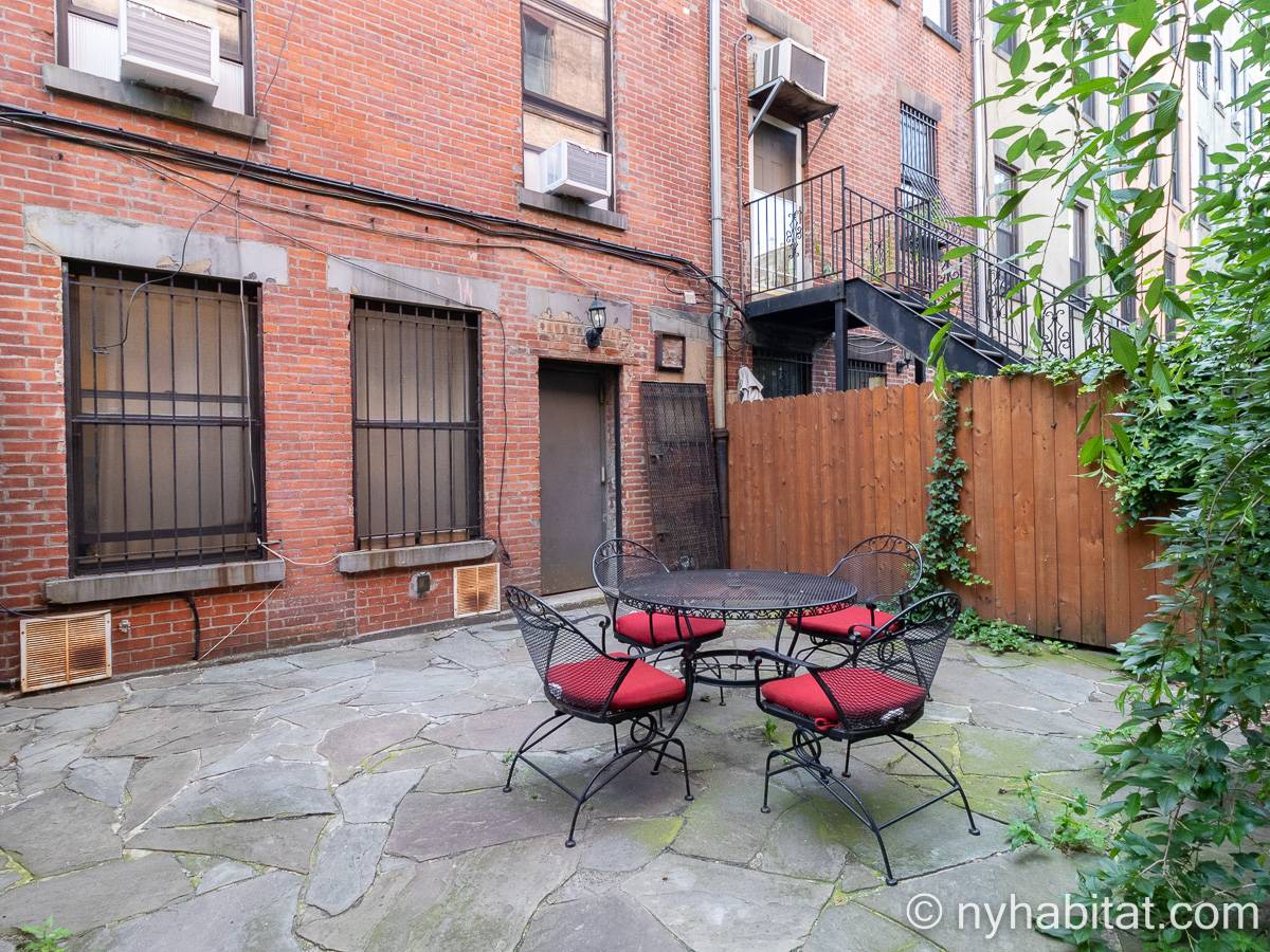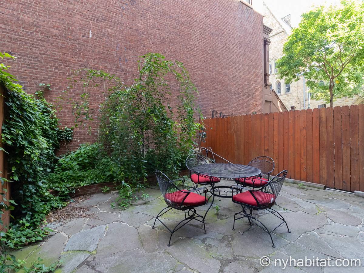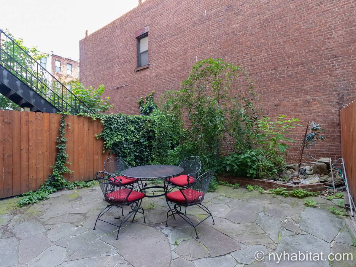 Este apartamento amueblado con mucho ingenio de 1 dormitorio está en un edificio clásico tipo brownstone ubicado en Lenox Avenue y West 123rd Street, en el corazón de Harlem, uno de los barrios residenciales más históricos de Nueva York. El edificio dispone de un moderno sistema de seguridad. El piso, al estar en la planta baja, tiene su propio patio trasero que permite disfrutar al aire libre sin tener que irse lejos y además evita preocupaciones con las escaleras o el ascensor.