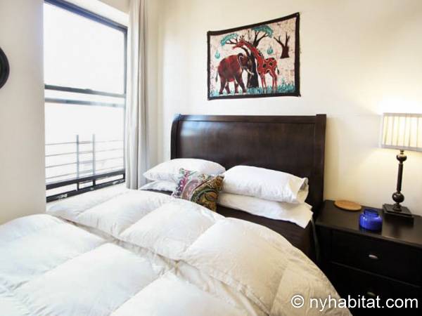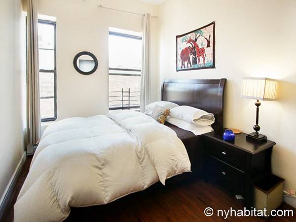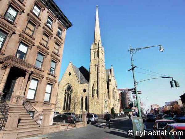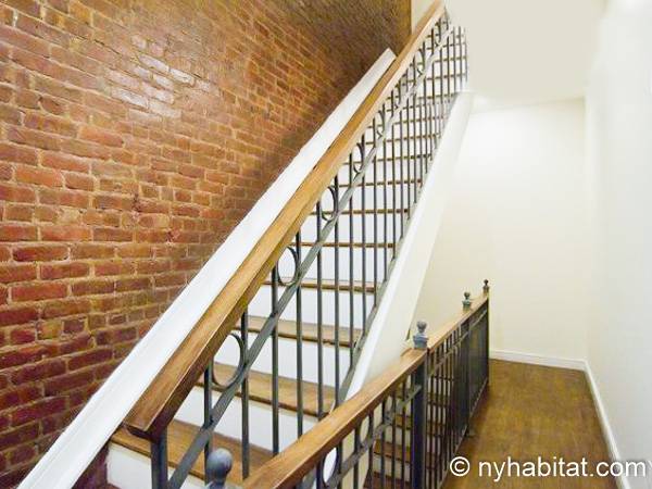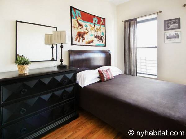 Este apartamento amueblado de dos dormitorios está ubicado en el cuarto piso de un Brownstone sin elevador en el corazón de Harlem, Ciudad de Nueva York. El edificio está equipado con un sistema de seguridad.