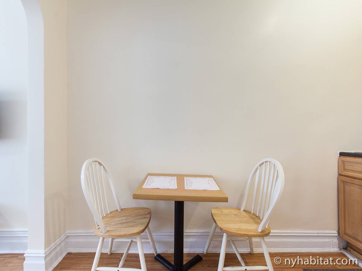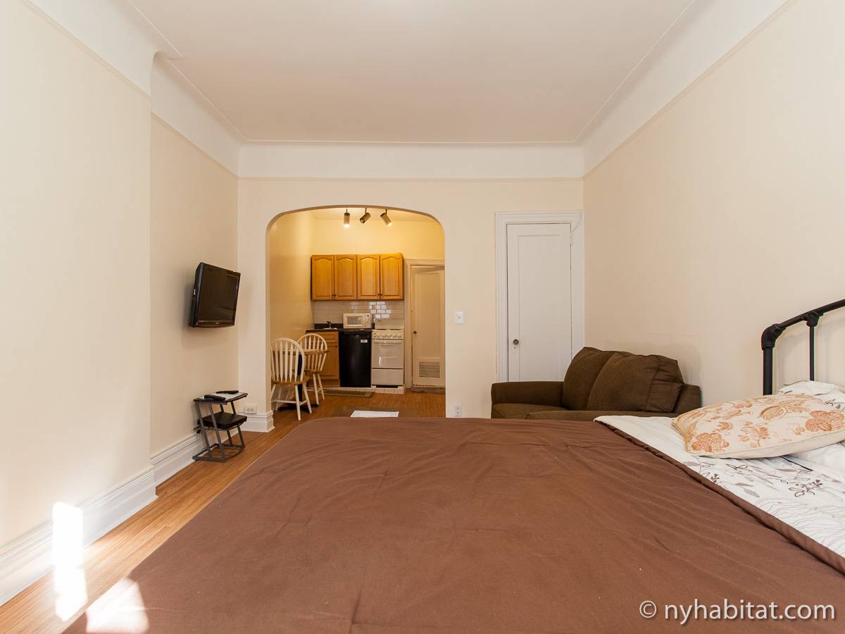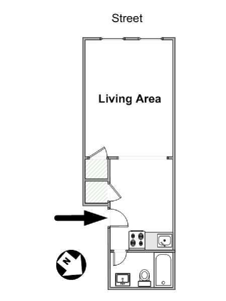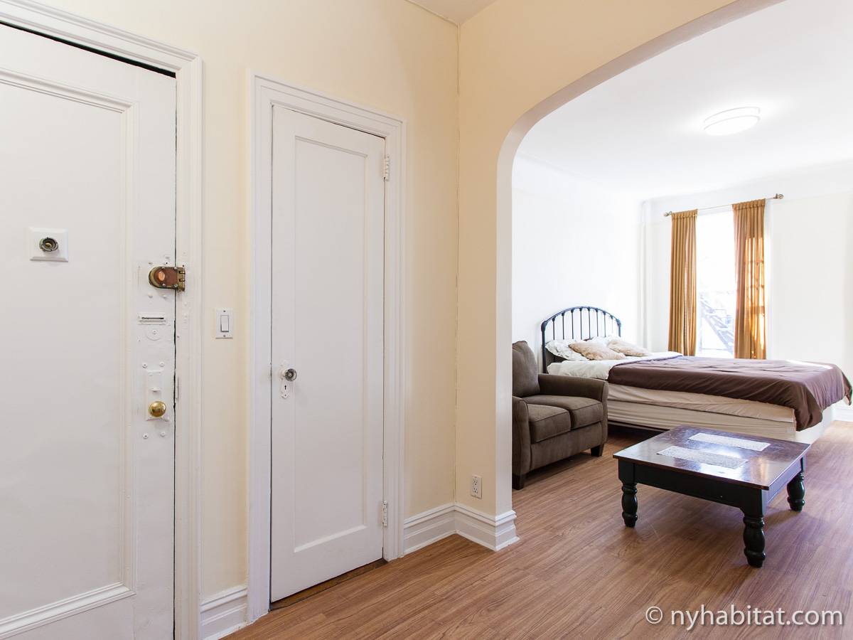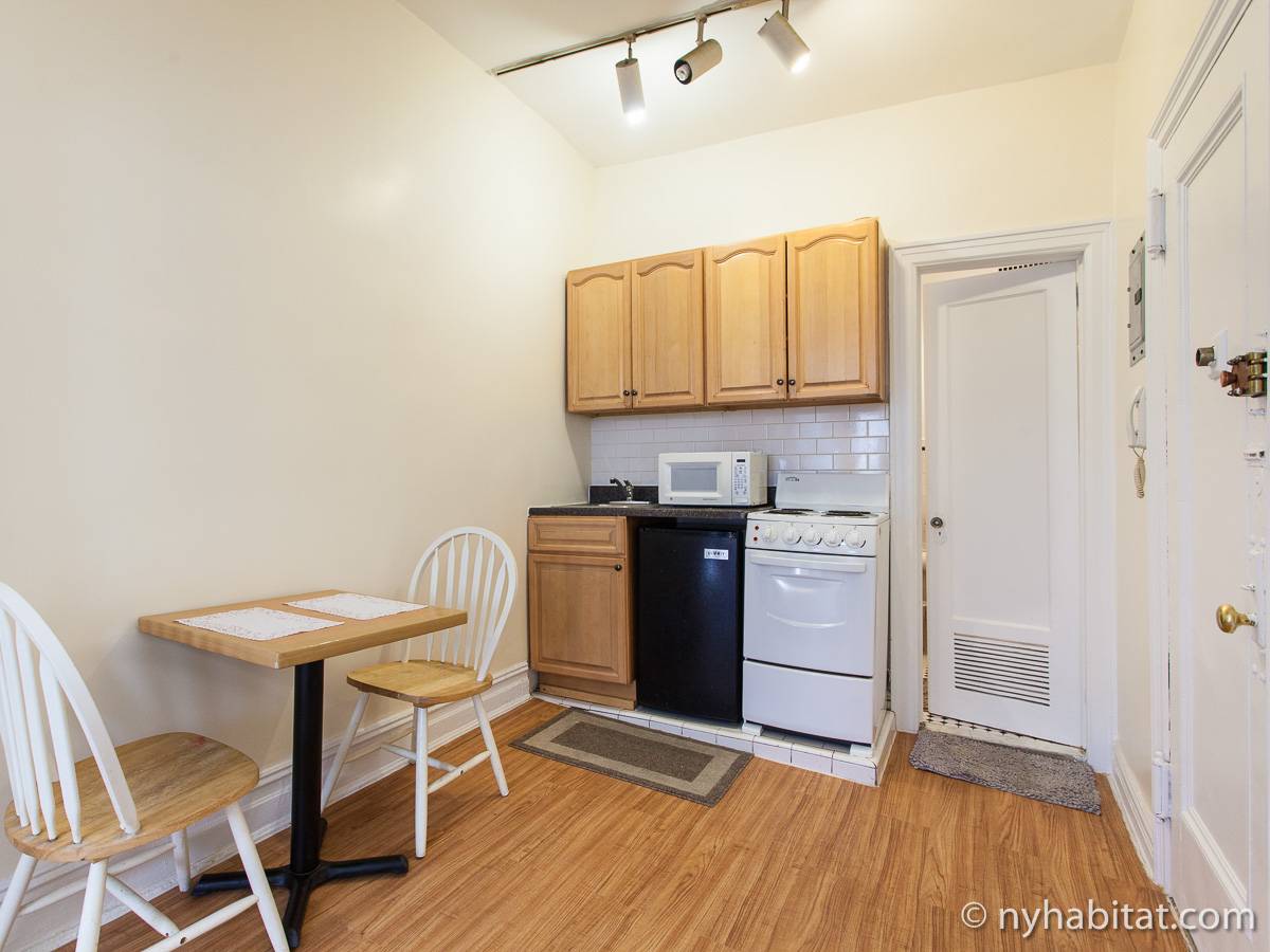 Forme parte de Midtown y alquile este apartamento estudio situado entre East 52nd Street y 2nd Avenue, a muy pocas manzanas de edificios icónicos de Nueva York como el Centro Rockefeller y la Grand Central Station. Este apartamento estudio completamente amueblado está situado en la tercera planta (equivalente a la segunda planta en Europa) de un edificio sin ascensor. Se trata de un edificio construido antes de la guerra y su antigüedad se puede apreciar en sus suelos y ventanas. No obstante, el edificio está en buenas condiciones y se llevan a cabo reformas regularmente.