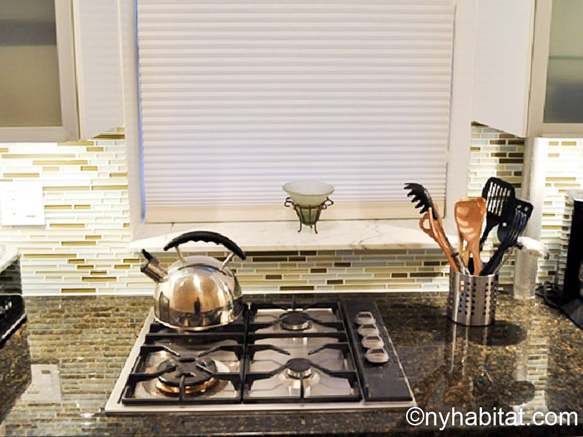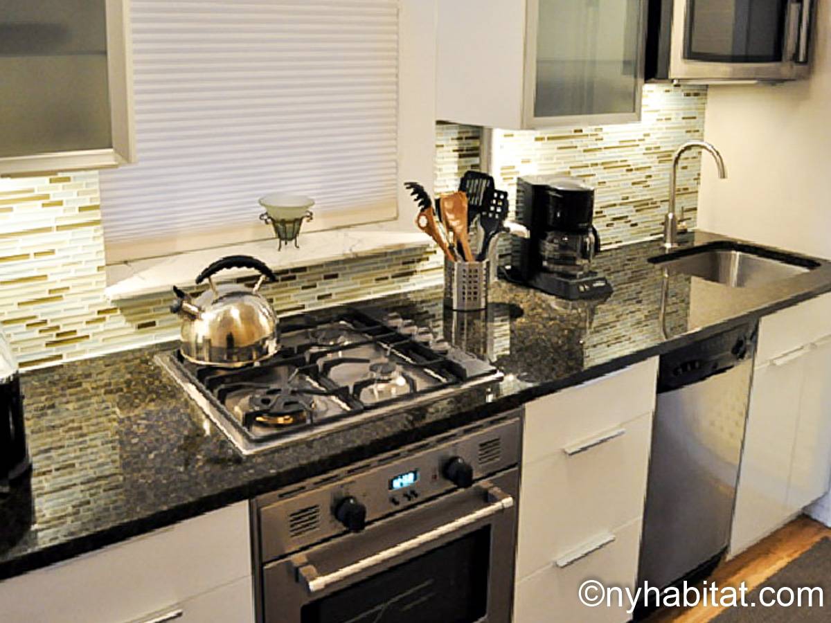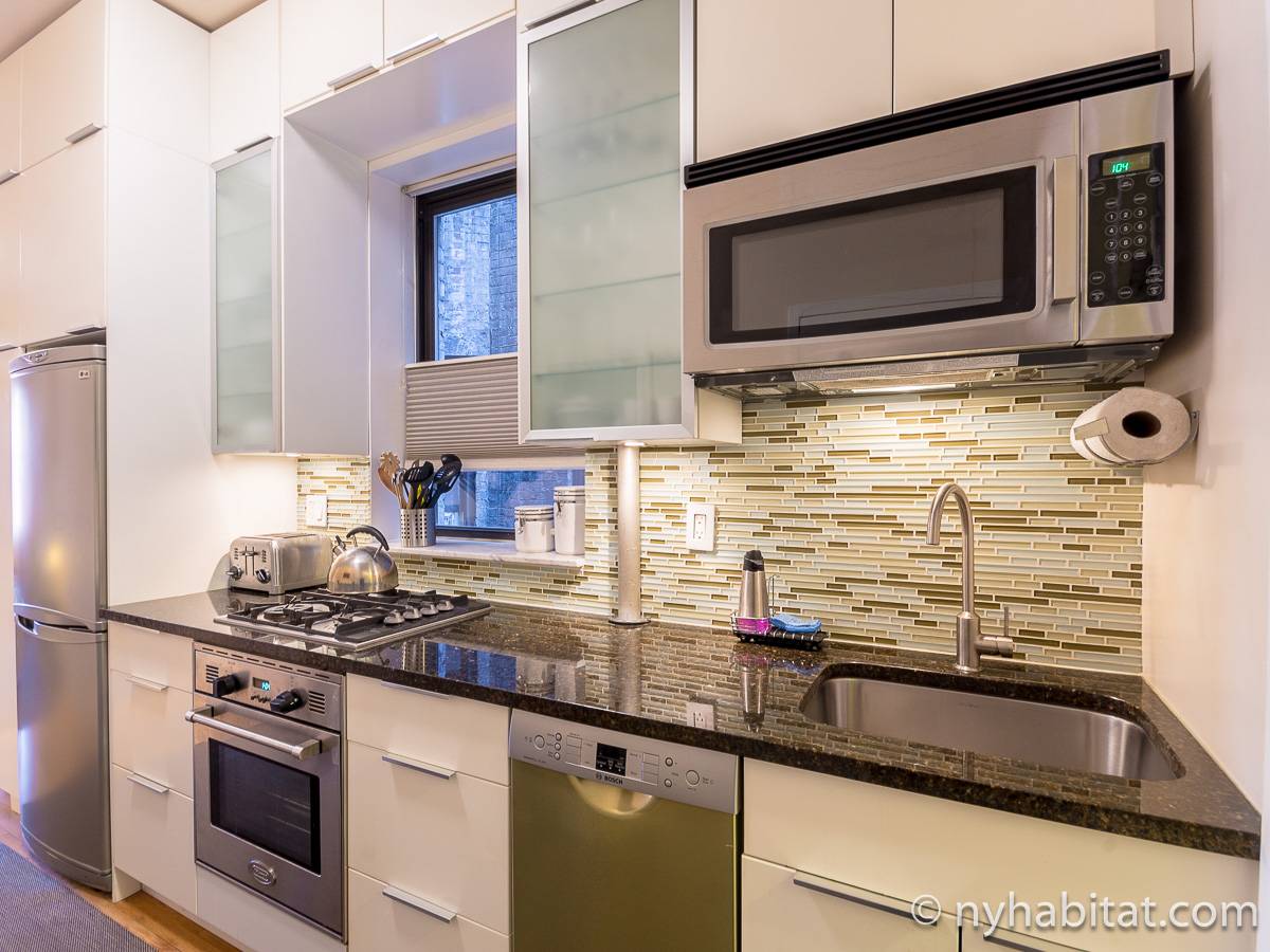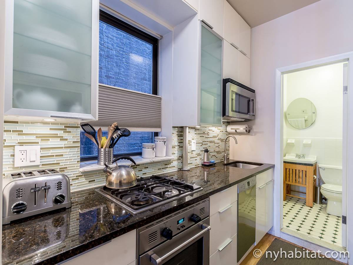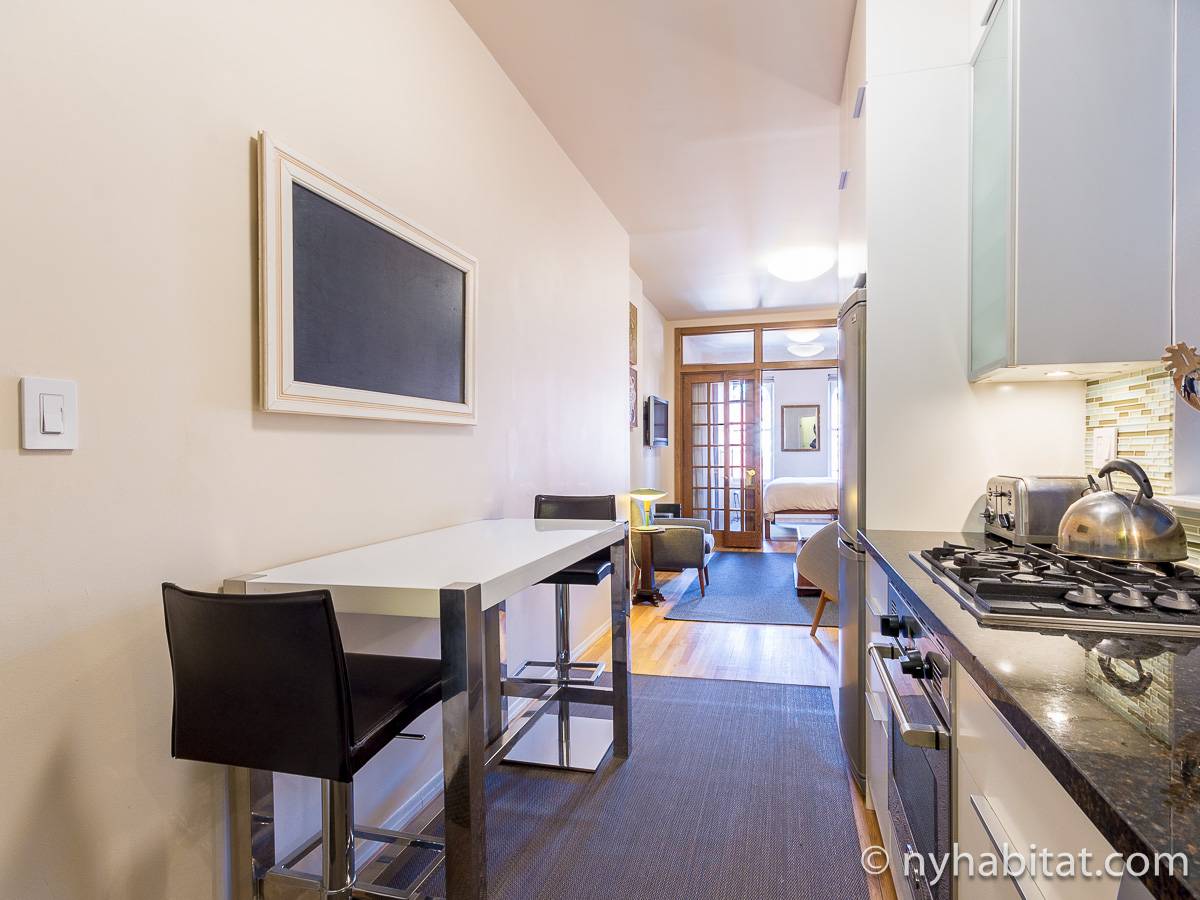 El apartamento da una impresión de amplitud. La entrada se hace directamente a la cocina, que dispone de electrodomésticos de acero inoxidable y todos los utensilios necesarios para cocinar. El piso dispone de conexión inalámbrica a Internet y de aire acondicionado en el salón para climatizar la habitación. A través de unas puertas correderas se accede al dormitorio, donde hay una ventana. El cuarto de baño, situado cerca de la entrada al apartamento, está equipado con una bañera con ducha y un inodoro.
