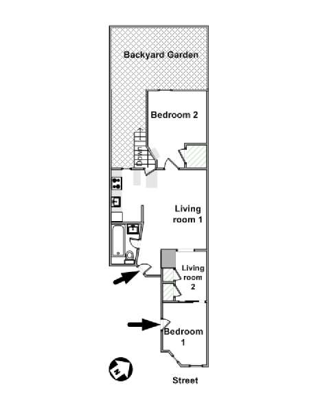 El apartamento de dos dormitorios se encuentra en Decatur Street y Thomas S Boyland Street, en la primera planta (equivalente a la planta baja en Europa) de un clásico edificio de piedra caliza de color rojizo que tiene 3 plantas y sin ascensor. Además, tiene jardín privado.