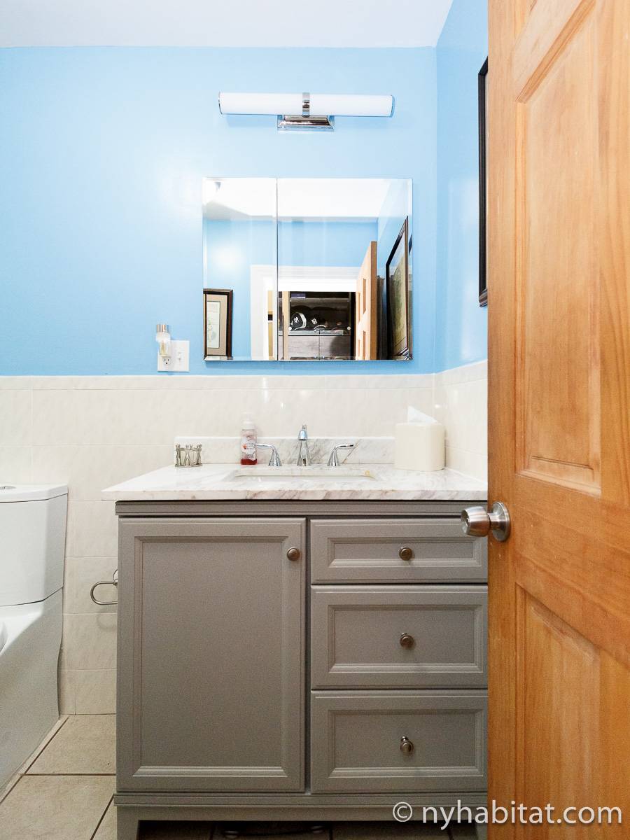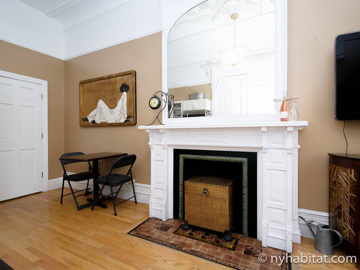 Este apartamento amueblado de Nueva York mantiene su estilo clásico con suelos de madera por todo el alojamiento y no una, sino dos encantadoras chimeneas decorativas tanto en el salón como en el dormitorio. El salón, de tonos neutros, es un espacio relajante con un lujoso sofá marrón chocolate y paredes decoradas con obras de arte. Un televisor de pantalla plana montado en la pared proporciona entretenimiento y el sofá se abre, convirtiéndose en sofá cama para cualquier invitado. La hermosa chimenea decorativa añade un ambiente acogedor. En el otro extremo de la sala está la cocina abierta con armarios blancos que proporcionan espacio de almacenamiento para sus comestibles y electrodomésticos de acero inoxidable, incluyendo microondas/horno de convección combinado y lavavajillas. El espacioso dormitorio es lo suficientemente grande como para estar disfrutándolo o para estar durmiendo, mientras que las molduras de corona originales y los detalles ornamentales añaden un encanto clásico. Relájese en la cama tamaño queen tras un largo día en Nueva York. Un par de sillones junto a una mesa auxiliar proporcionan un lugar acogedor para leer un libro frente a la chimenea decorativa. 2 ventanales ofrecen luz natural y dan vistas al patio trasero. Hay espacio de almacenamiento en las mesillas de noche de madera, en la cómoda y en el tocador del cuarto de baño. El cuarto de baño se ha actualizado con una ducha con puerta de cristal y bañera.