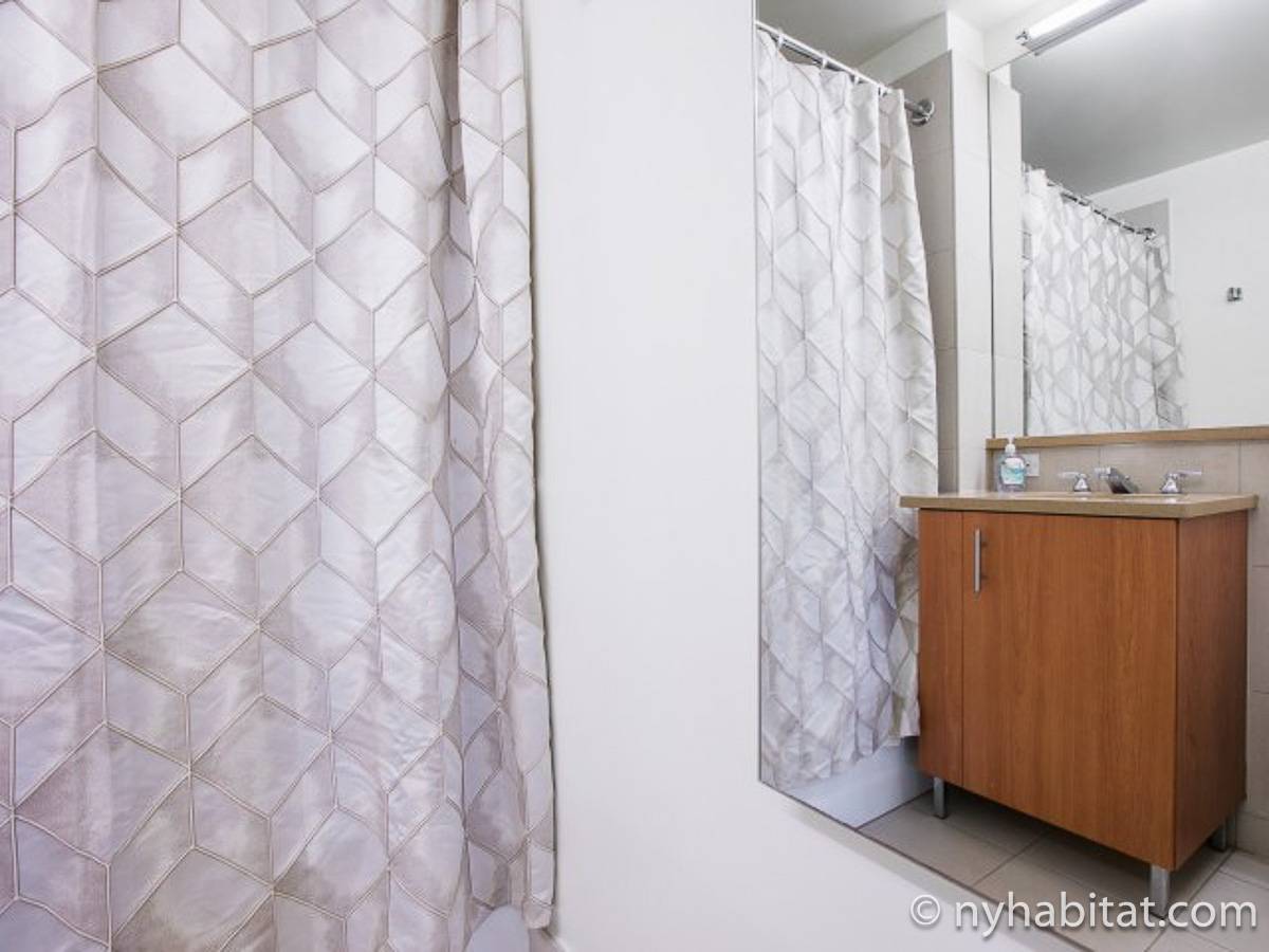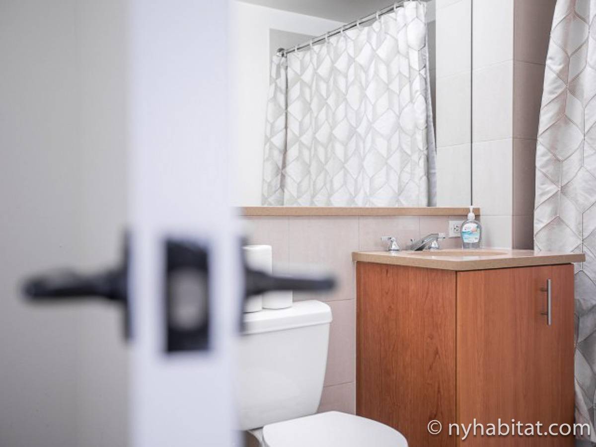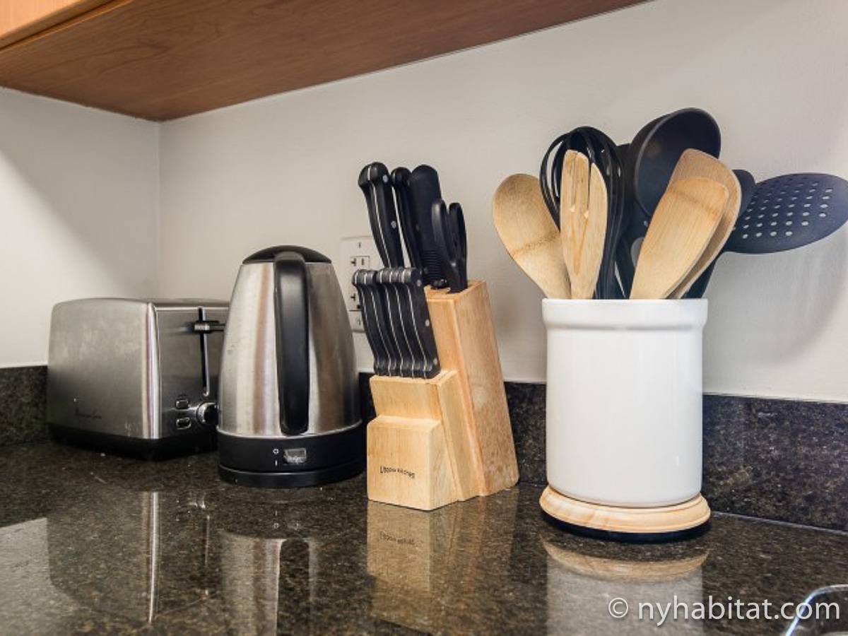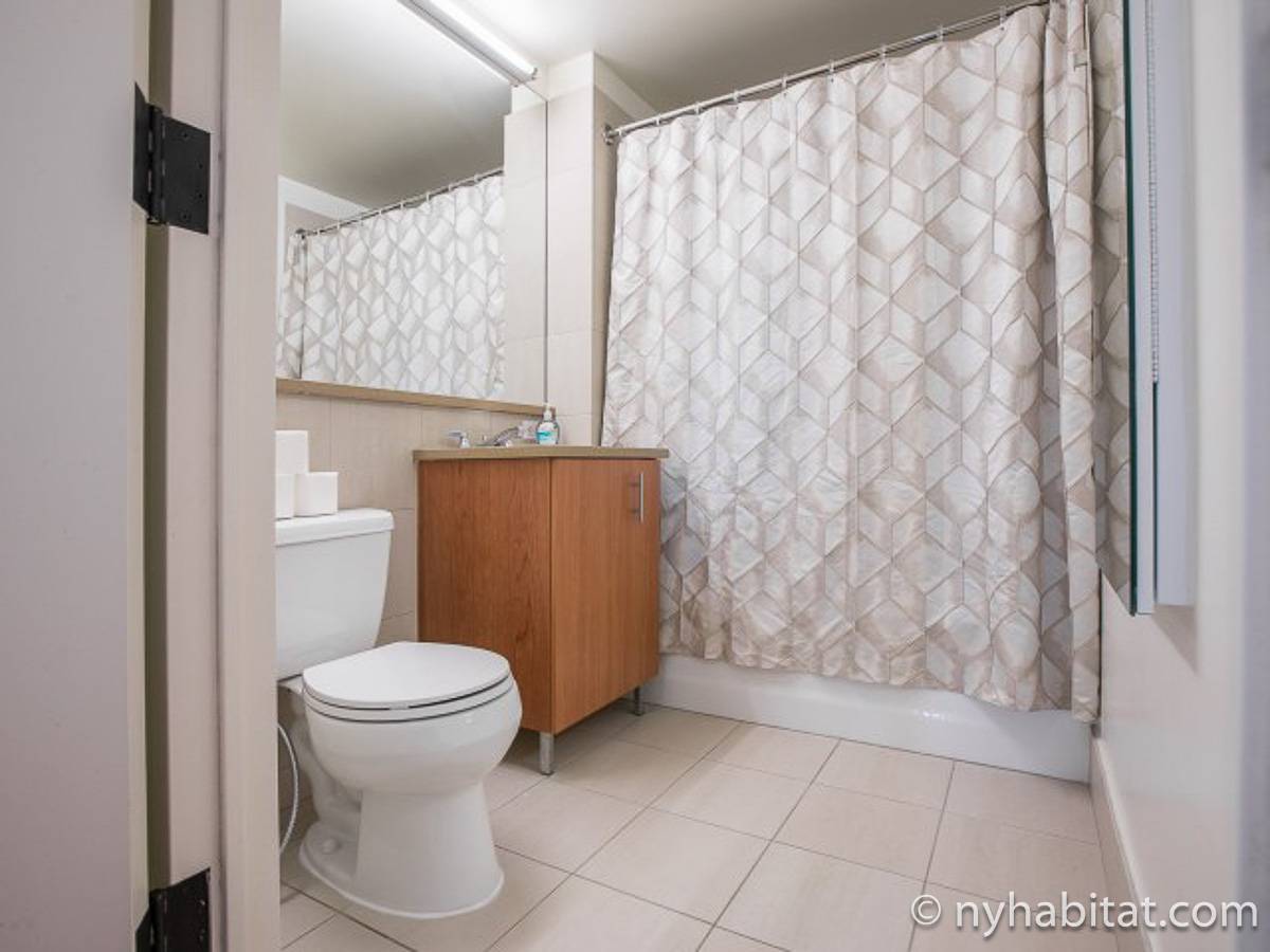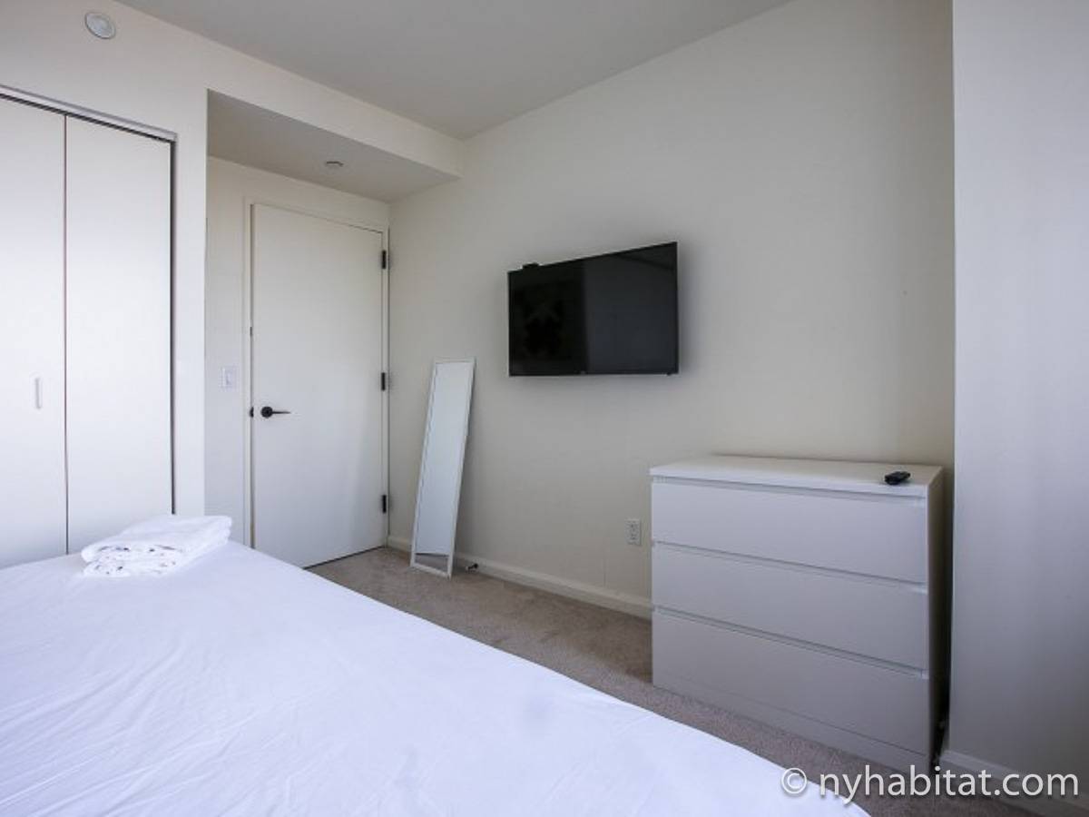 Disfrute de las vistas desde un piso alto de este apartamento amueblado de 1 dormitorio de Nueva York con pisos de parqué por todo el espacio y mobiliario contemporáneo. Se puede descansar en la sala de estar amueblado con un sofá gris oscuro, una mesa de centro y un televisor de pantalla plana montado en la pared. Cerca de la cocina de concepto abierto hay una mesa de comedor para cuatro personas para sentarse a comer. La cocina está abierta a la sala de estar, lo que le permite socializar mientras prepara la comida en la cocina. Los armarios a medida de madera de cerezo y los electrodomésticos de acero inoxidable combinan con las encimeras de granito en este espacio. La cocina totalmente equipada incluye horno, microondas, frigorífico y un práctico lavavajillas integrado en la isla de la encimera. En el dormitorio puede relajarse en la cama tamaño queen y disfrutar de las vistas al río mientras se duerme. También hay otro televisor de pantalla plana en esta habitación para que pueda ver la televisión desde la comodidad de su cama. Dispone de armarios y una cómoda para guardar sus pertenencias. El baño ofrece una bañera/ducha junto con un gran espejo, inodoro y lavabo con almacenaje debajo. Se proporcionan sábanas y toallas.