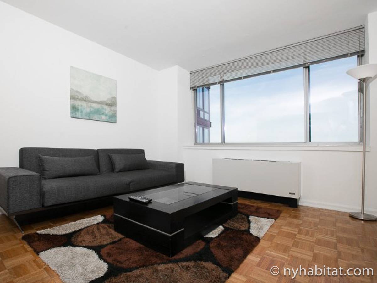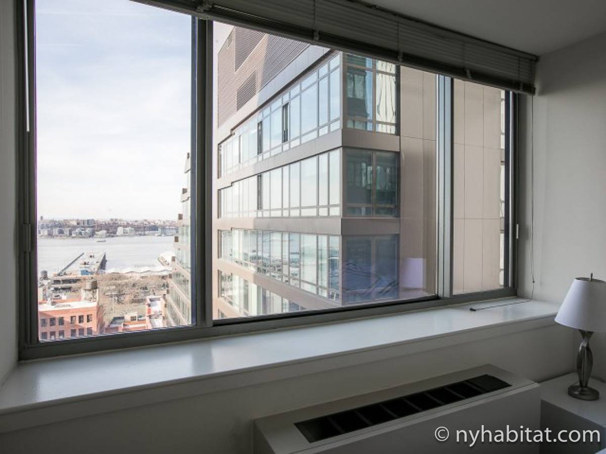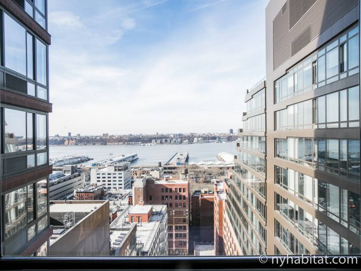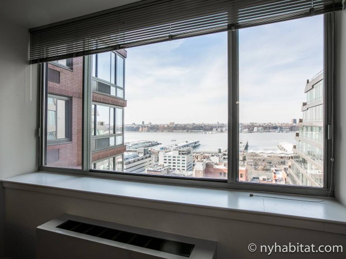 Disfrute de las vistas del Hudson River cuando alquile este apartamento amueblado de 1 dormitorio situado en la 22º piso (21º piso europeo) de un edificio alto con ascensor y portero de 24 horas en Manhattan. El edificio está situado cerca de la 52nd Street y 10th Avenue en Midtown West. Los servicios del edificio incluyen instalaciones de lavandería, centro de salud, salón y azotea con vistas impresionantes del Hudson River y Midtown Manhattan.