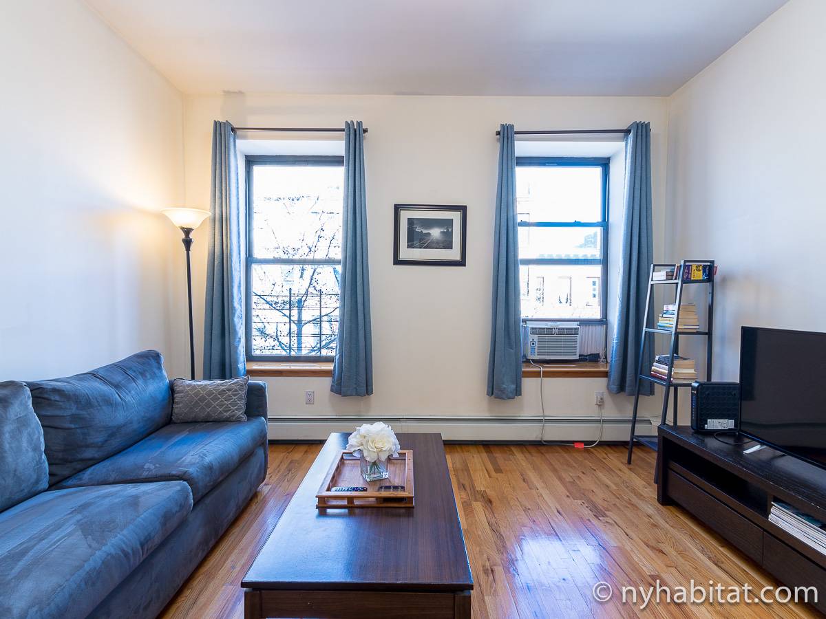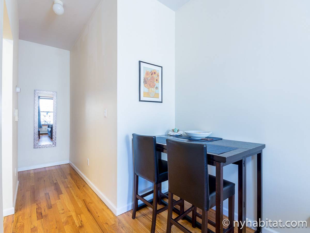 Este apartamento amueblado de 1 dormitorio se encuentra en el histórico barrio de Harlem en una de sus preciosas manzanas bordeada de árboles. Desde la esquina de West 132nd Street y Malcom X Boulevard, camine hasta este apartamento en el último piso de 3 (equivalente al 2º piso en Europa) de un edificio de piedra rojiza clásica que ofrece un sistema de seguridad, lavadora, secadora y aire acondicionado.