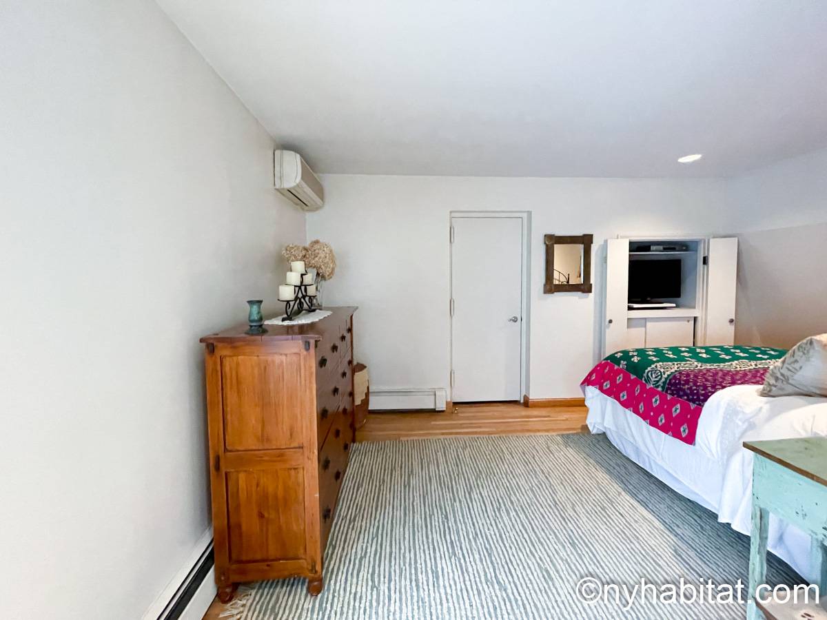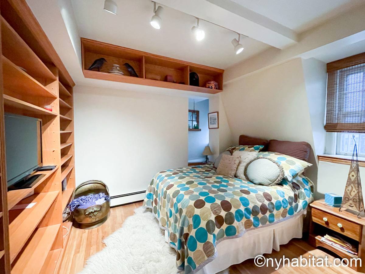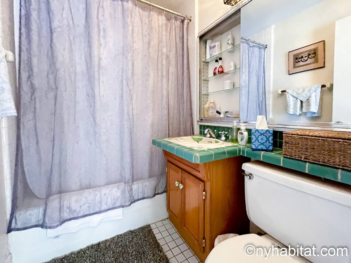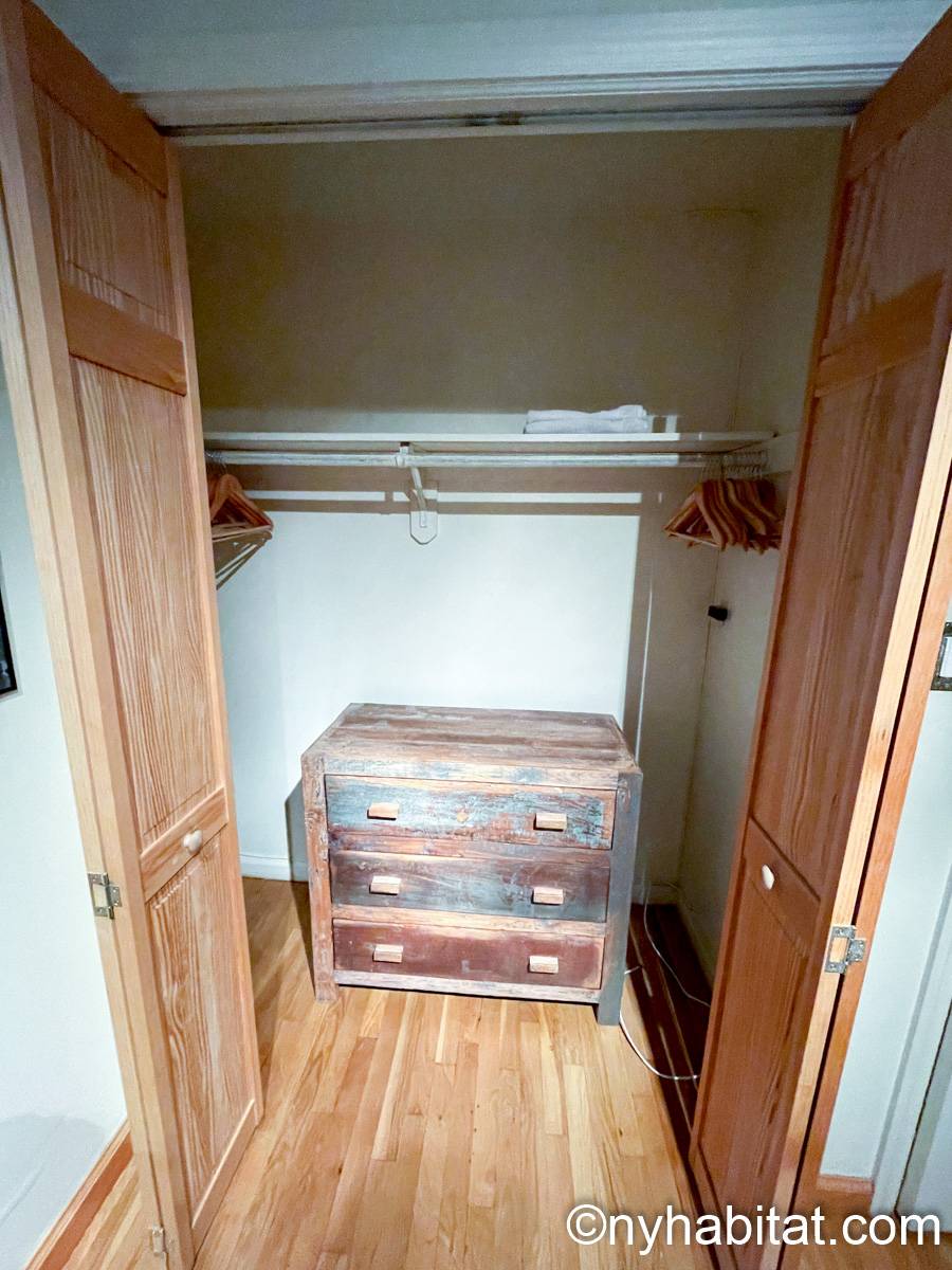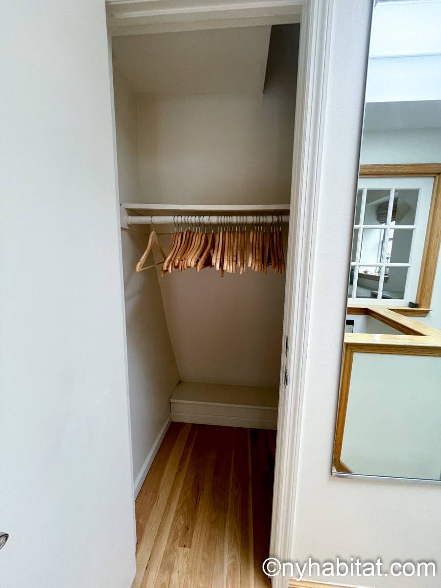 Como para la mayoría de los neoyorquinos, no es habitual que el ascensor dé directamente al apartamento. Al entrar en este edificio construido en los años 30, uno se siente y vive como un auténtico neoyorquino. Este apartamento dúplex está situado en las plantas sexta y séptima del edificio (plantas cinco y seis para los europeos). En el salón, lo reciben unas puertas que lo llevan al exterior, a la terraza. El salón cuenta aire acondicionado. En la cocina, tiene una nevera y congelador, microondas, cafetera, tostadora, lavavajillas, una estufa de cuatro quemadores con un horno, y una ventana para mirar hacia fuera recordándole que está cocinando con una vista de Manhattan. Los dos dormitorios están con un aire acondicionado y ventanas. Los cuartos de baño disponen de un combo de bañera-ducha, un váter, un espejo y un lavabo con espacio debajo para artículos de aseo.