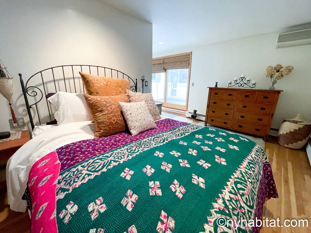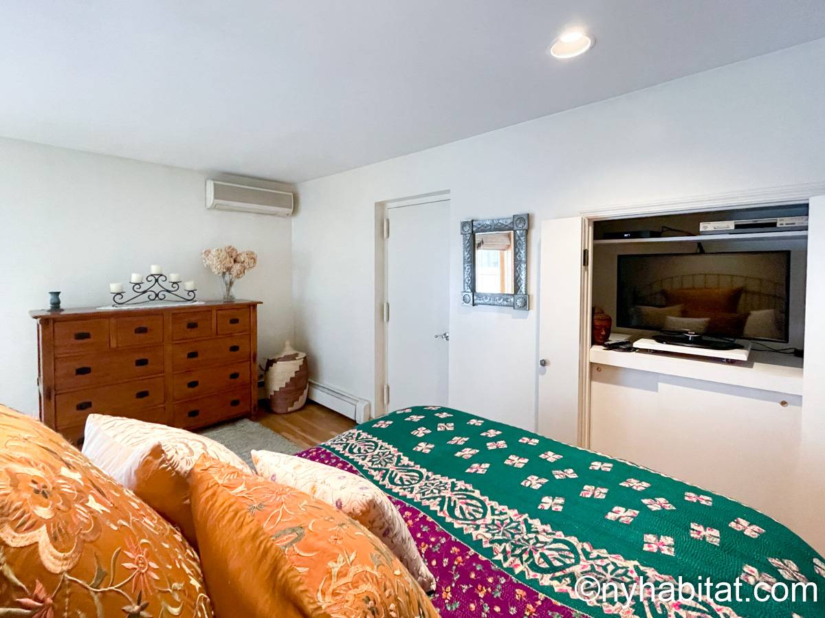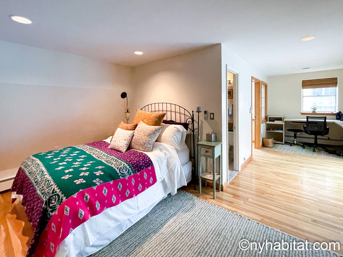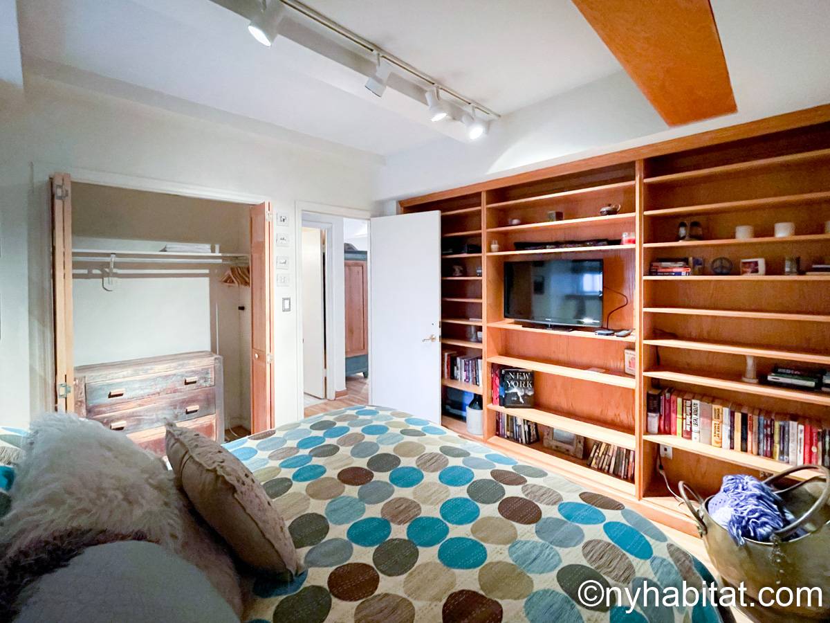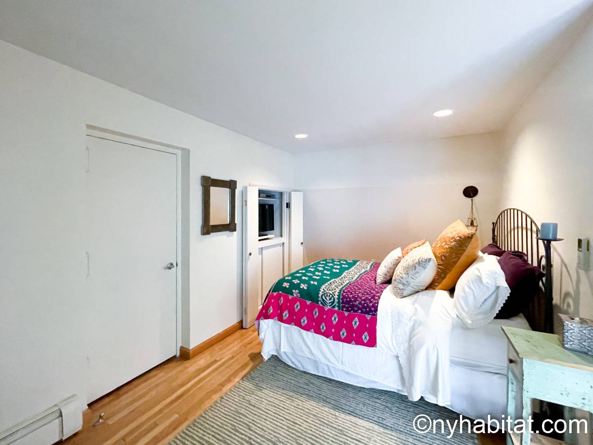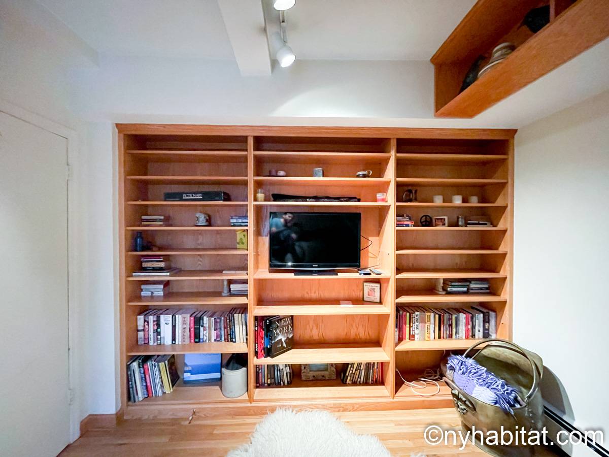 Como para la mayoría de los neoyorquinos, no es habitual que el ascensor dé directamente al apartamento. Al entrar en este edificio construido en los años 30, uno se siente y vive como un auténtico neoyorquino. Este apartamento dúplex está situado en las plantas sexta y séptima del edificio (plantas cinco y seis para los europeos). En el salón, lo reciben unas puertas que lo llevan al exterior, a la terraza. El salón cuenta aire acondicionado. En la cocina, tiene una nevera y congelador, microondas, cafetera, tostadora, lavavajillas, una estufa de cuatro quemadores con un horno, y una ventana para mirar hacia fuera recordándole que está cocinando con una vista de Manhattan. Los dos dormitorios están con un aire acondicionado y ventanas. Los cuartos de baño disponen de un combo de bañera-ducha, un váter, un espejo y un lavabo con espacio debajo para artículos de aseo.