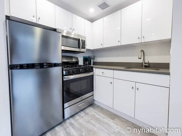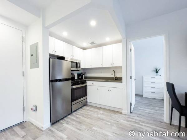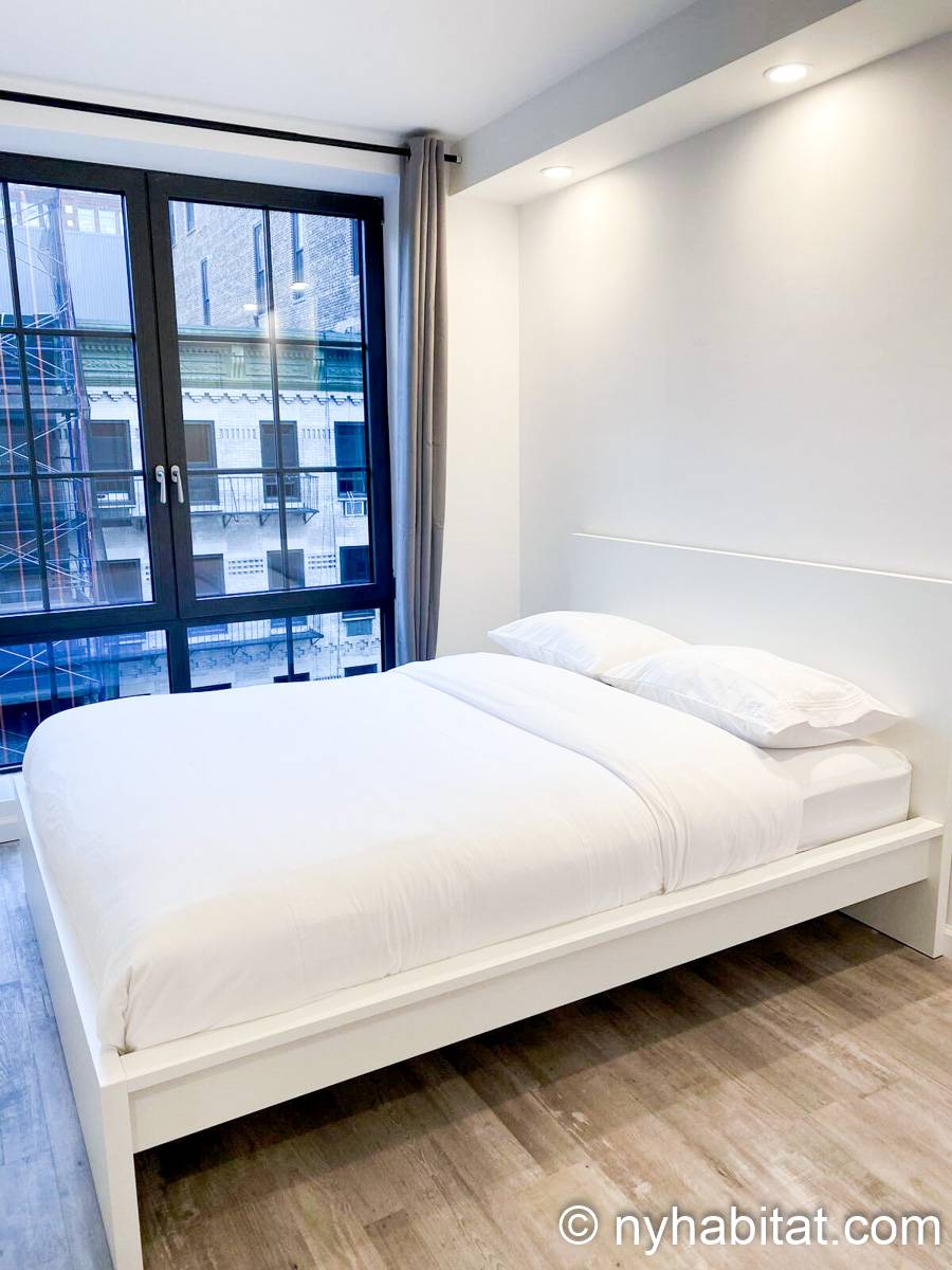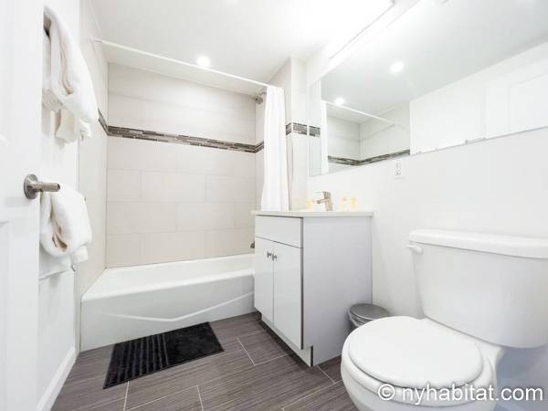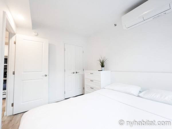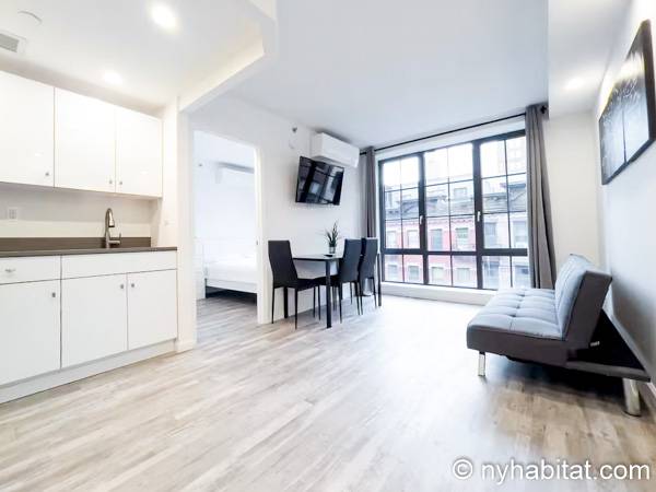 Este apartamento amueblado de dos dormitorios y un baño se encuentra en West 53rd Street de Midtown West. El edificio cuenta con una sala de lavandería y un ascensor que permite acceder a todas las plantas. La vivienda también incluye aire acondicionado para que no pase calor durante esos agobiantes días de verano.