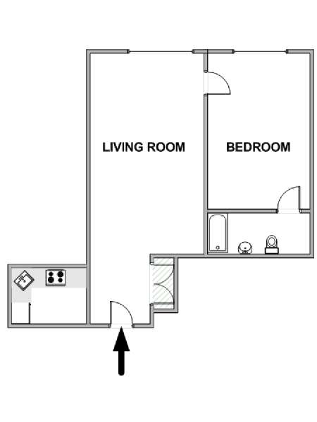 El apartamento amueblado de 57 m² consta de un salón, un dormitorio, una cocina y un baño. En el salón, hay muebles contemporáneos, como un sofá y una mesa de comedor, junto con el suelo de madera. La habitación también tiene una televisión de pantalla plana, aire acondicionado, una cama tamaño queen y un armario donde podrá guardar sus pertenencias. La cocina tiene armarios y encimera y está equipada con una nevera, un congelador, un horno, un microondas, una cafetera, una tostadora y un lavavajillas. El cuarto de baño tiene una ducha, una bañera y un inodoro.