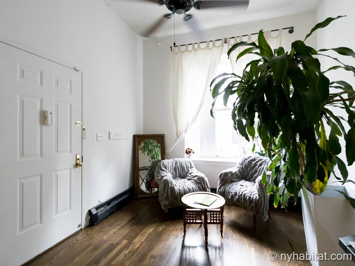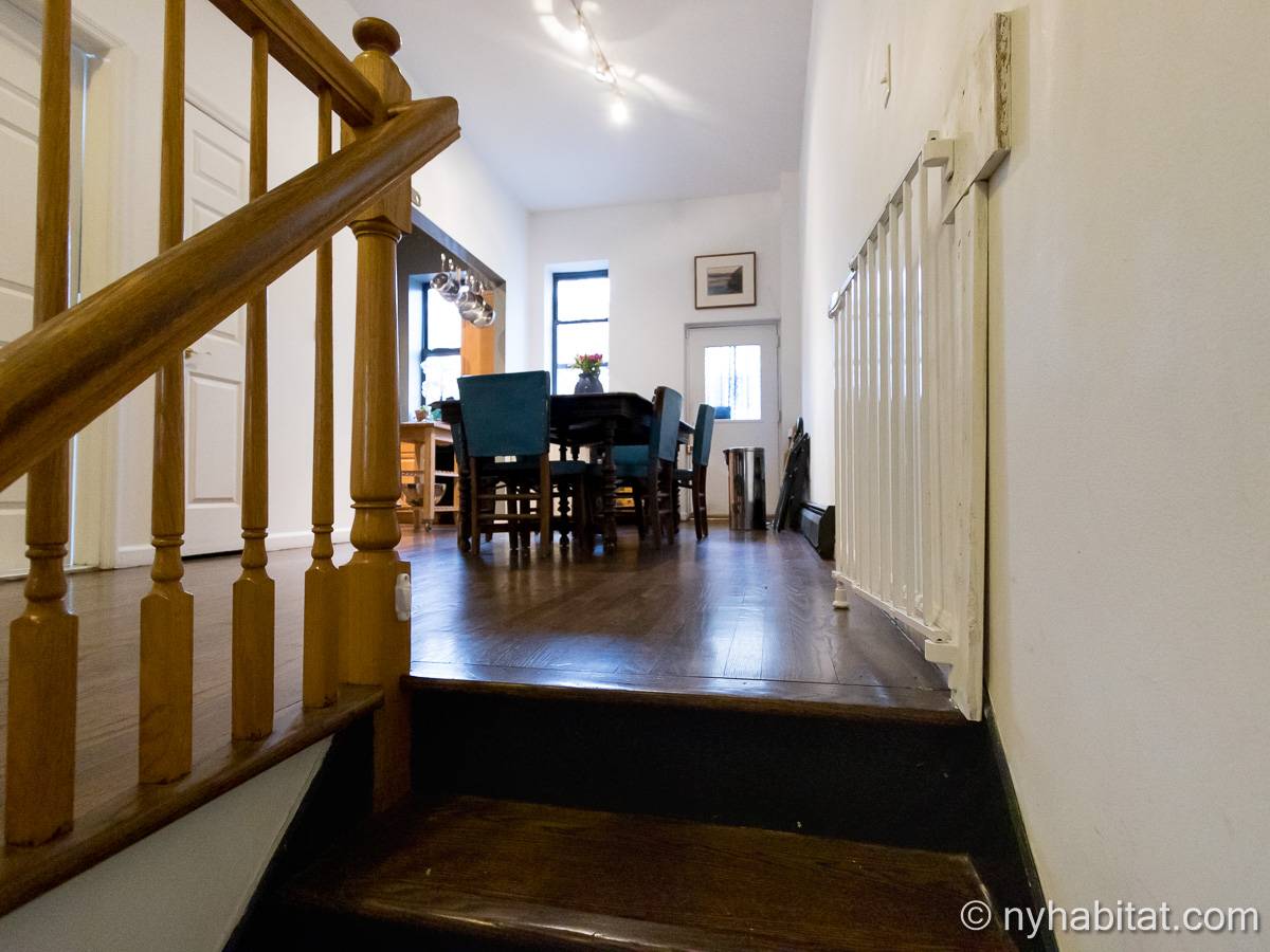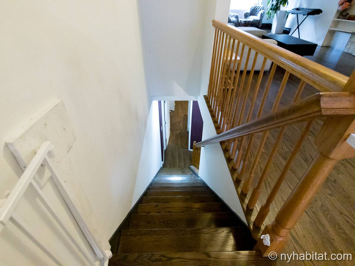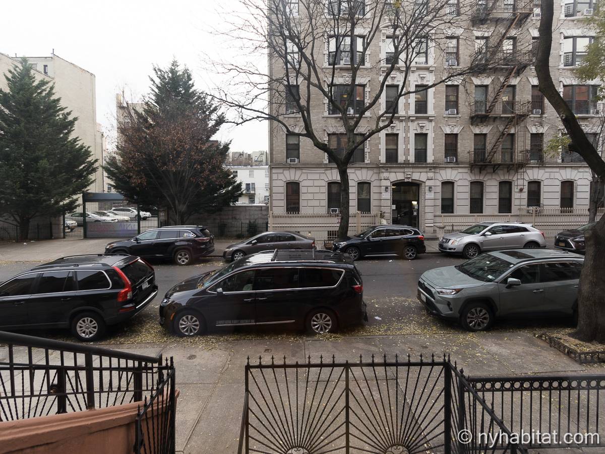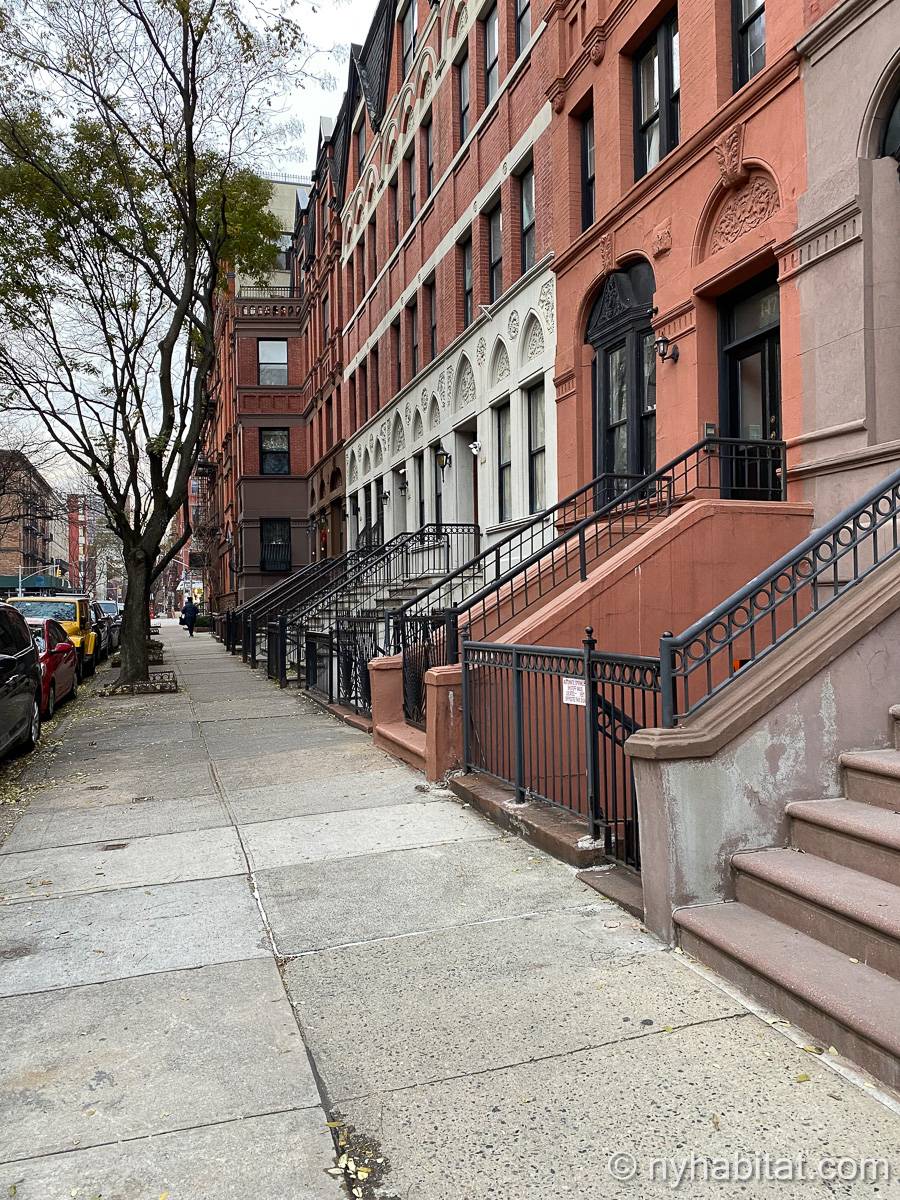 Este apartamento amueblado de 2 dormitorios y 2.5 baños está en los pisos 1 y 2 (equivalente a la planta baja y al piso 1 en Europa) de un edificio de piedra rojiza de 5 pisos en Manhattan, ciudad de Nueva York. El edificio cuenta con un sistema de seguridad, instalaciones de lavandería y un jardín. Este se encuentra en 118th Street y Seventh Avenue, en el barrio de Harlem.