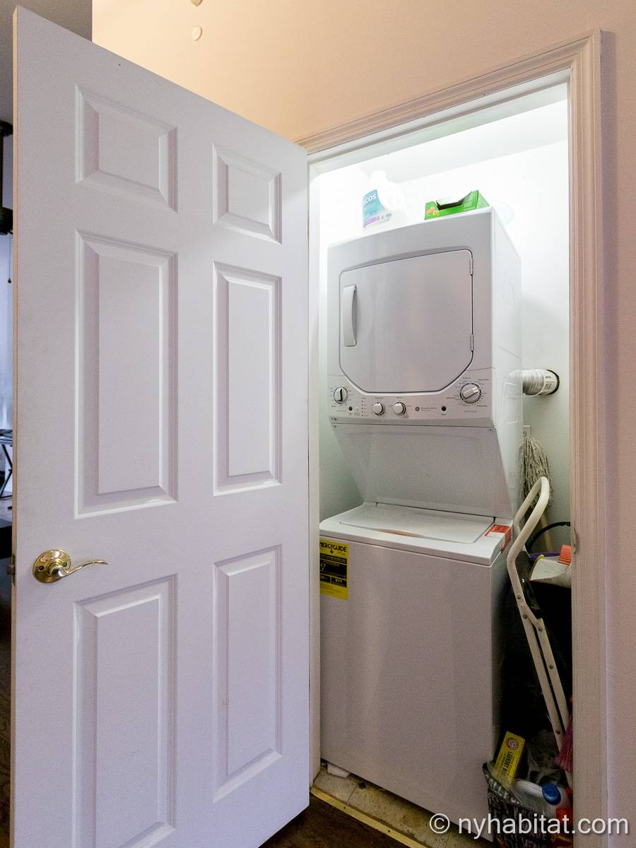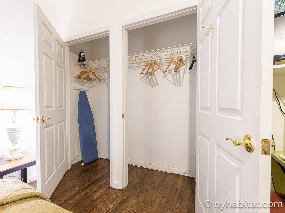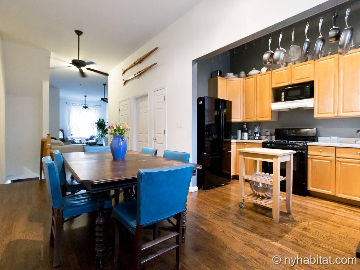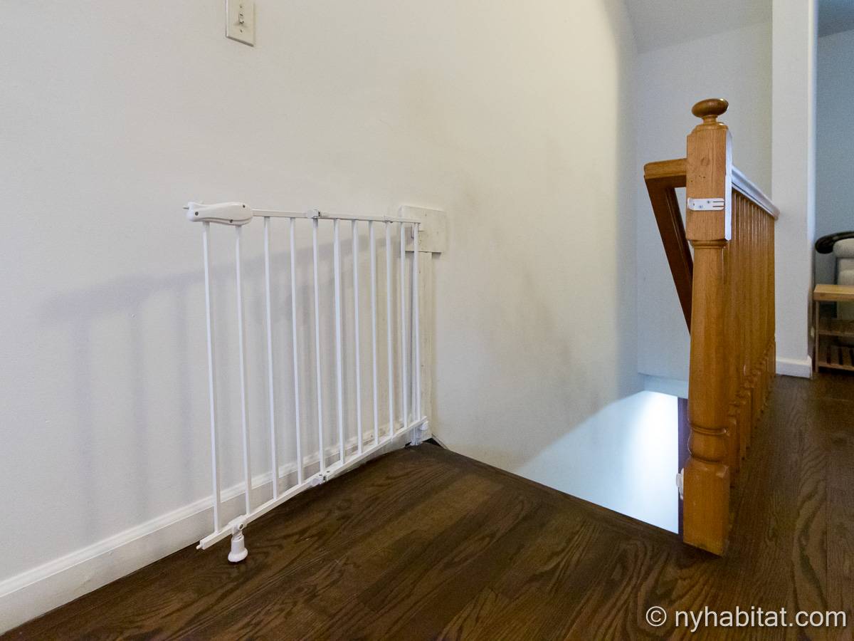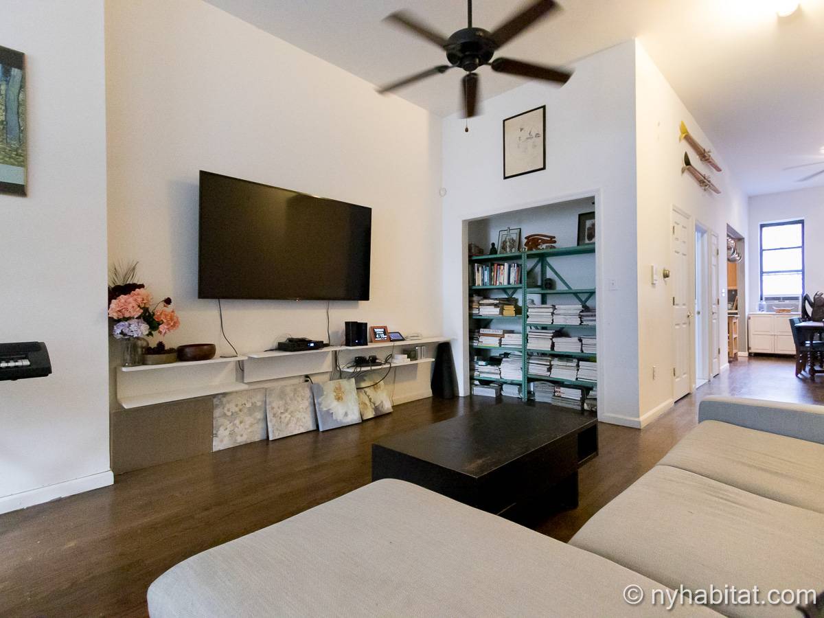 Este apartamento amueblado de 2 dormitorios y 2.5 baños está en los pisos 1 y 2 (equivalente a la planta baja y al piso 1 en Europa) de un edificio de piedra rojiza de 5 pisos en Manhattan, ciudad de Nueva York. El edificio cuenta con un sistema de seguridad, instalaciones de lavandería y un jardín. Este se encuentra en 118th Street y Seventh Avenue, en el barrio de Harlem.