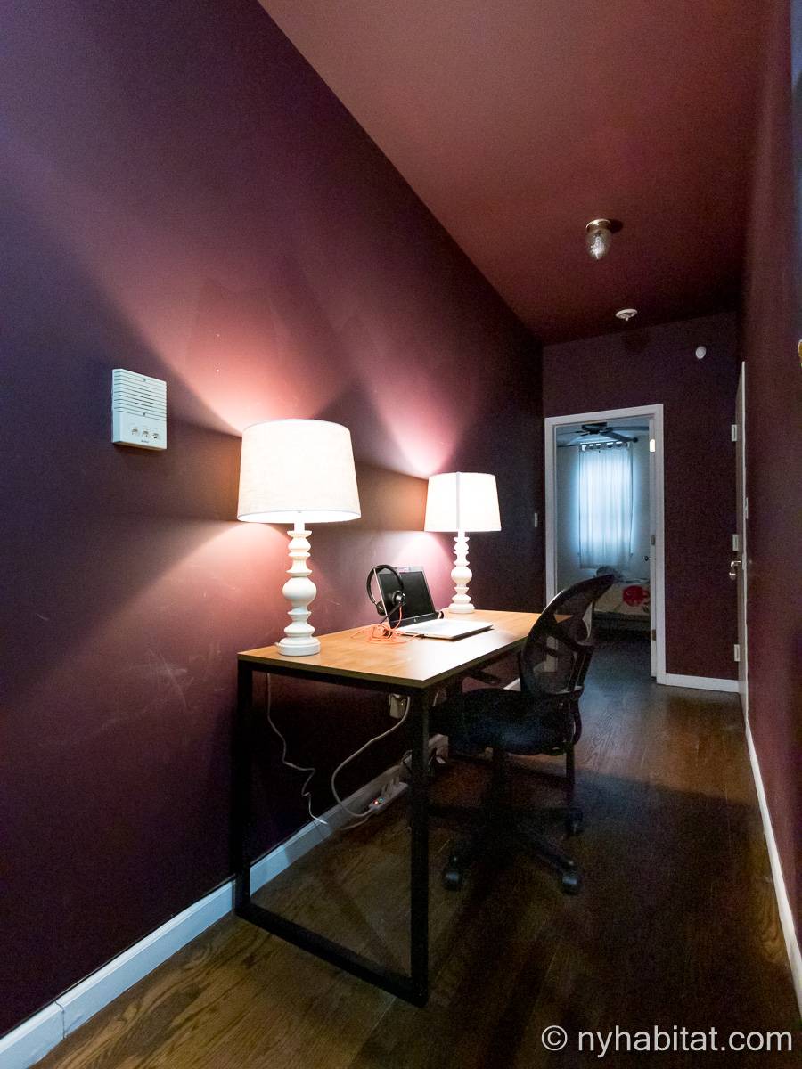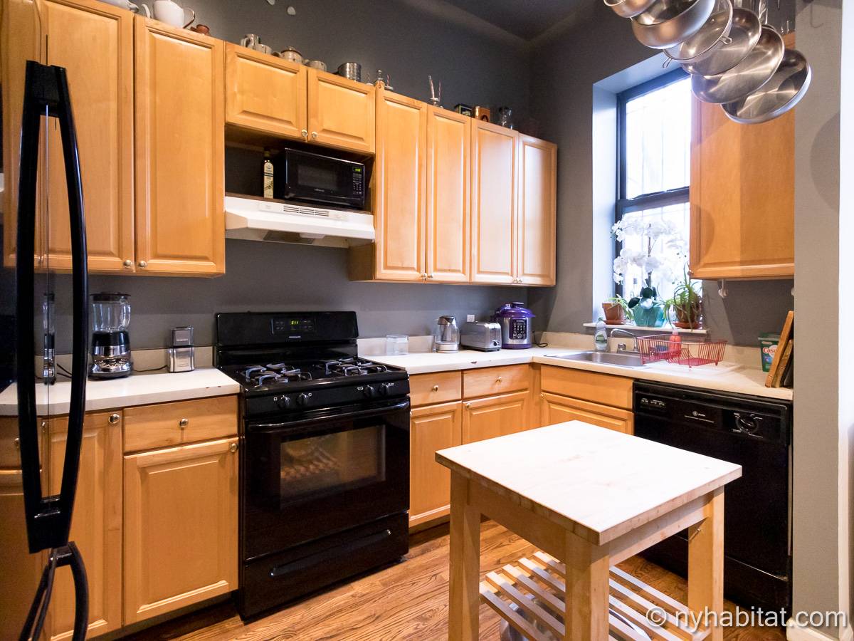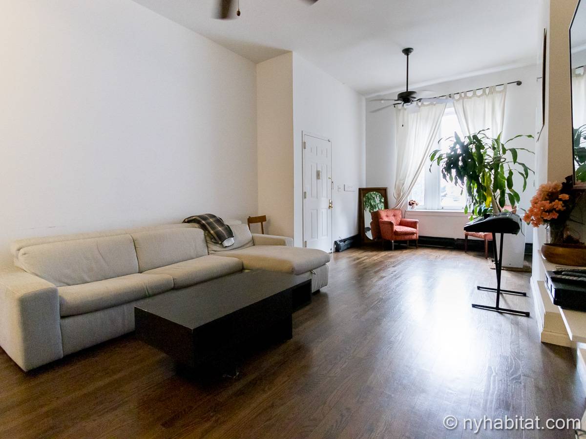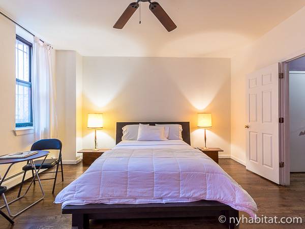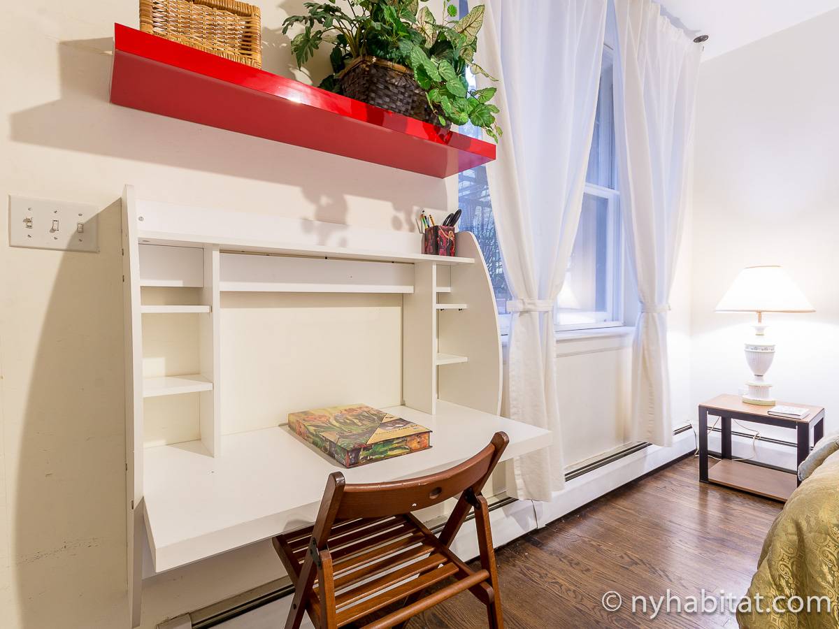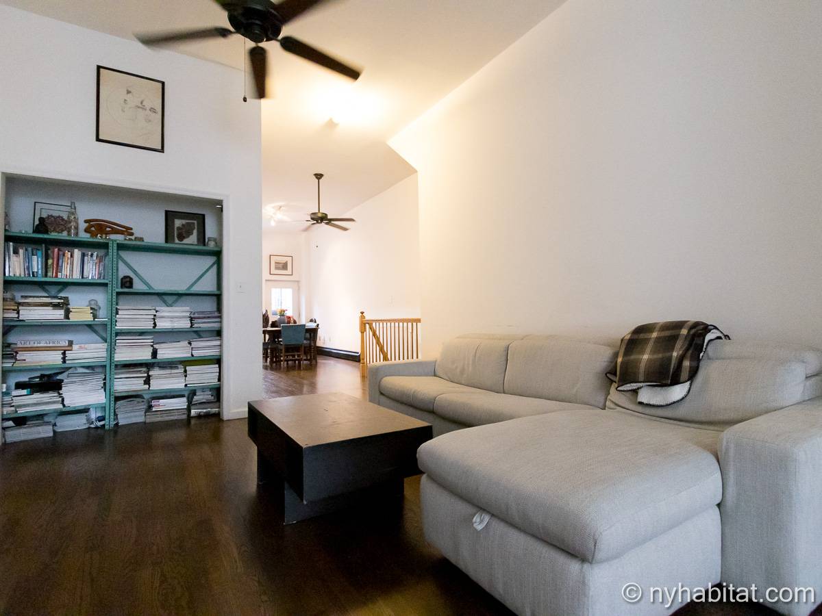 Este apartamento amueblado de 2 dormitorios y 2.5 baños está en los pisos 1 y 2 (equivalente a la planta baja y al piso 1 en Europa) de un edificio de piedra rojiza de 5 pisos en Manhattan, ciudad de Nueva York. El edificio cuenta con un sistema de seguridad, instalaciones de lavandería y un jardín. Este se encuentra en 118th Street y Seventh Avenue, en el barrio de Harlem.