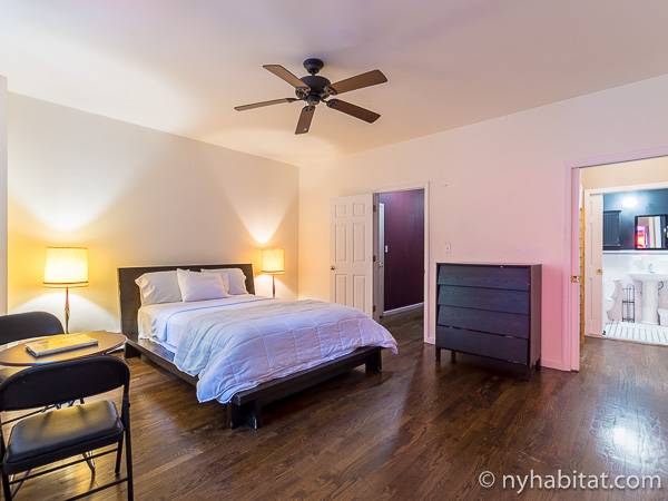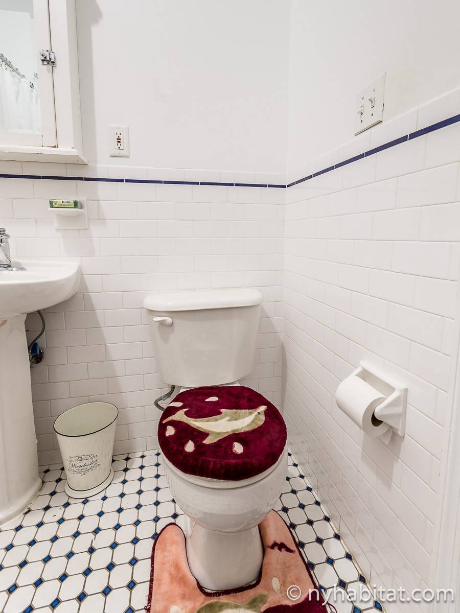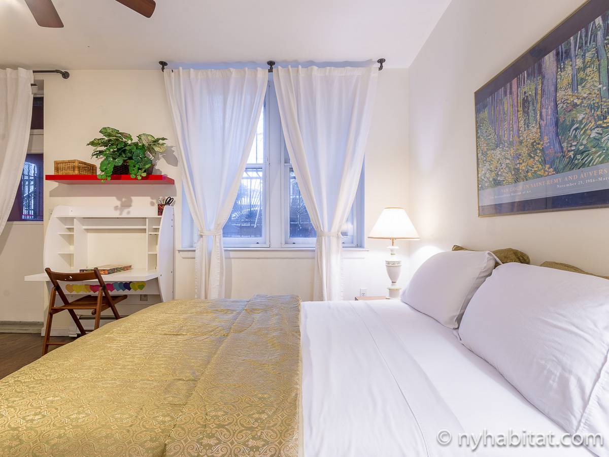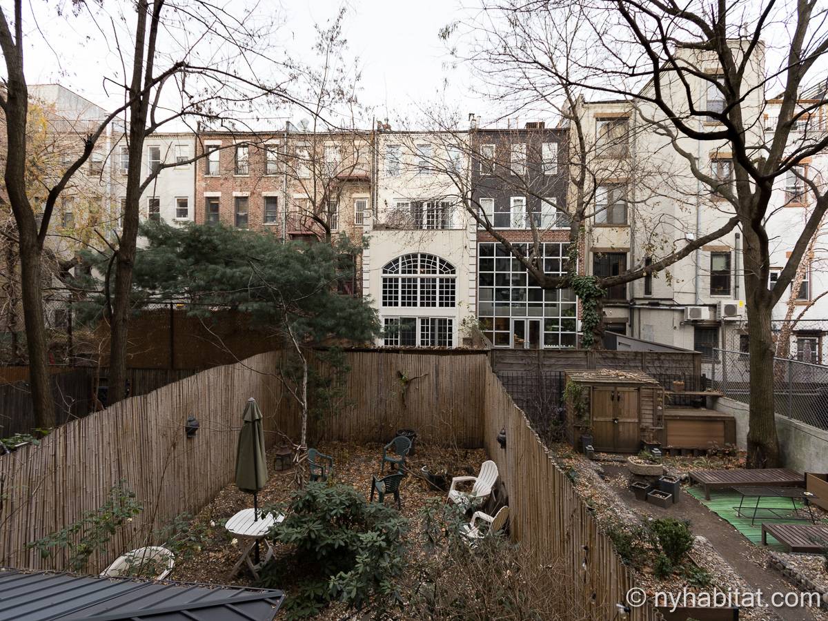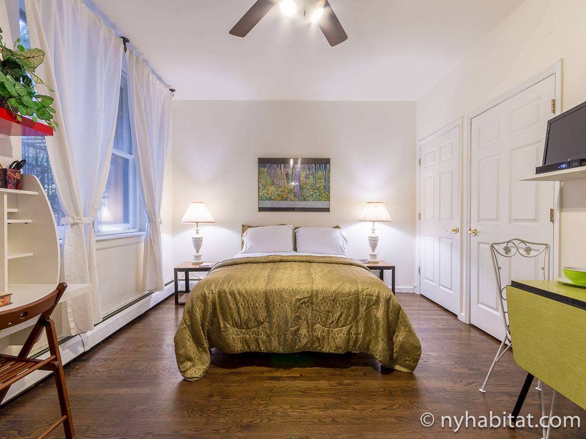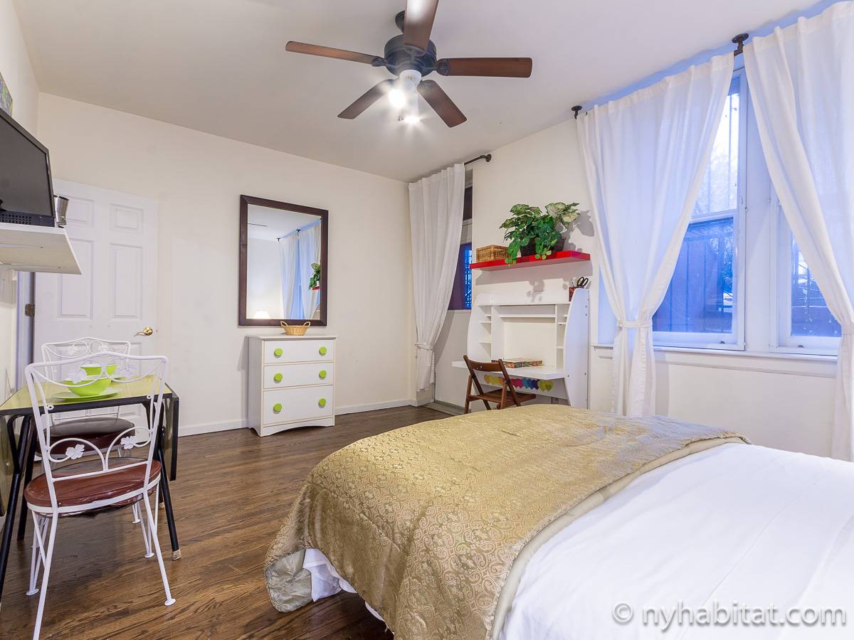 Este apartamento amueblado de 2 dormitorios y 2.5 baños está en los pisos 1 y 2 (equivalente a la planta baja y al piso 1 en Europa) de un edificio de piedra rojiza de 5 pisos en Manhattan, ciudad de Nueva York. El edificio cuenta con un sistema de seguridad, instalaciones de lavandería y un jardín. Este se encuentra en 118th Street y Seventh Avenue, en el barrio de Harlem.
