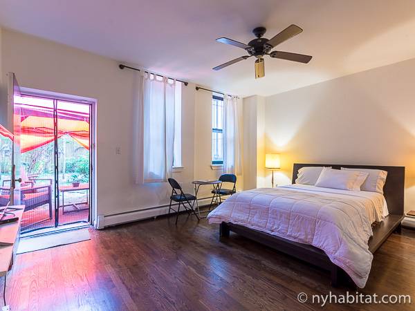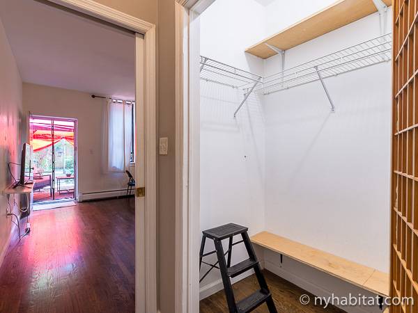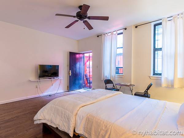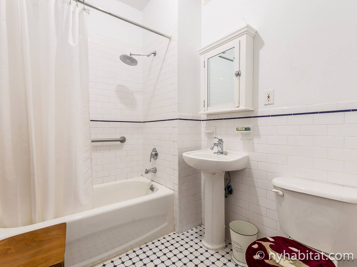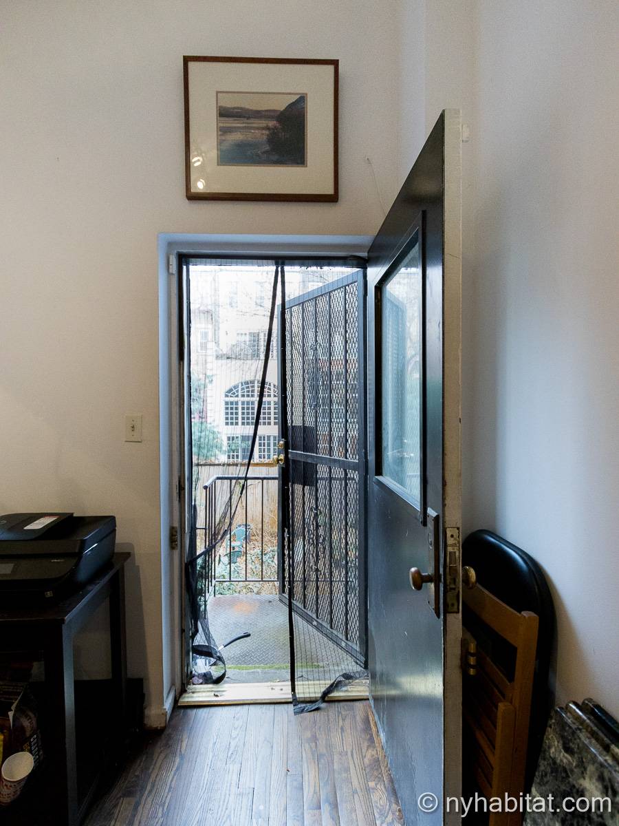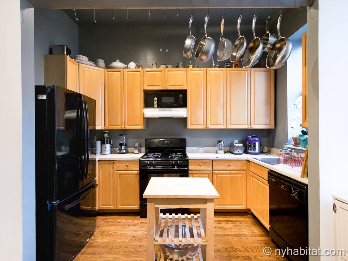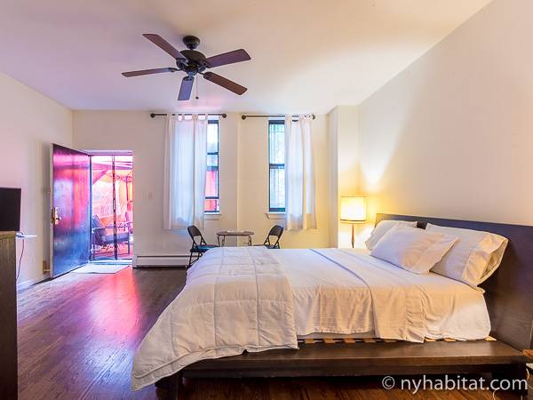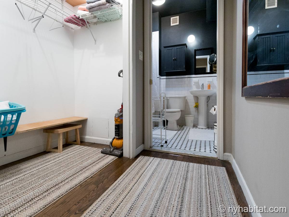 Este apartamento amueblado de 2 dormitorios y 2.5 baños está en los pisos 1 y 2 (equivalente a la planta baja y al piso 1 en Europa) de un edificio de piedra rojiza de 5 pisos en Manhattan, ciudad de Nueva York. El edificio cuenta con un sistema de seguridad, instalaciones de lavandería y un jardín. Este se encuentra en 118th Street y Seventh Avenue, en el barrio de Harlem.