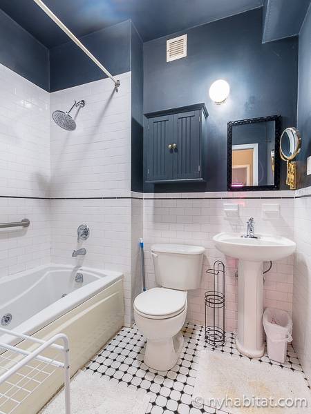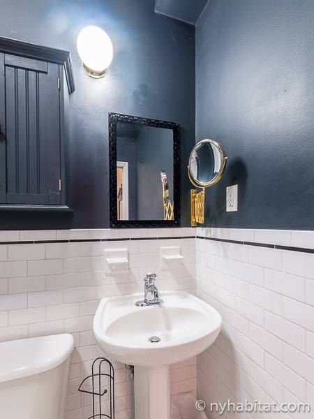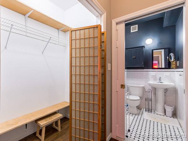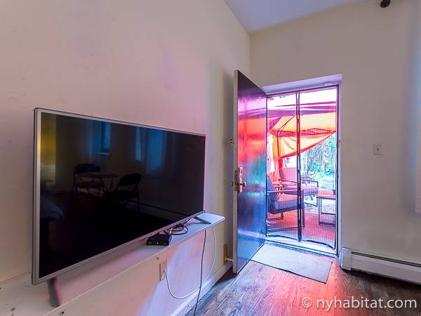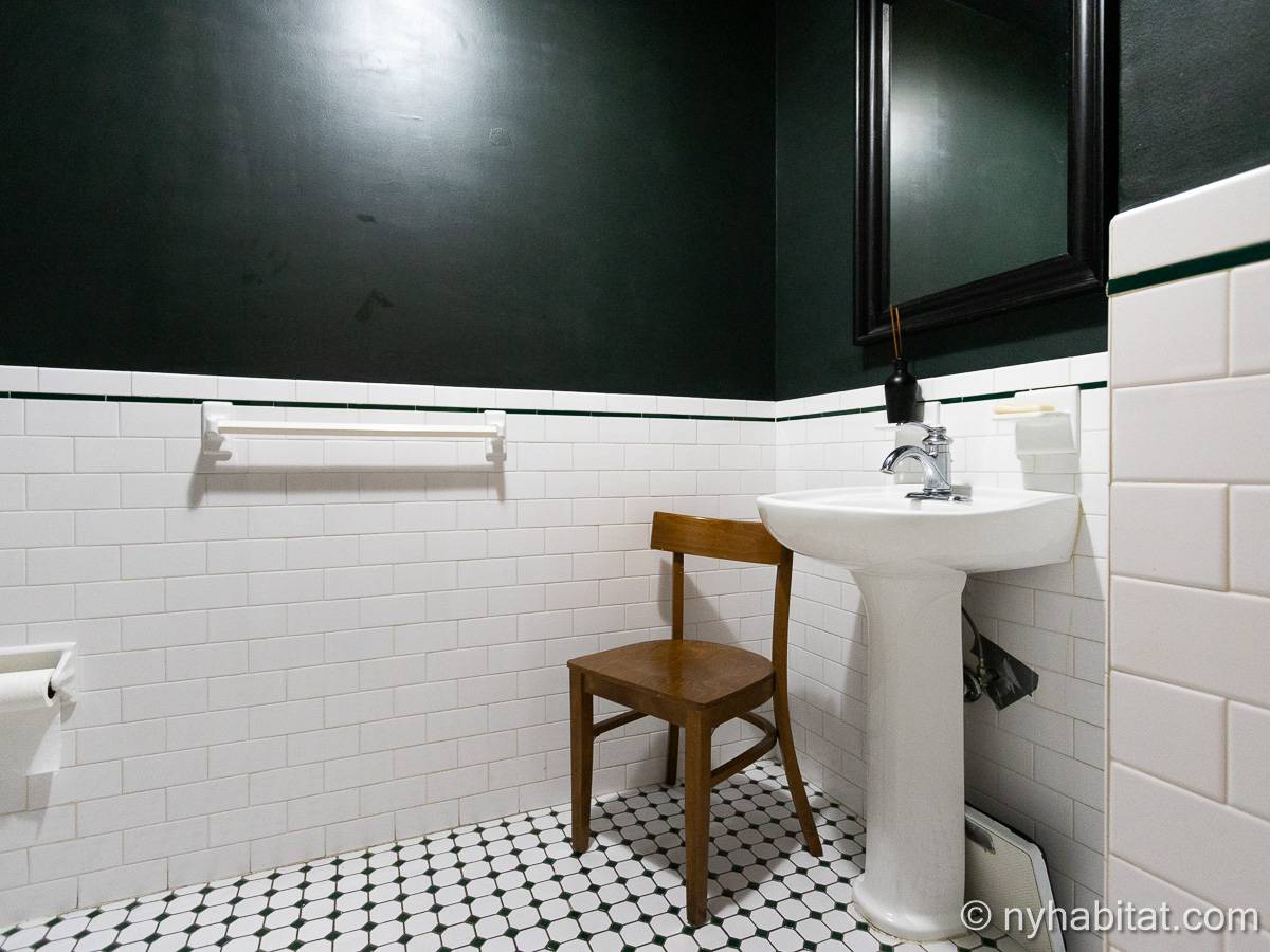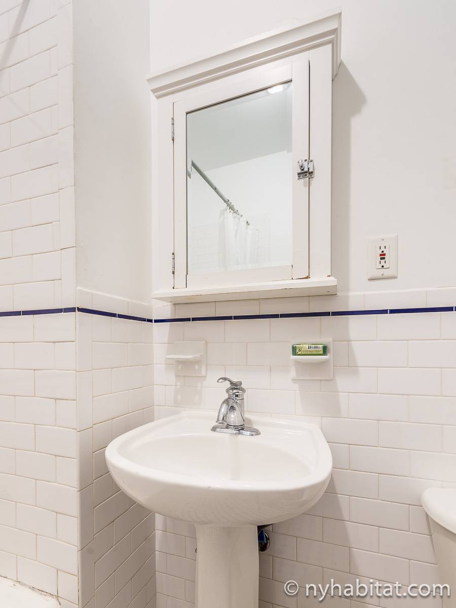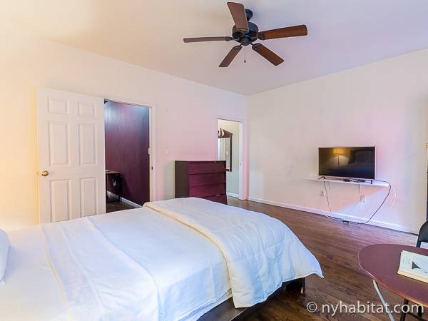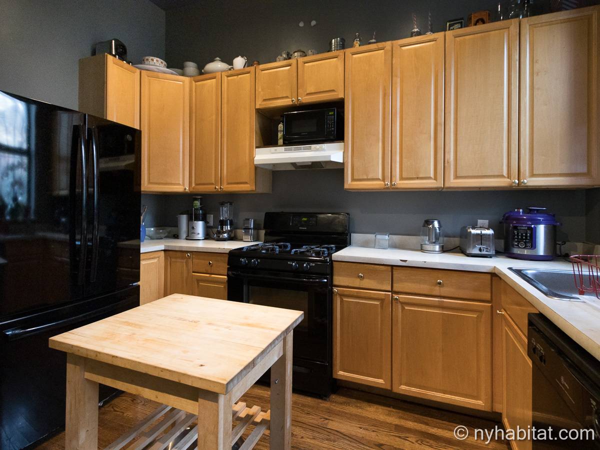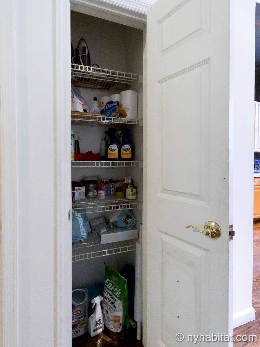 Este apartamento amueblado de 2 dormitorios y 2.5 baños está en los pisos 1 y 2 (equivalente a la planta baja y al piso 1 en Europa) de un edificio de piedra rojiza de 5 pisos en Manhattan, ciudad de Nueva York. El edificio cuenta con un sistema de seguridad, instalaciones de lavandería y un jardín. Este se encuentra en 118th Street y Seventh Avenue, en el barrio de Harlem.