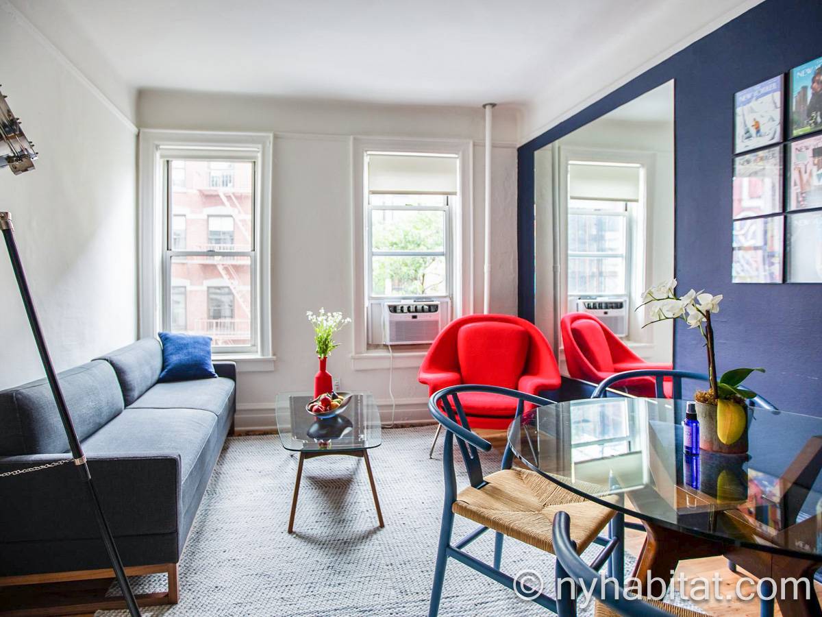 Este apartamento amueblado de un dormitorio y un baño, ubicado en Manhattan, está en la 2ª planta (1ª, según convención europea) de un edificio de 6 plantas en la ciudad de Nueva York. El apartamento se encuentra en Mott Street y Prince Street, en el barrio del Soho.
