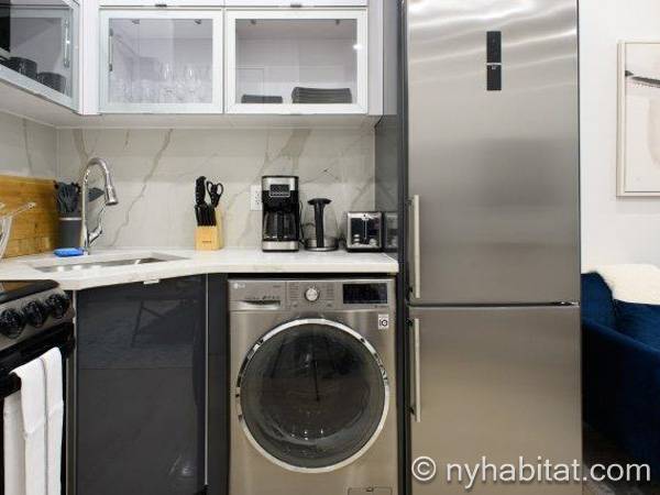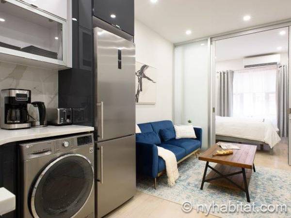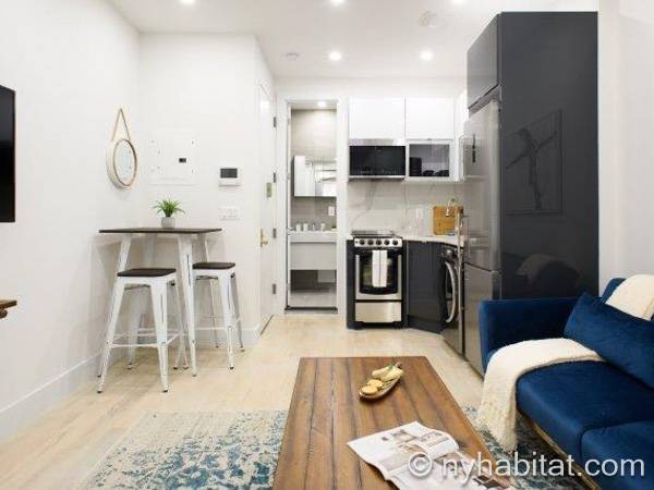 Este apartamento amueblado de un dormitorio y un baño se encuentra en Upper East Side, Manhattan, cerca de la esquina arbolada de 2nd Avenue y 78th Street. El alojamiento se halla en el tercer piso (segundo piso en Europa) de un edificio sin ascensor. Este alquiler amueblado de 45 m2 es de estilo contemporáneo y tiene una lavadora.