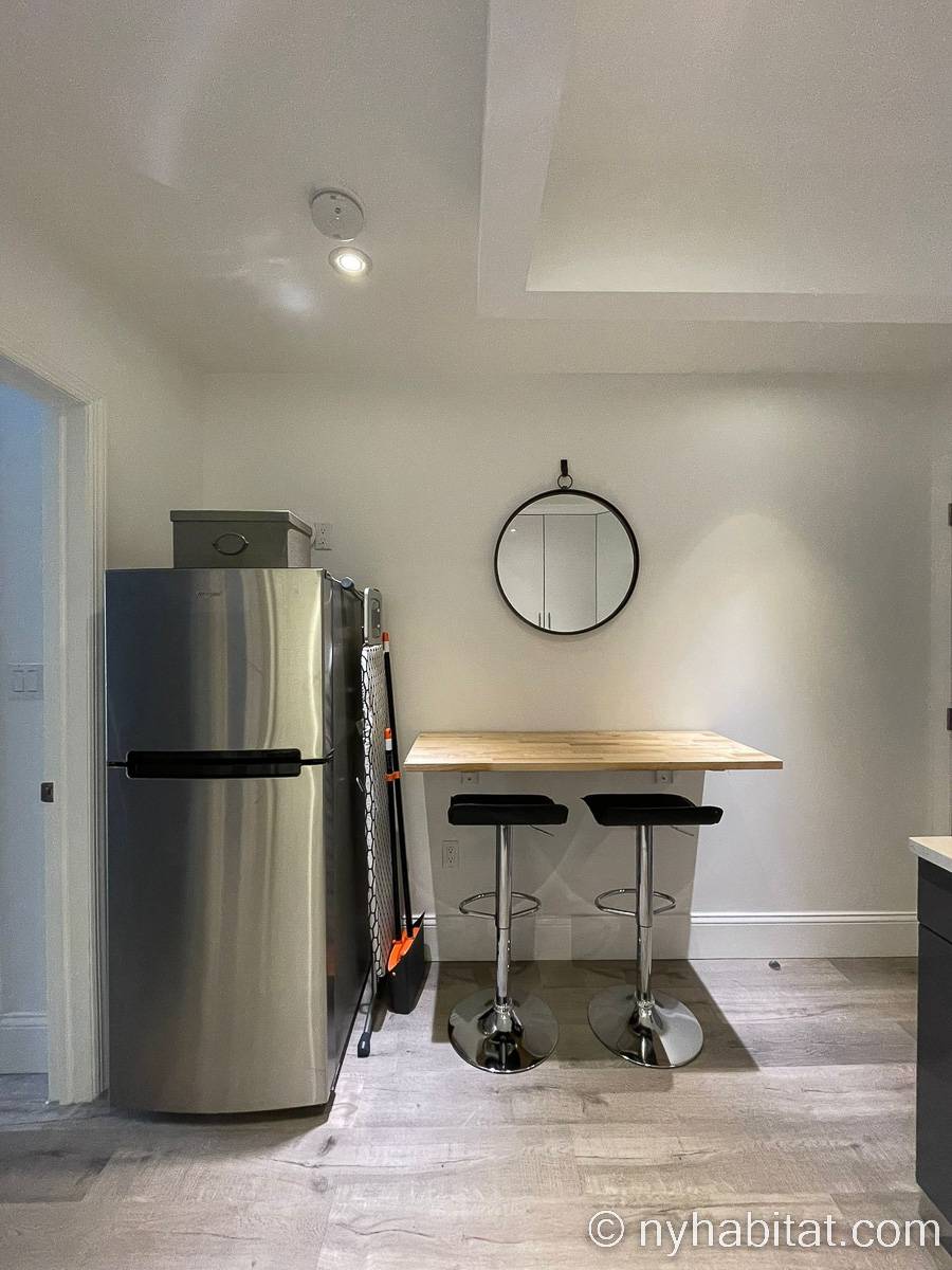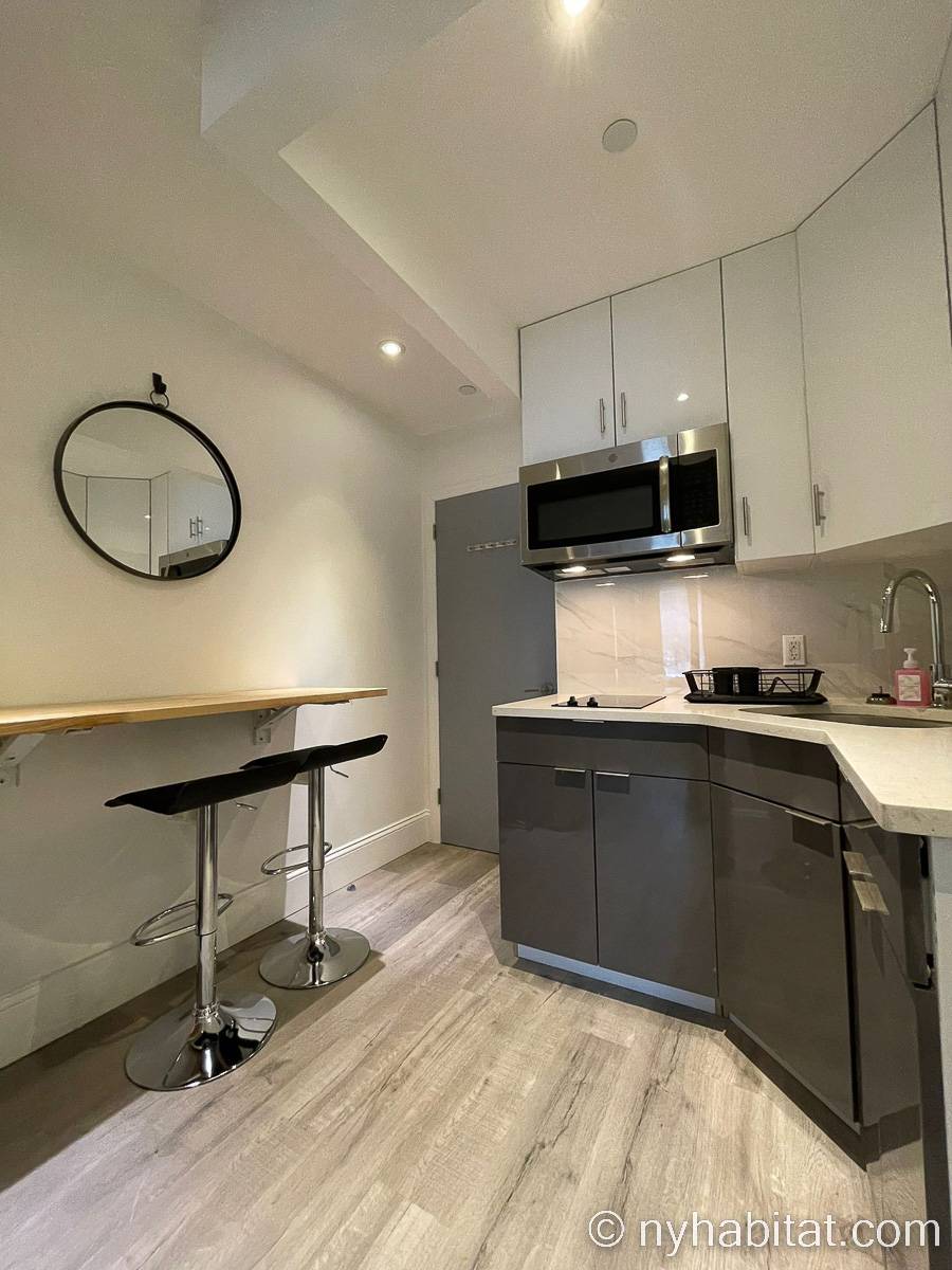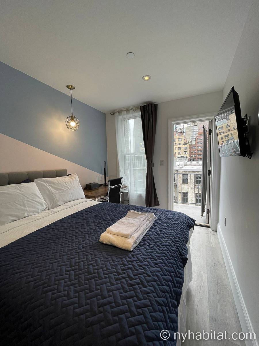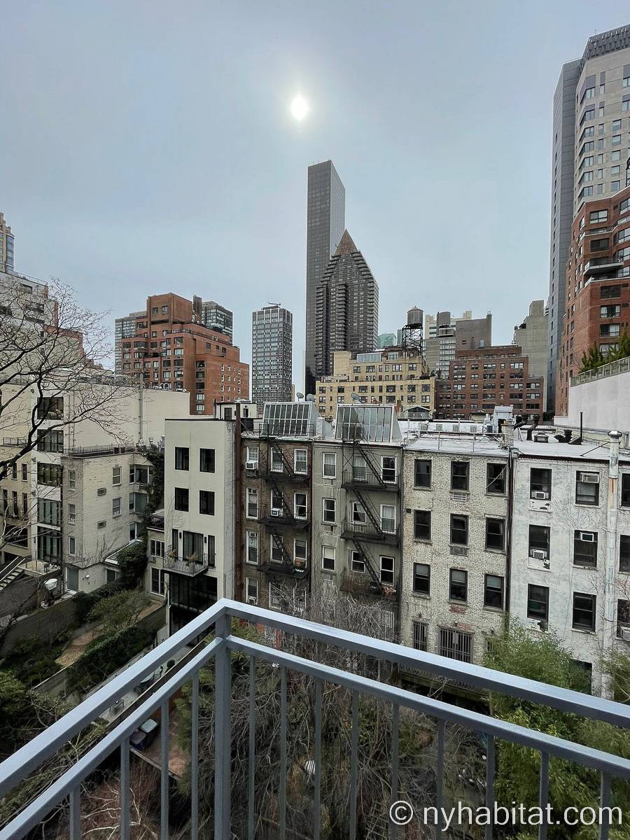 Este apartamento amueblado de dos dormitorios y un baño está en Midtwon East, Manhattan, Nueva York. Se ubica en la sexta planta (quinta planta en Europa) de un edificio sin ascensor que está entre East 52nd Street y 2nd Avenue. La superficie es de alrededor de 42 m2.