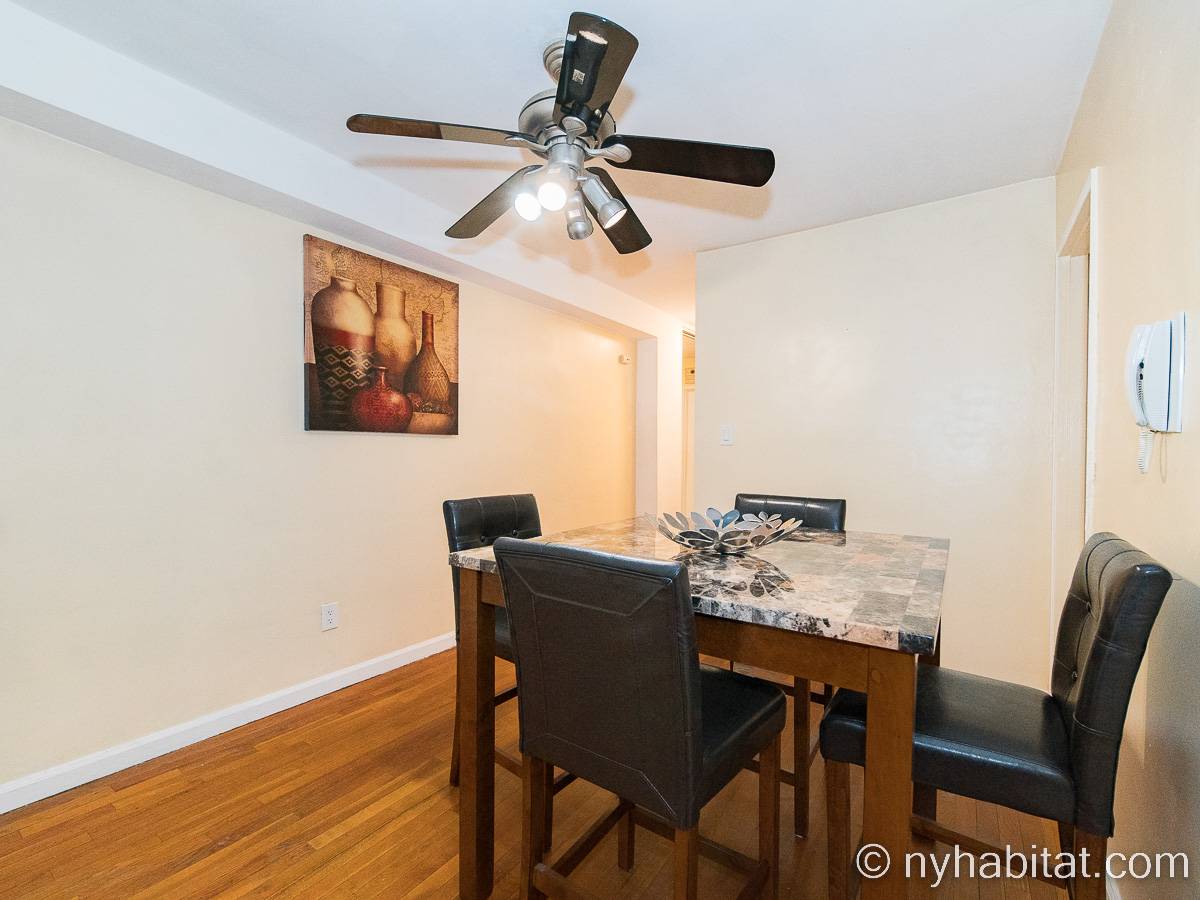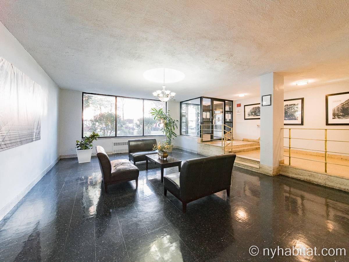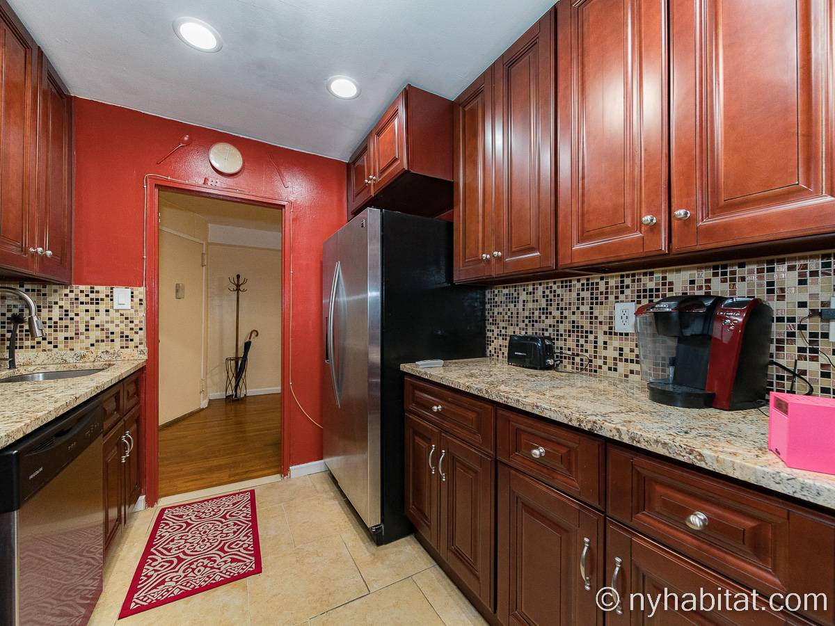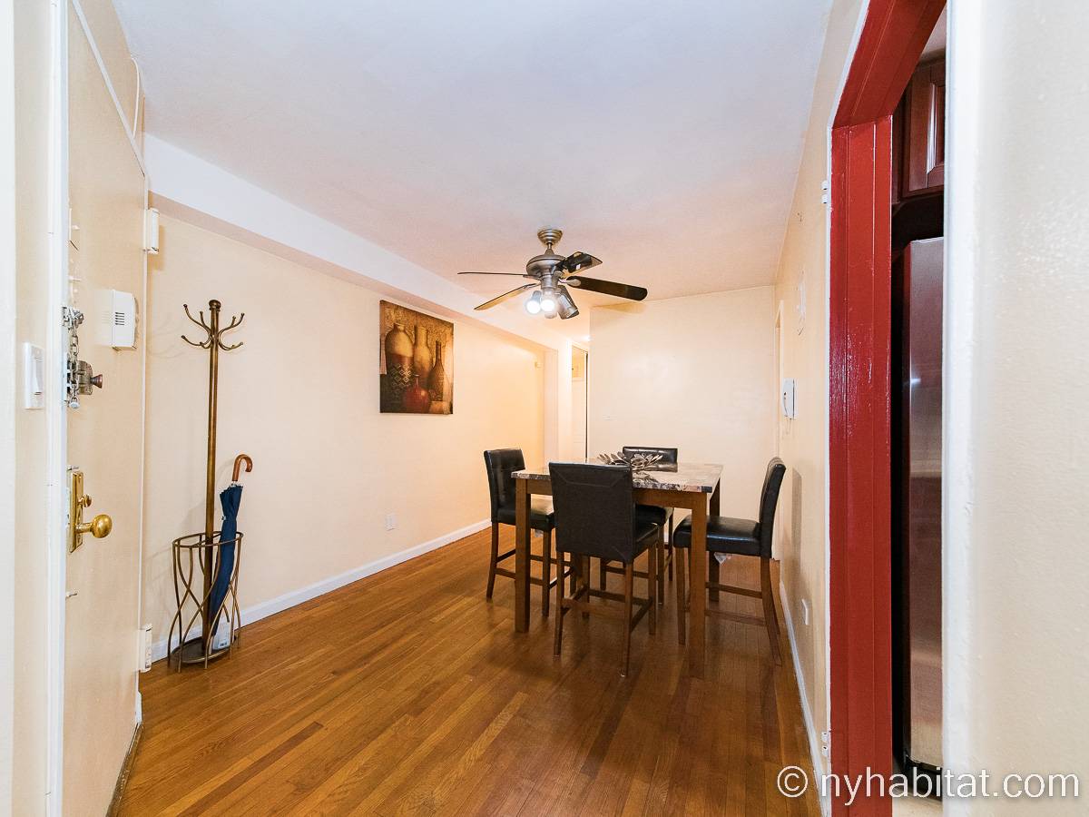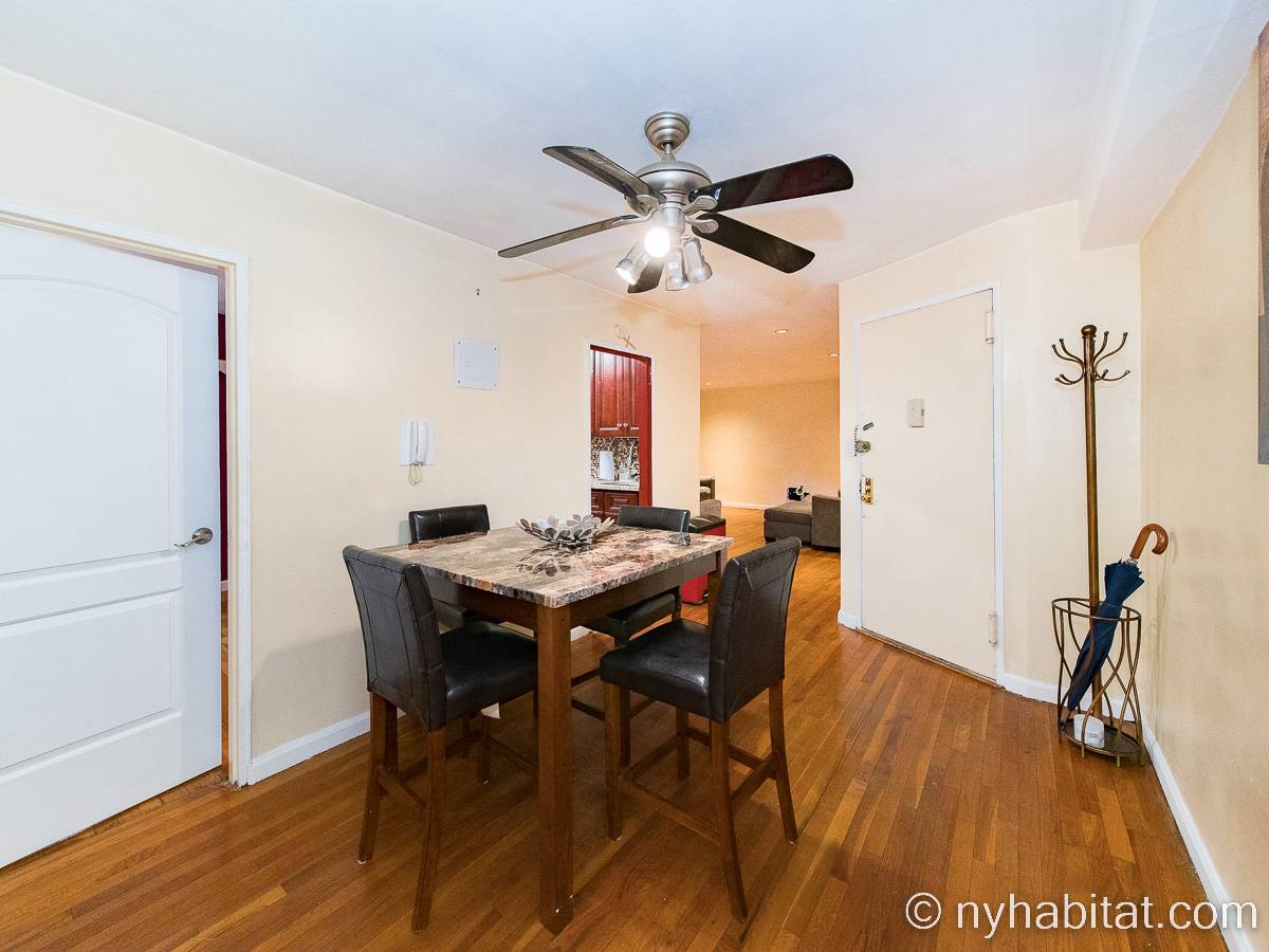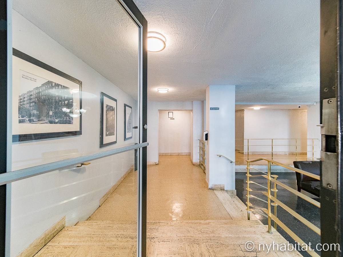 Este apartamento amueblado de dos dormitorios y un baño está ubicado en Prospect Lefferts Gardens cerca de Lenox Road y Nostrand Avenue en Brooklyn, Nueva York. Tiene una superficie total de 98 m2 y está en el cuarto piso (equivalente al tercer piso en Europa) de un edificio con ascensor.