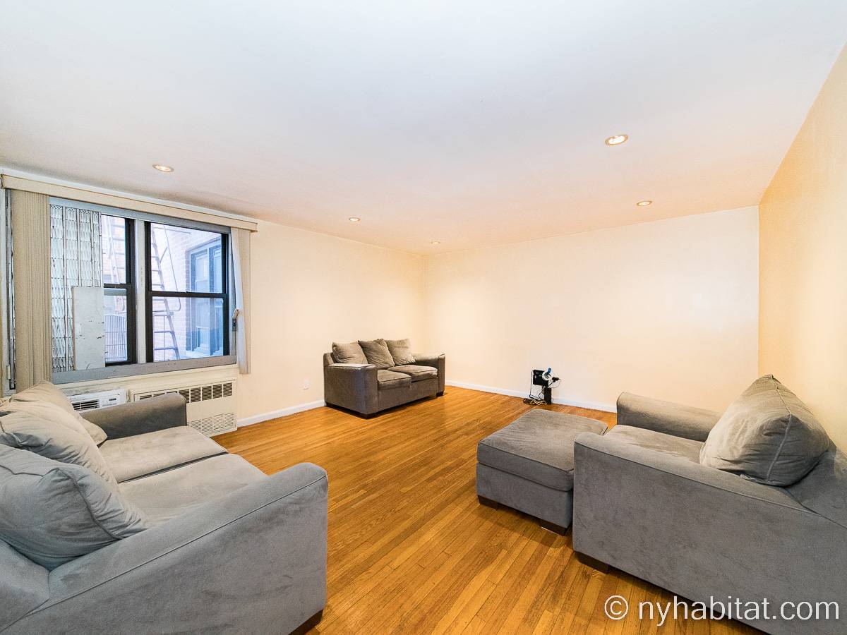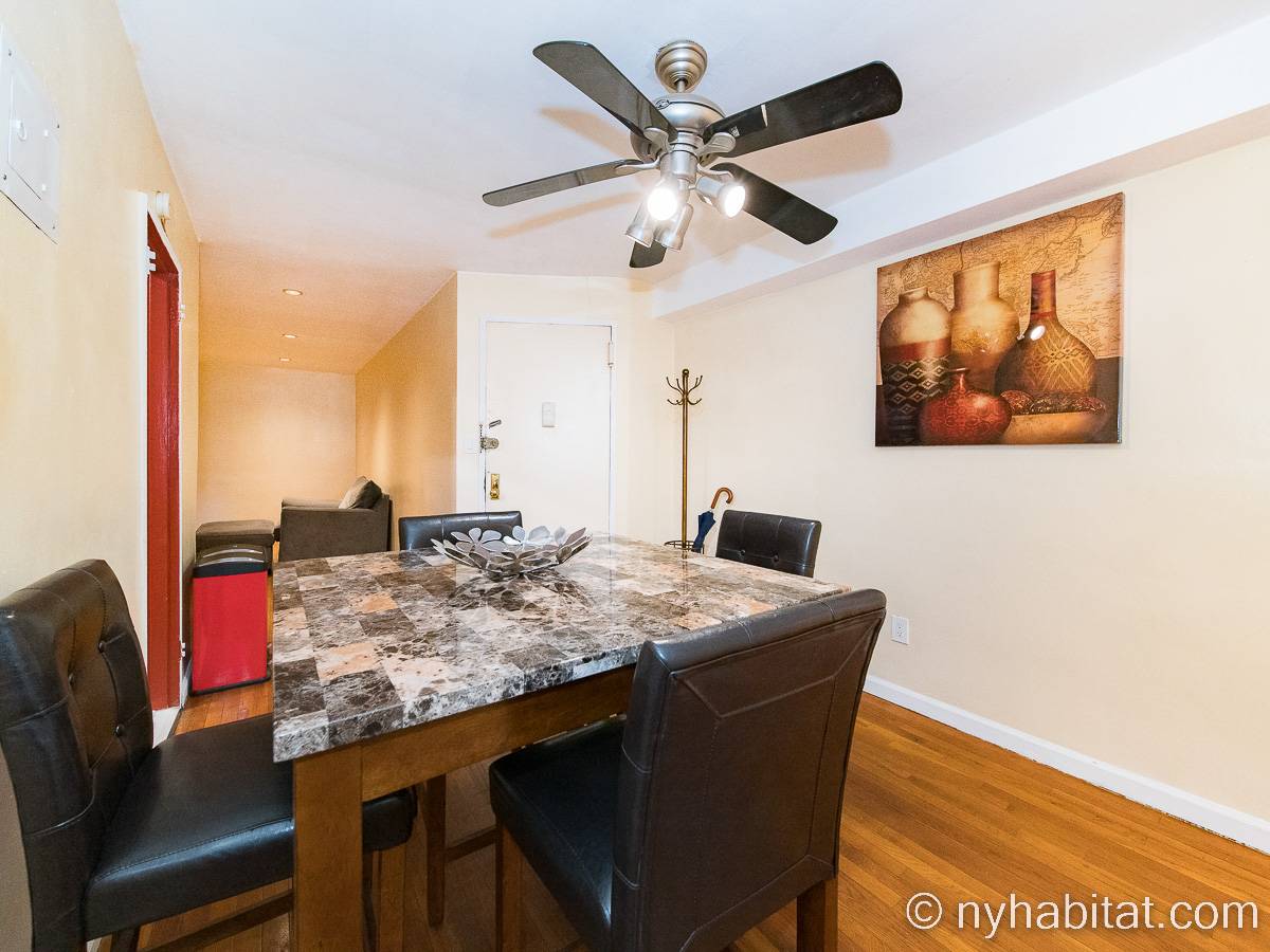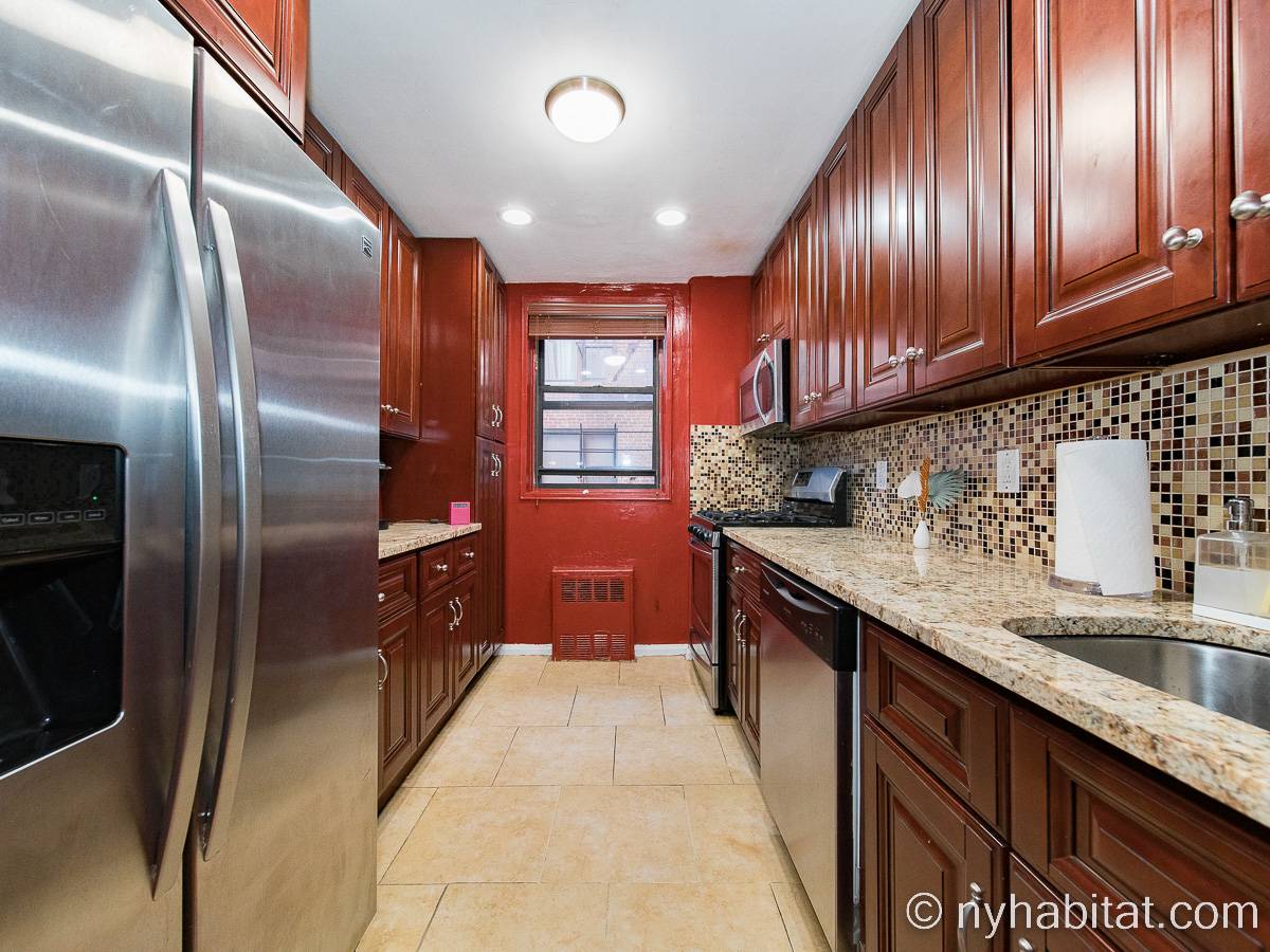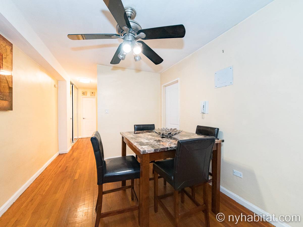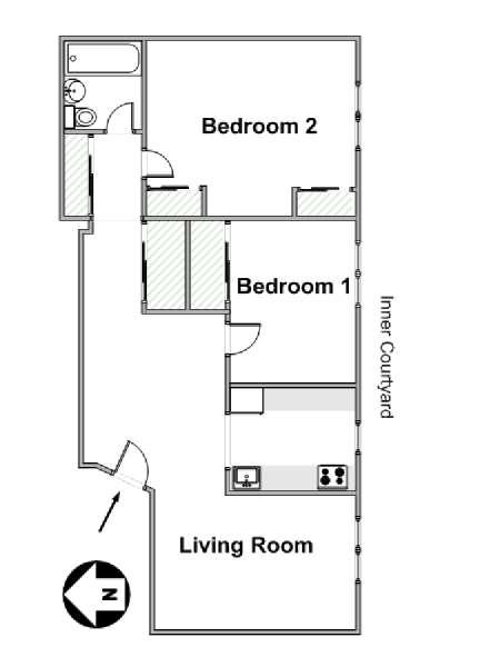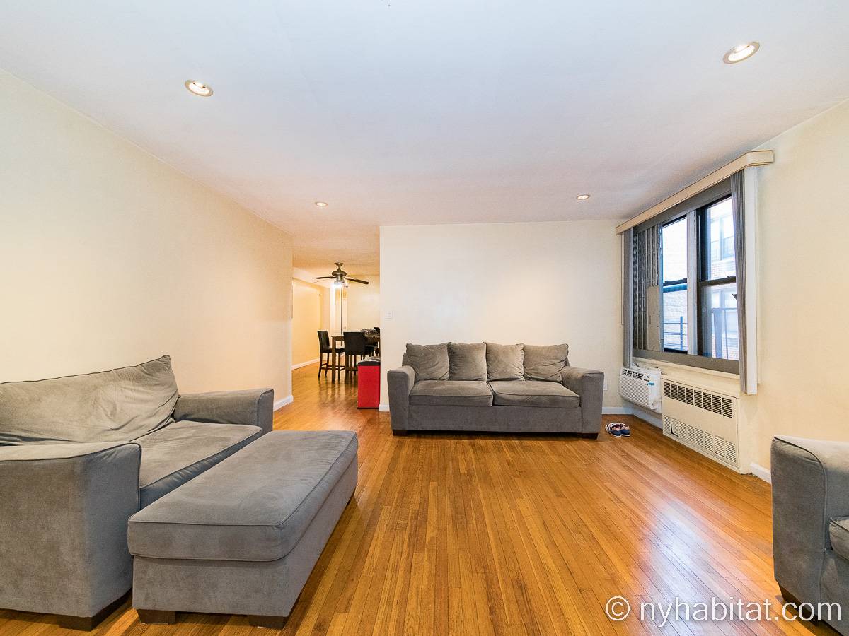 Este apartamento amueblado de dos dormitorios y un baño está ubicado en Prospect Lefferts Gardens cerca de Lenox Road y Nostrand Avenue en Brooklyn, Nueva York. Tiene una superficie total de 98 m2 y está en el cuarto piso (equivalente al tercer piso en Europa) de un edificio con ascensor.