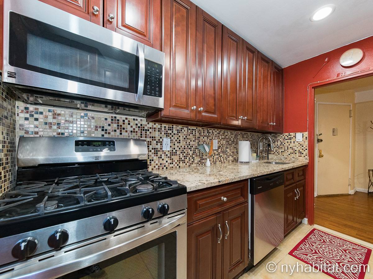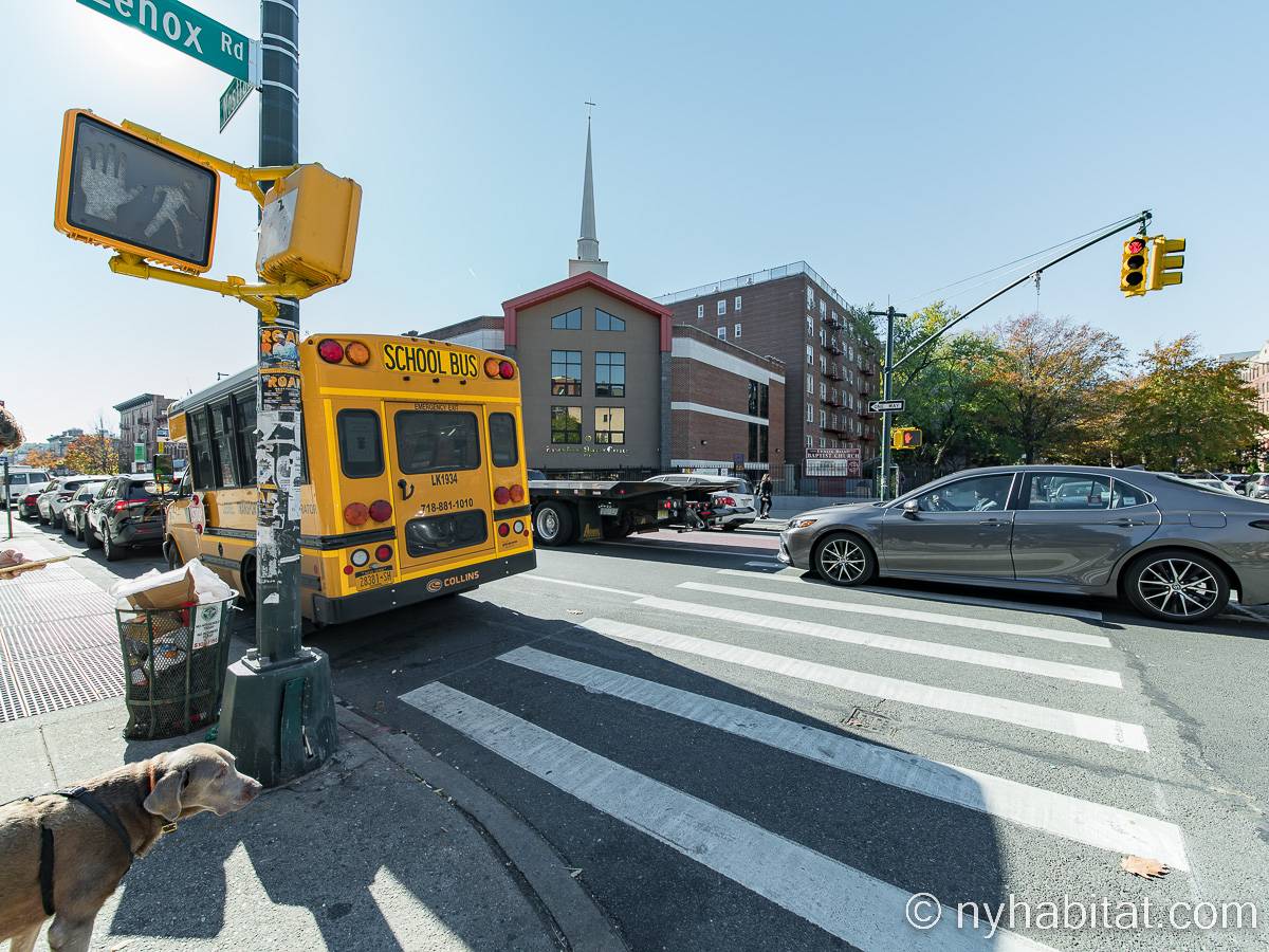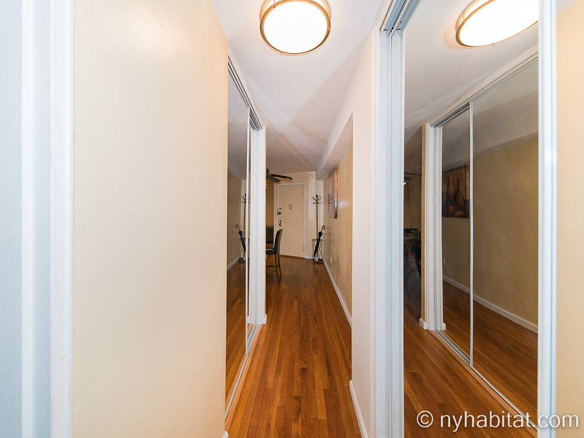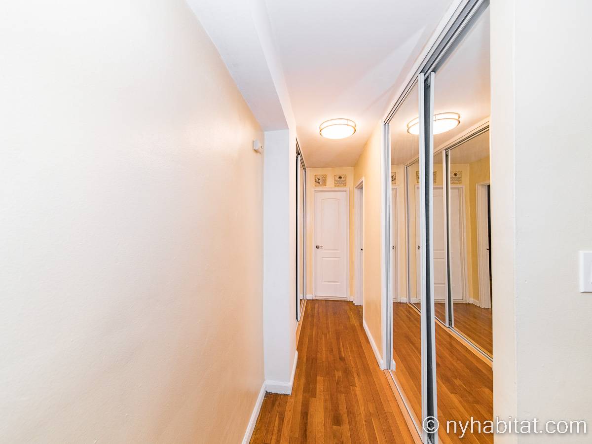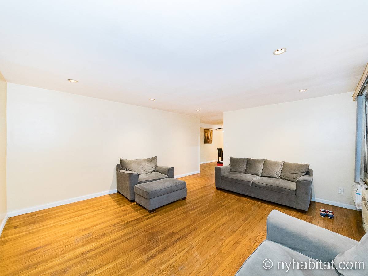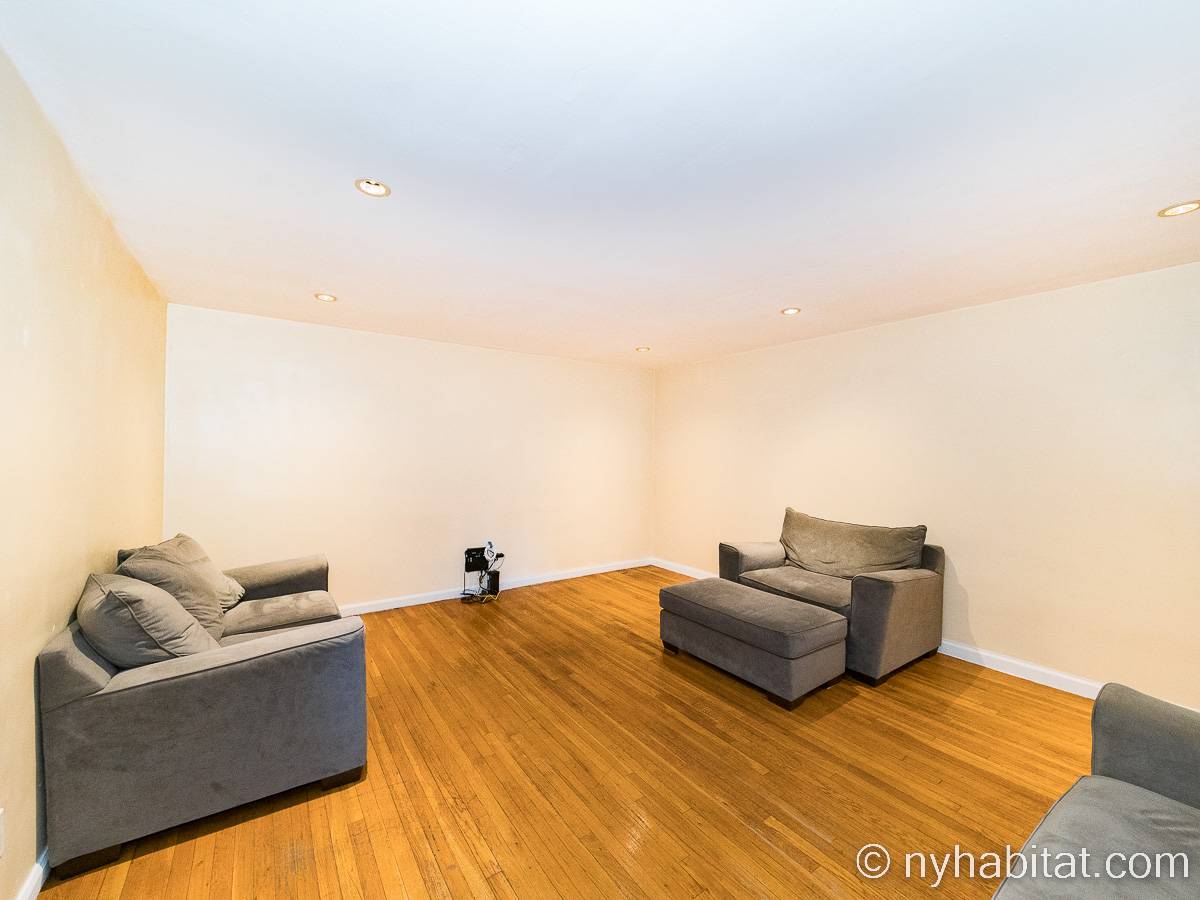 Este apartamento amueblado de dos dormitorios y un baño está ubicado en Prospect Lefferts Gardens cerca de Lenox Road y Nostrand Avenue en Brooklyn, Nueva York. Tiene una superficie total de 98 m2 y está en el cuarto piso (equivalente al tercer piso en Europa) de un edificio con ascensor.